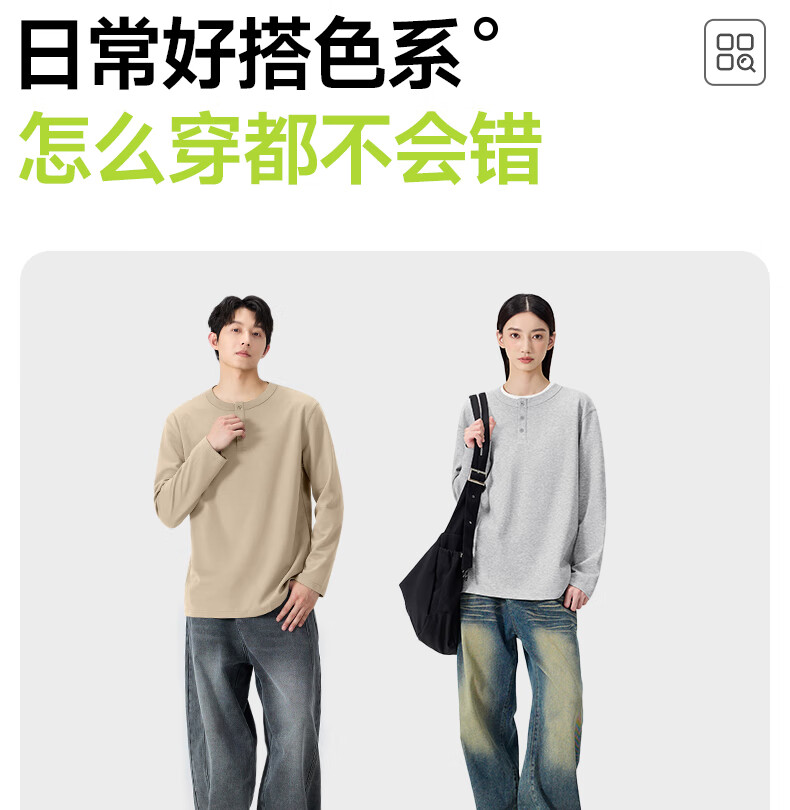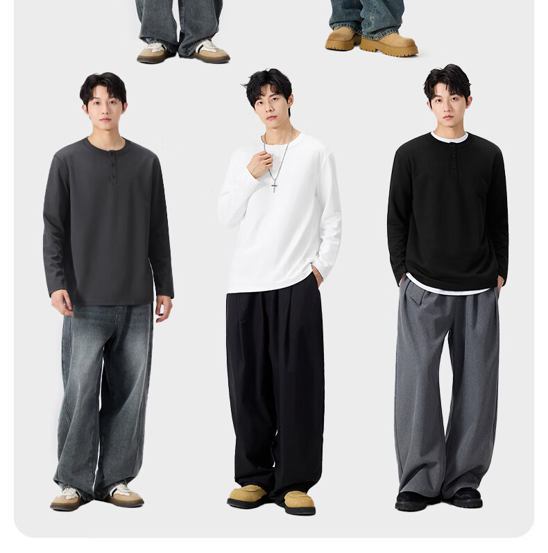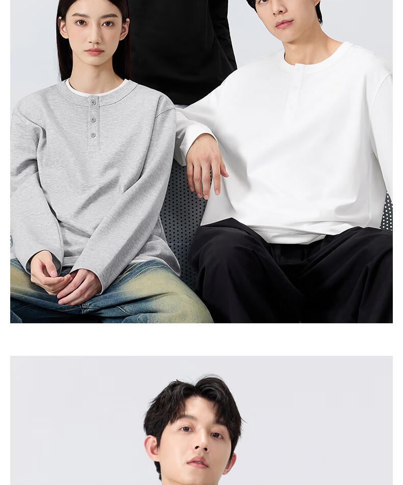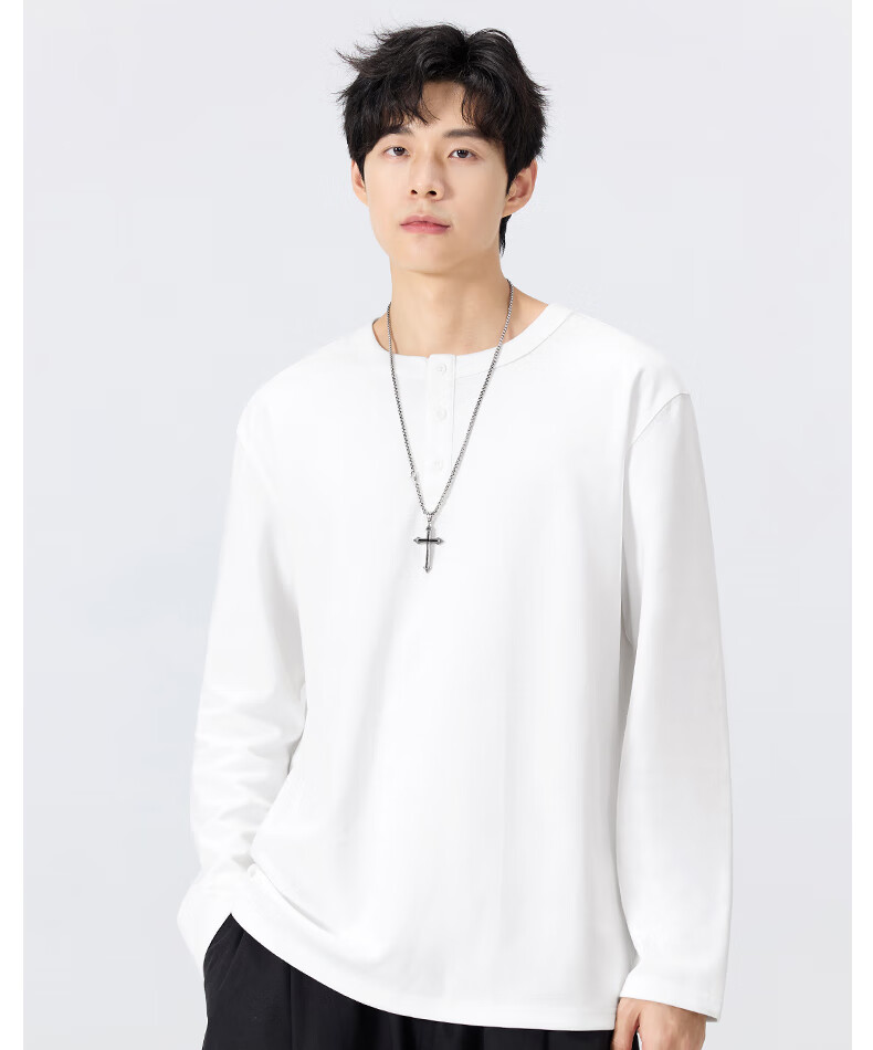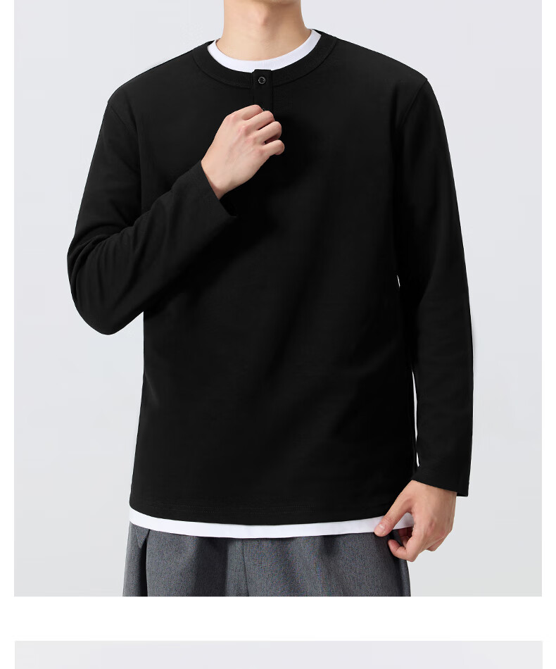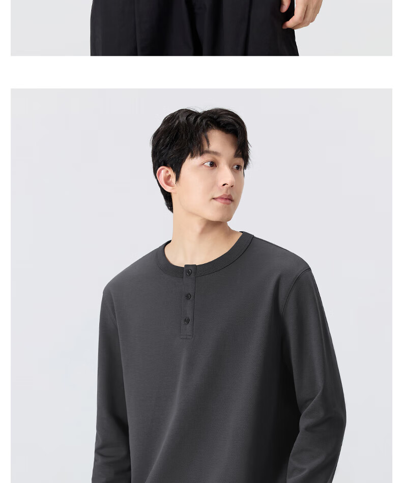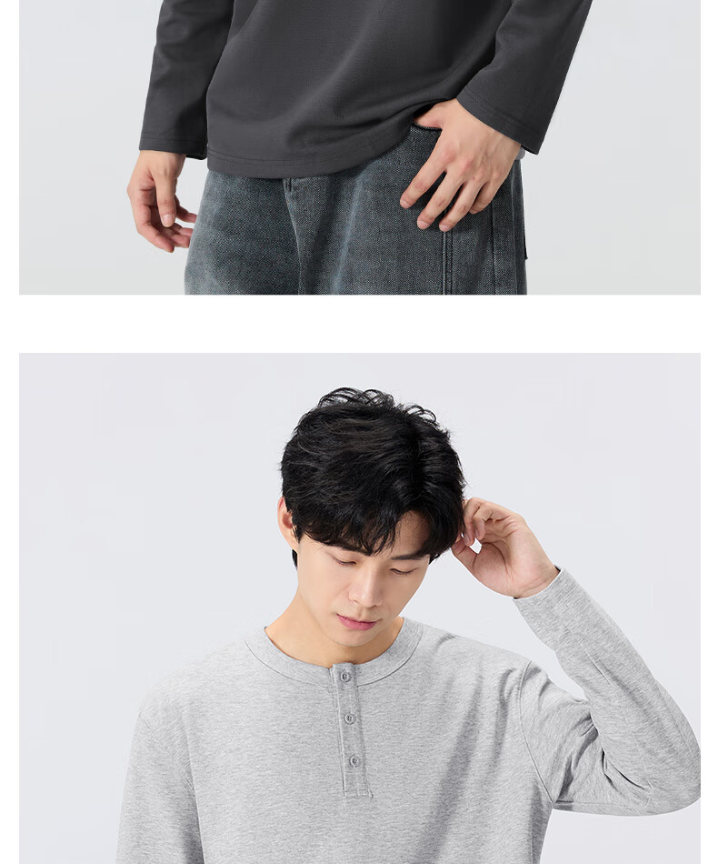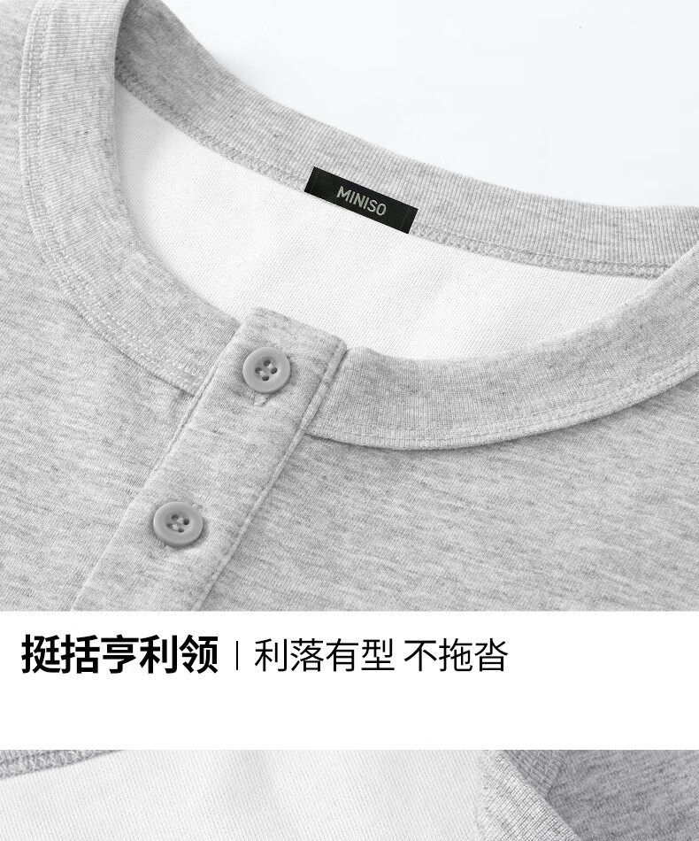 MINISO long-sleeved T-shirt men's autumn Korean ins inner top college students retro Henry collar bottoming shirt dark gray 3XL