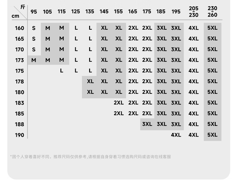 China (cm) 160-165/84-86 165-170 / 88-90 167-172 / 92-96 168-173 / 98-102 170-176 / 106-110