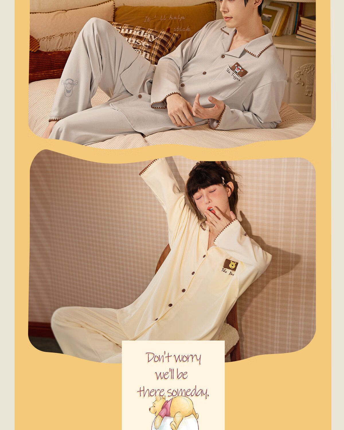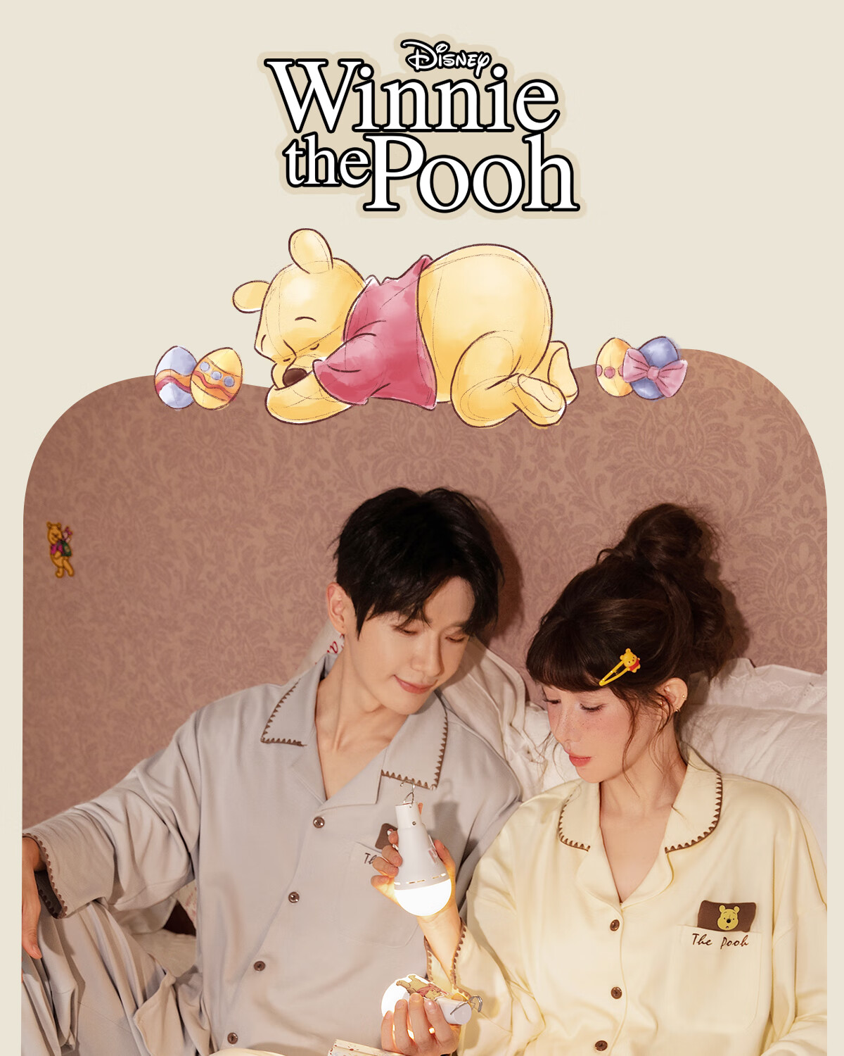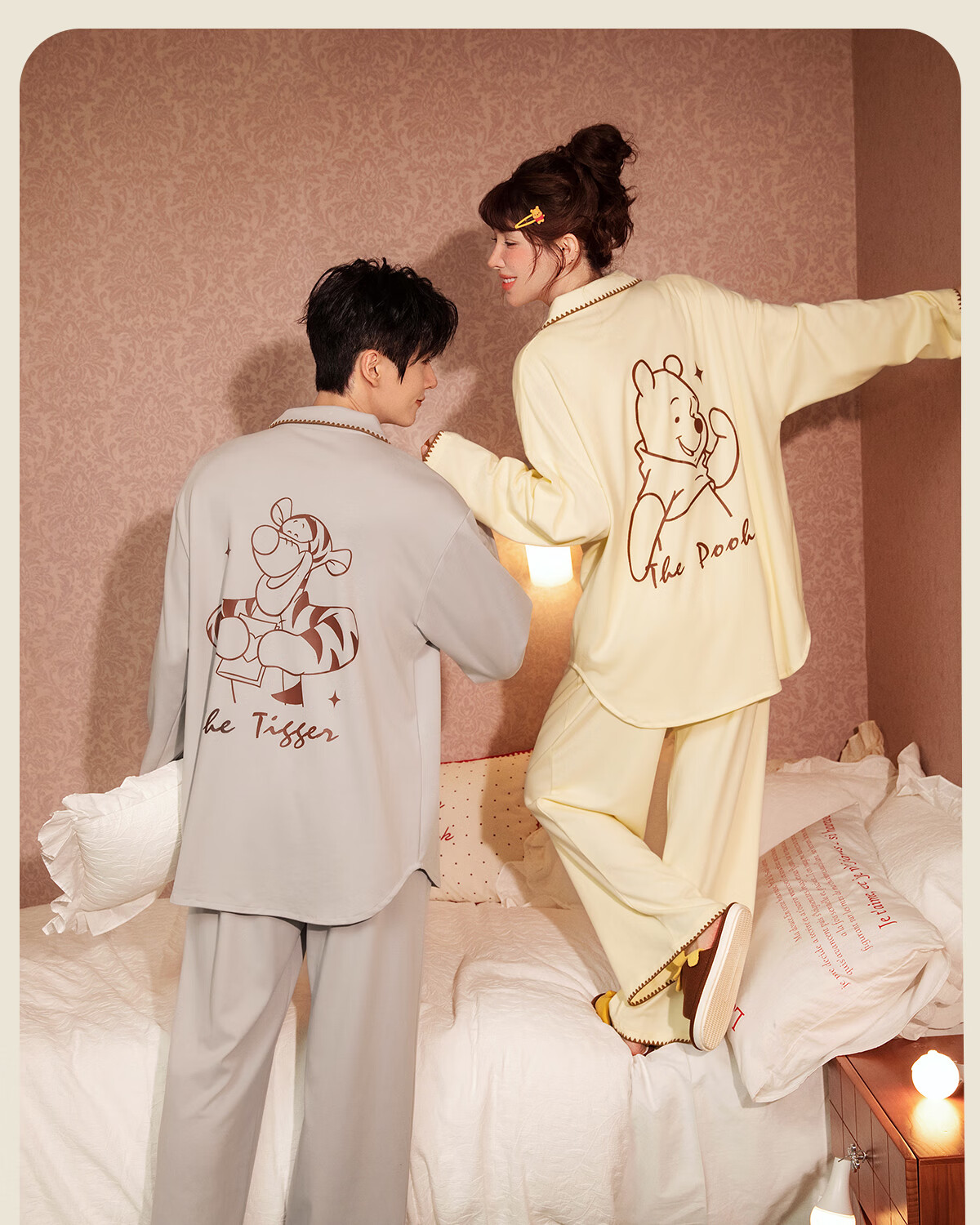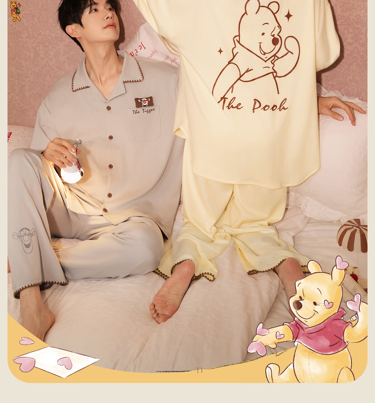 Gong Die Light and Soft Disney Puff Bear Couple Pajamas Women's Spring and Autumn Long Sleeve Men's Homewear Set