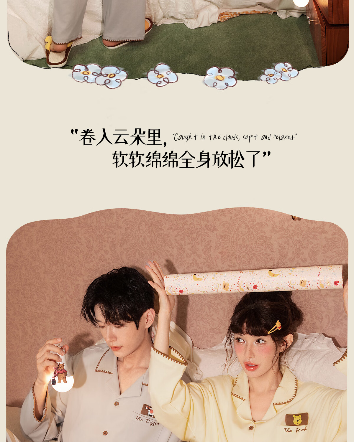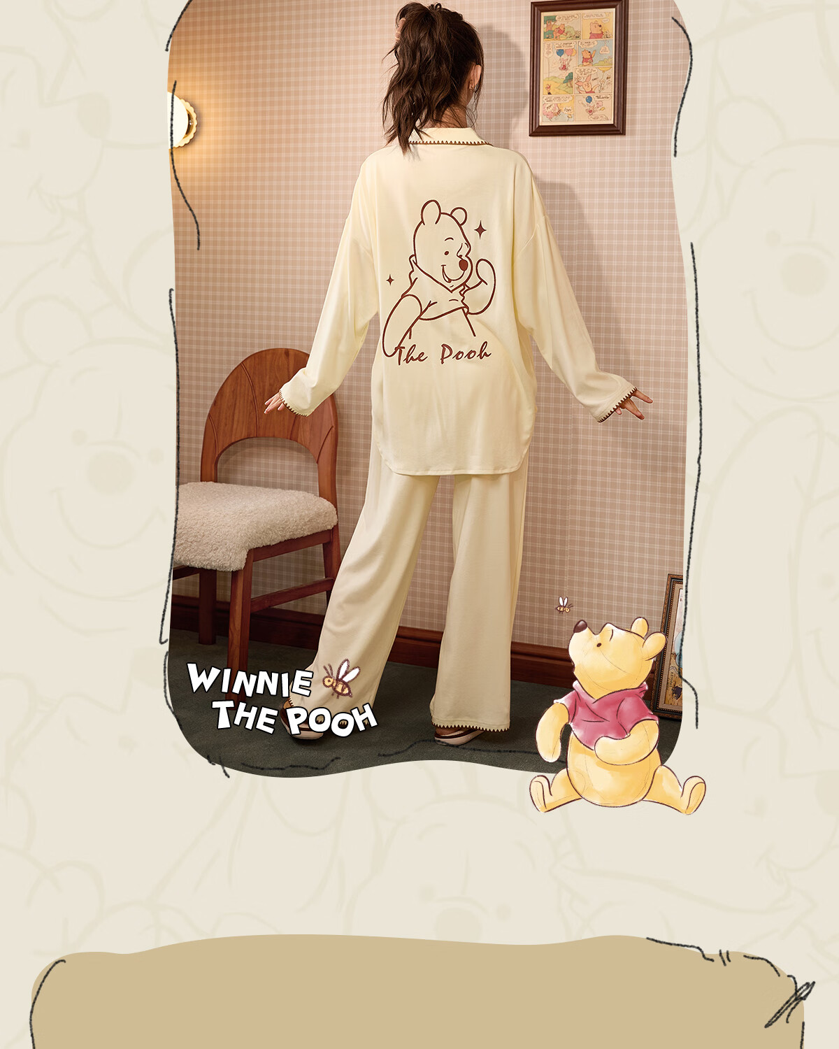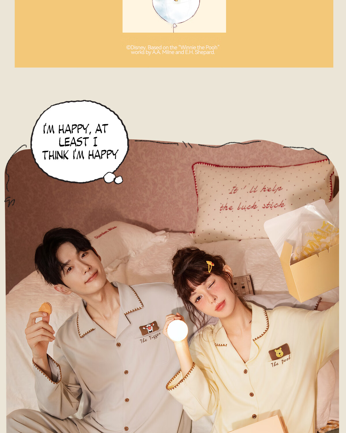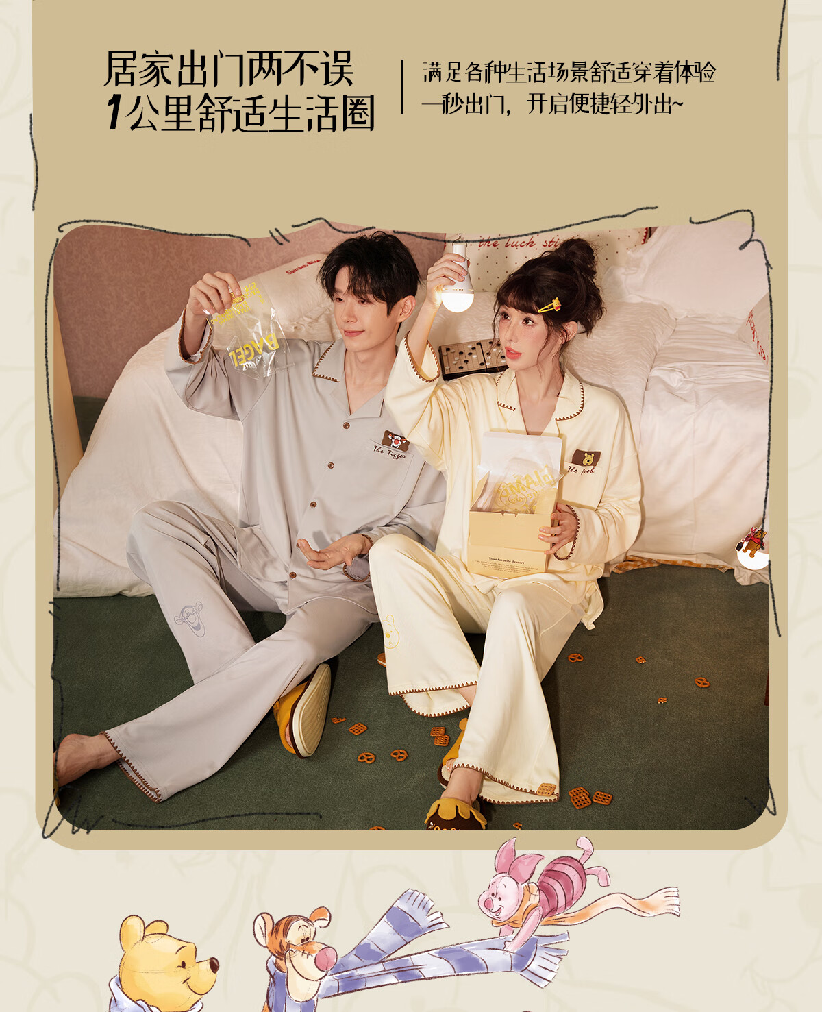 Gong Die Light and Soft Disney Puff Bear Couple Pajamas Women's Spring and Autumn Long Sleeve Men's Homewear Set