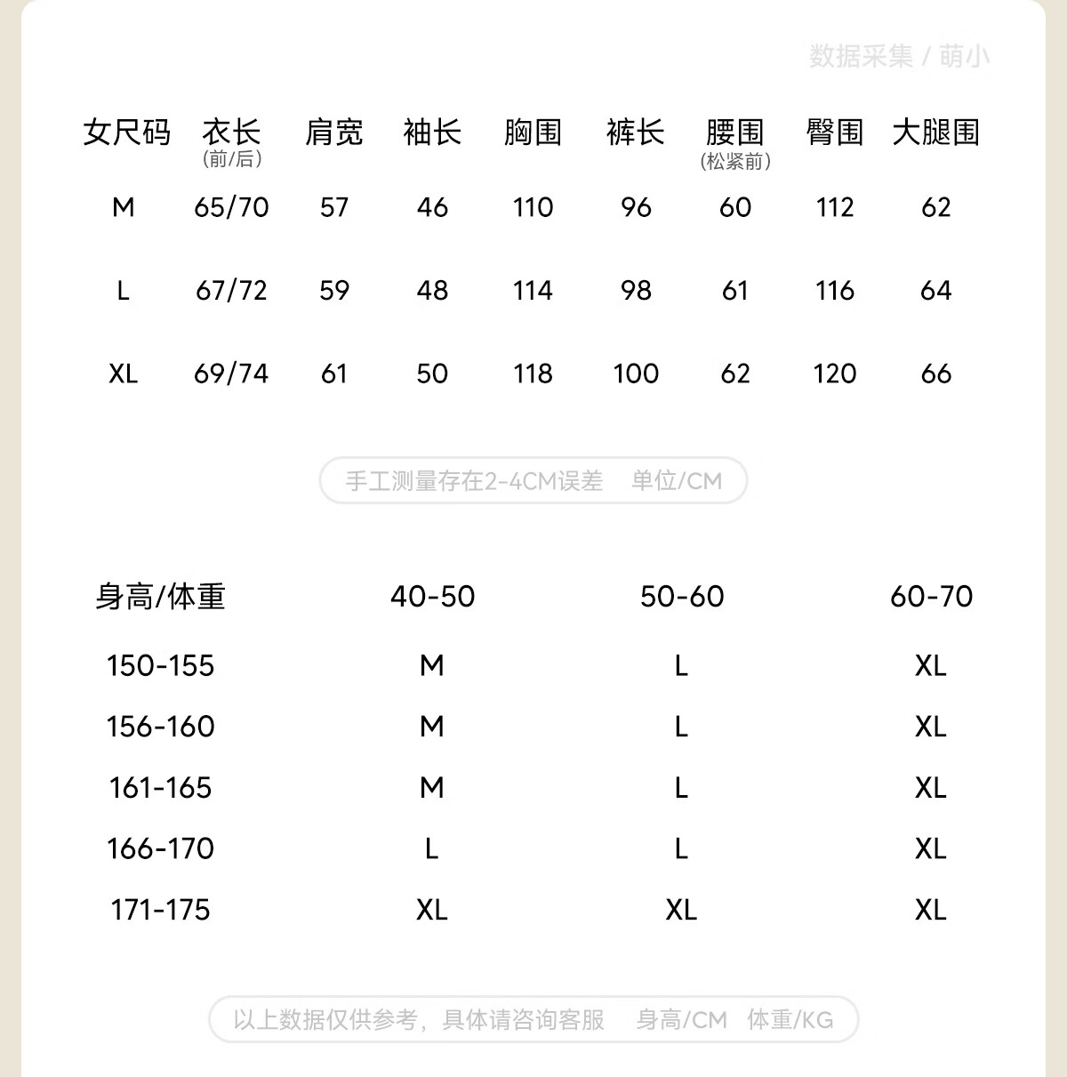 China (cm) 160-165/84-86 165-170 / 88-90 167-172 / 92-96 168-173 / 98-102 170-176 / 106-110