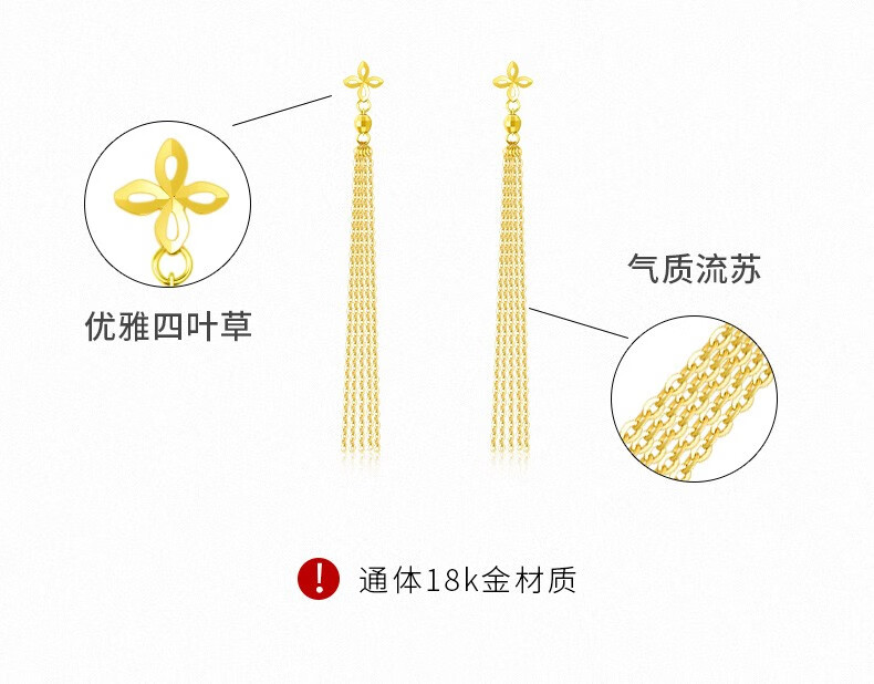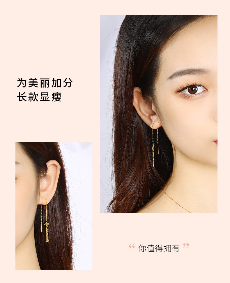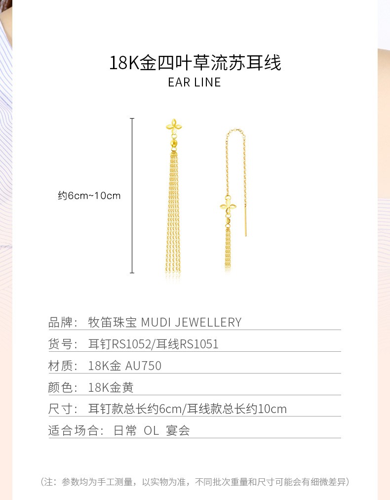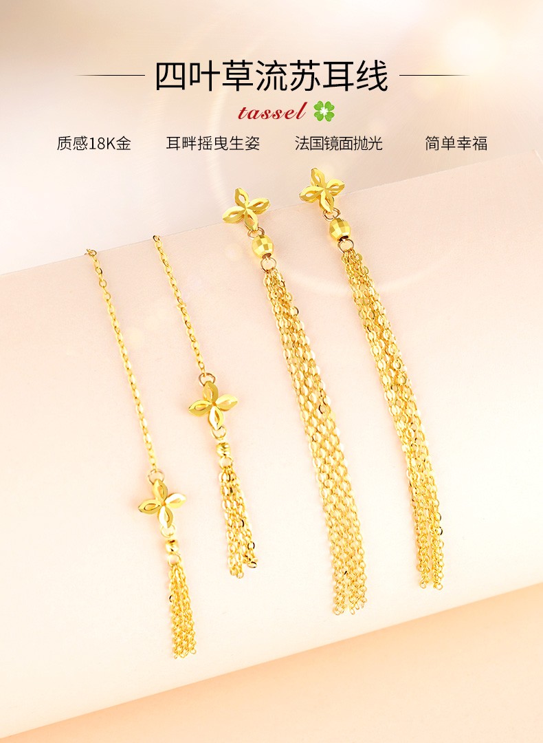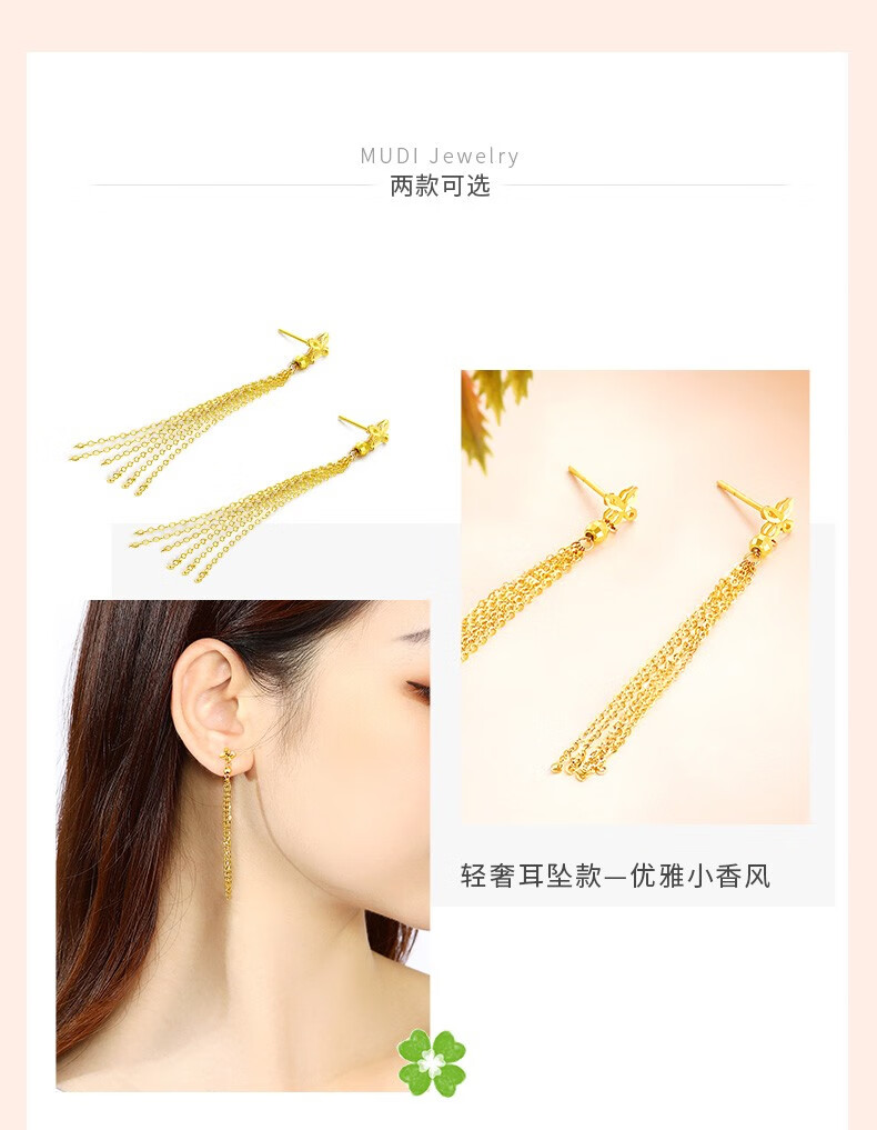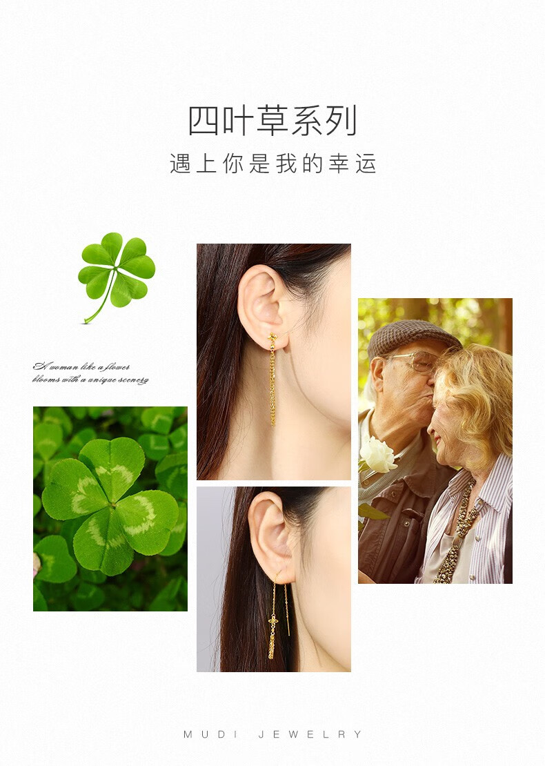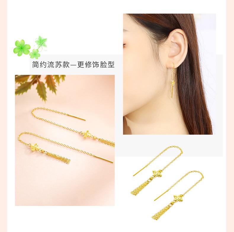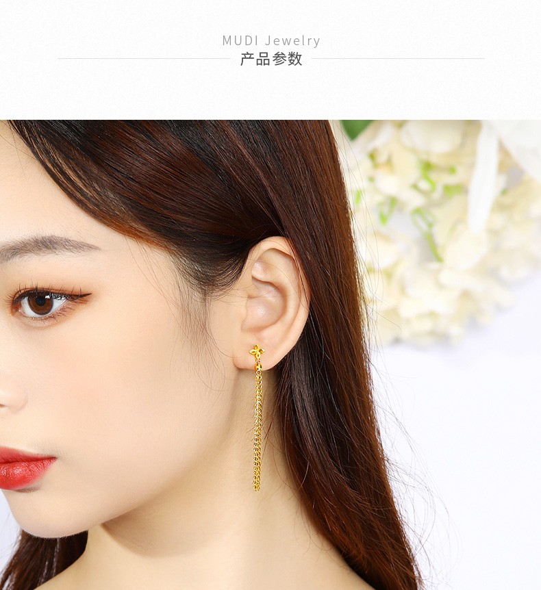 MUDI four-leaf clover tassel earrings for women 18k gold lucky flower long ear wire lover gift for girlfriend to commemorate ear wire style