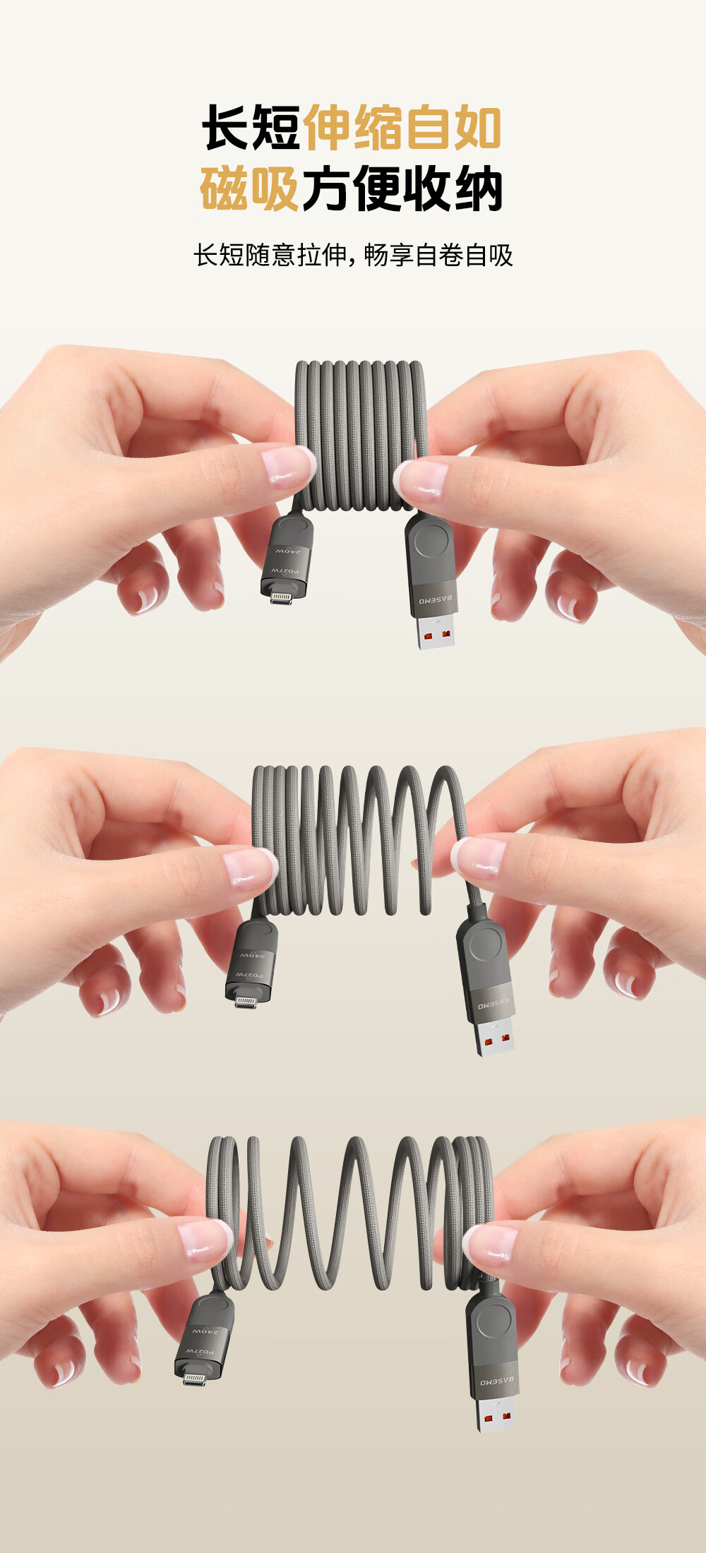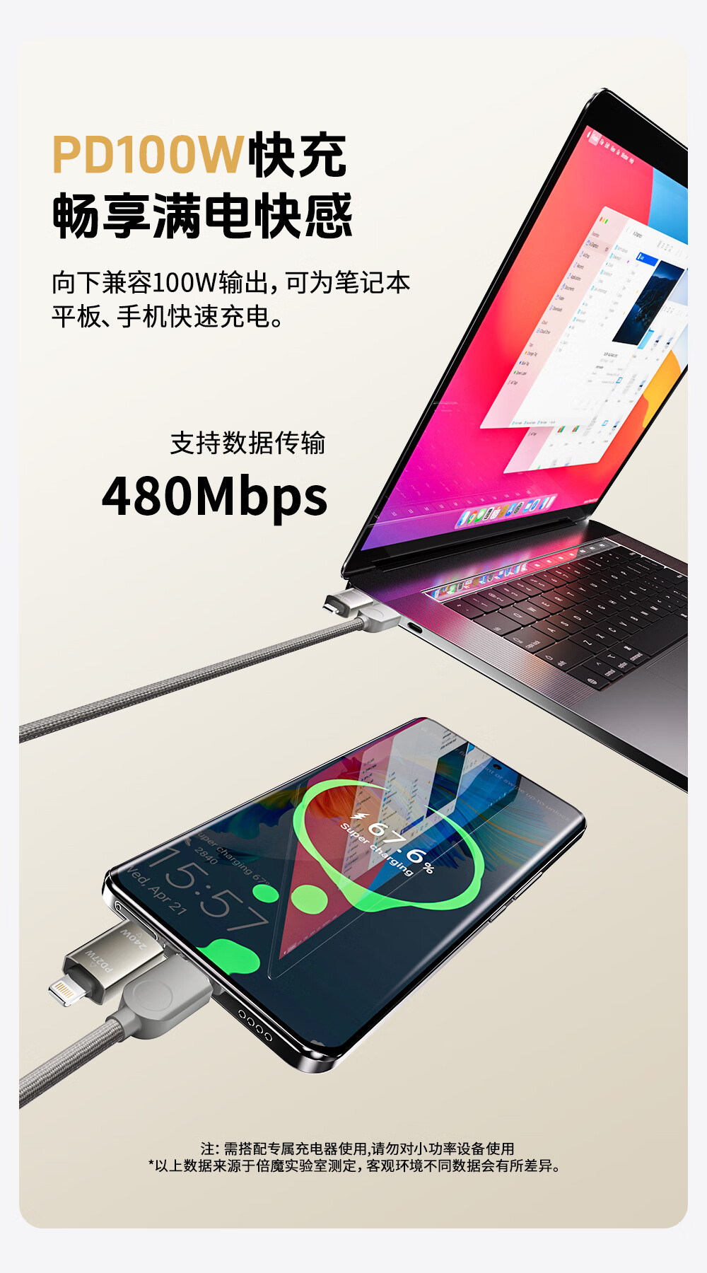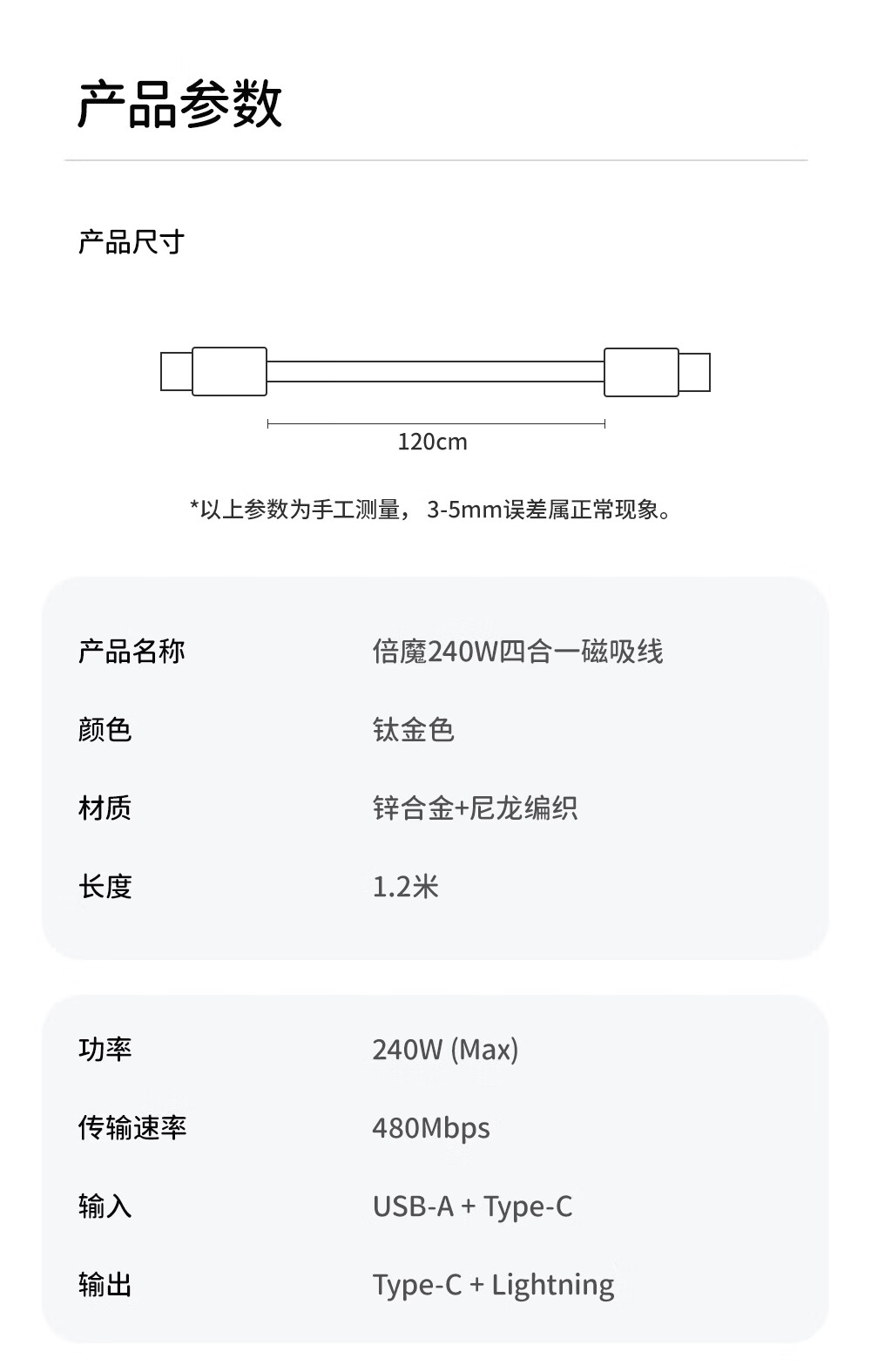 Bemo magnetic charging cable 240W power fast charging four-in-one data cable car data cable suitable for Apple 17/16/iPad/notebook/Huawei/Xiaomi 1.2m