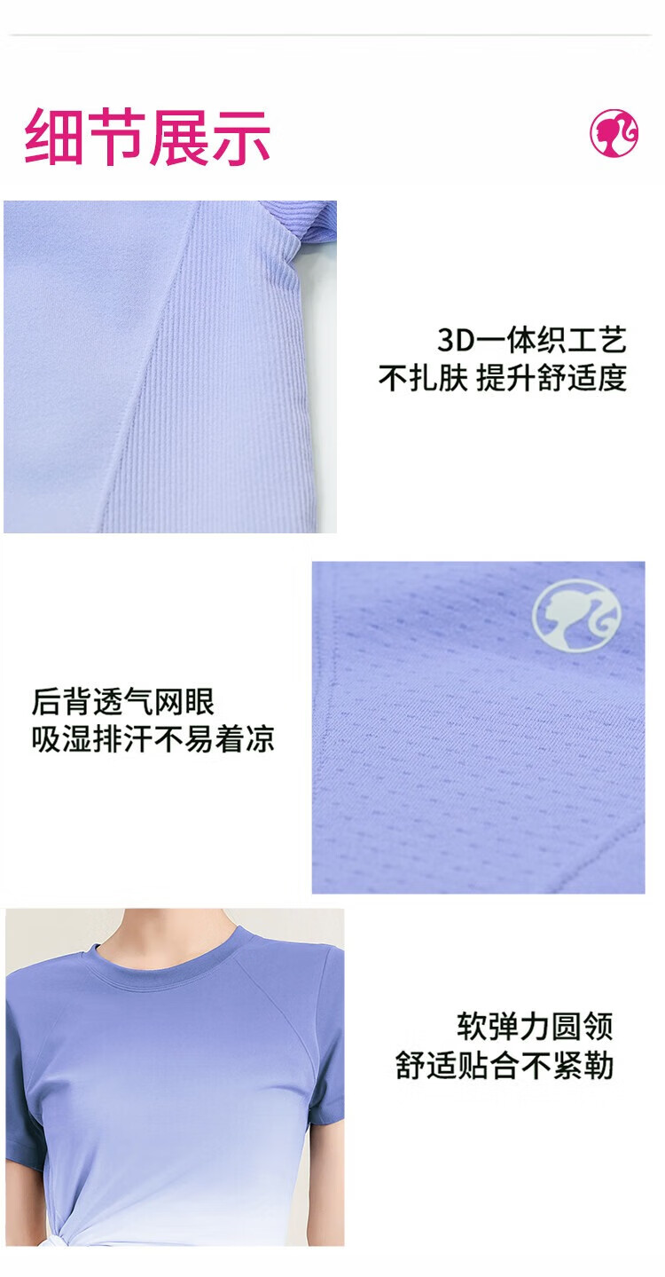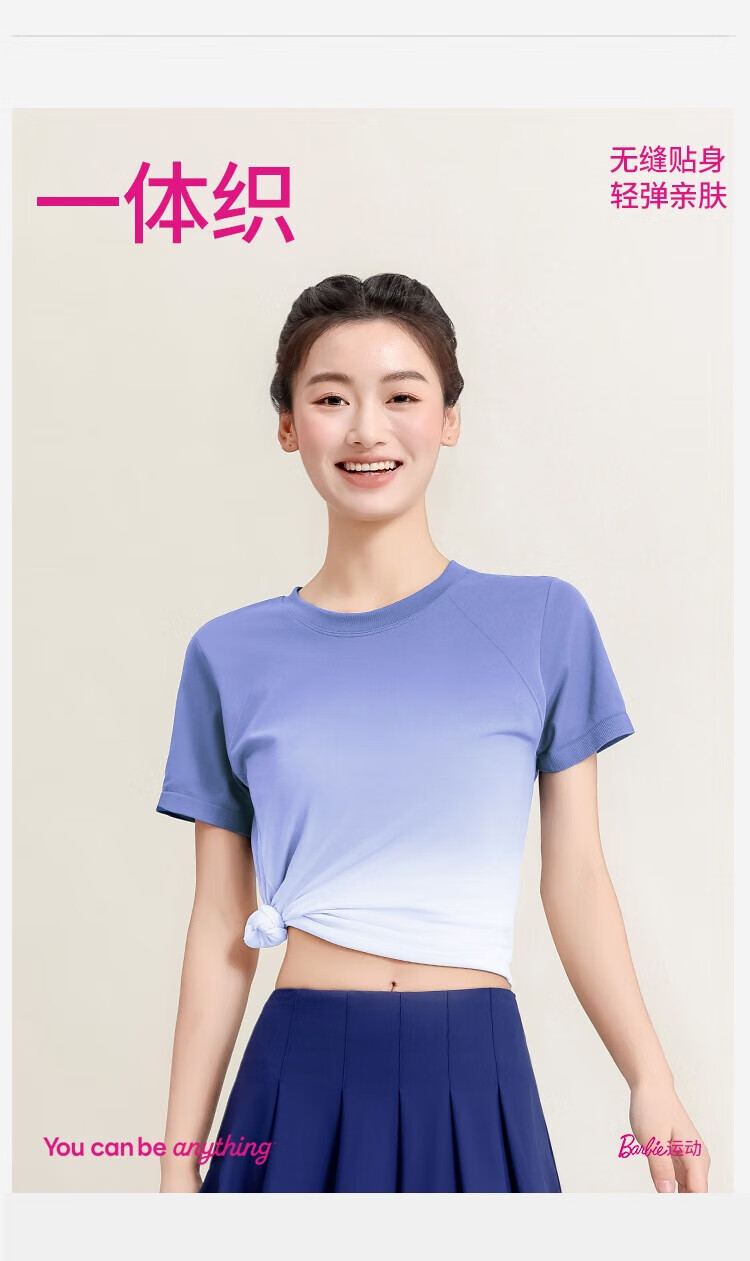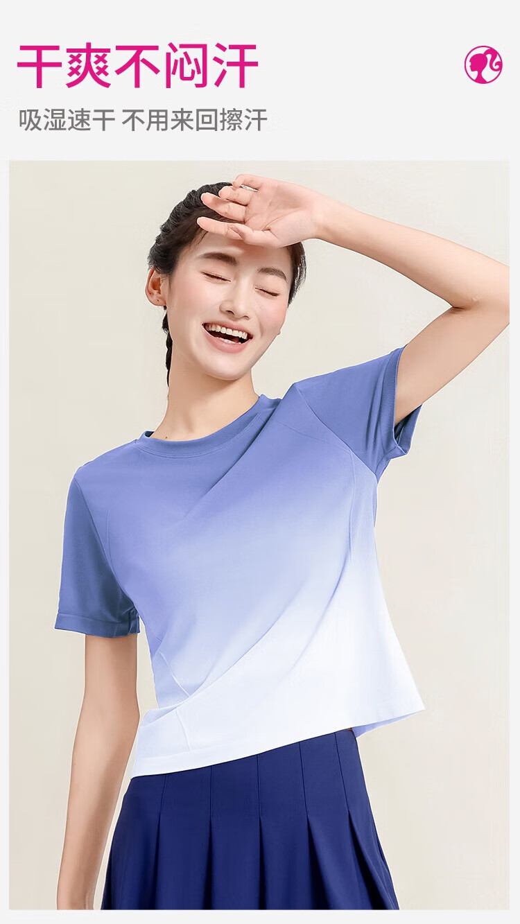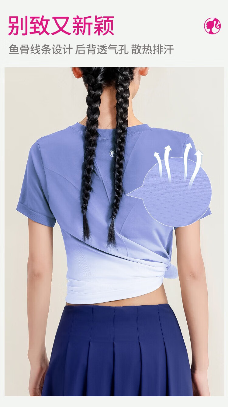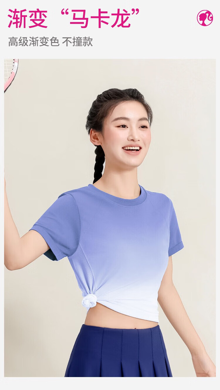 Barbie short-sleeved women's thin half-sleeved sports t gradient color yoga seamless one-piece quick-drying short-sleeved t-shirt sports women