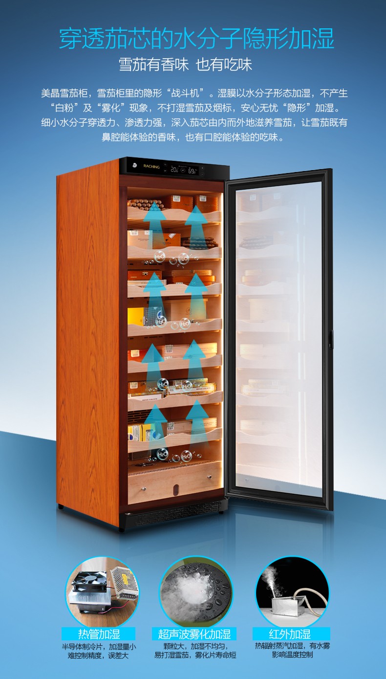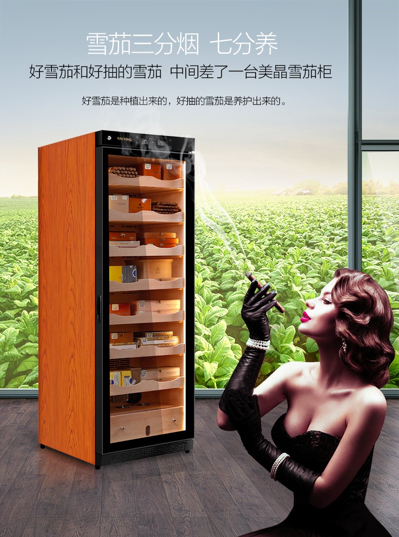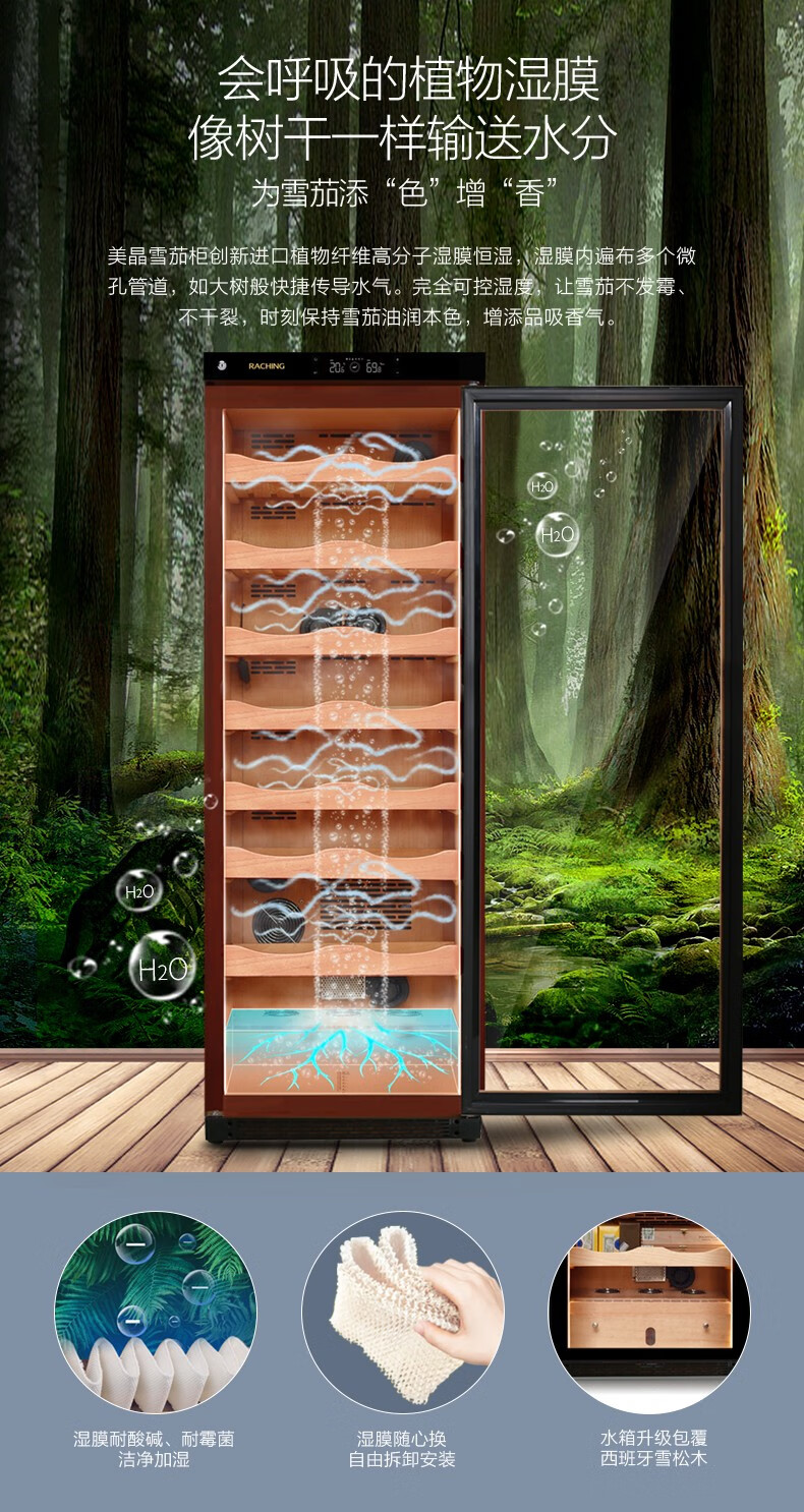 Meijing (raching) C380A solid wood constant temperature and humidity cigar cabinet humidifier compressor precision constant temperature and humidity cigar humidifier humidor household rosewood brown (Spanish cedar wood shelf)
