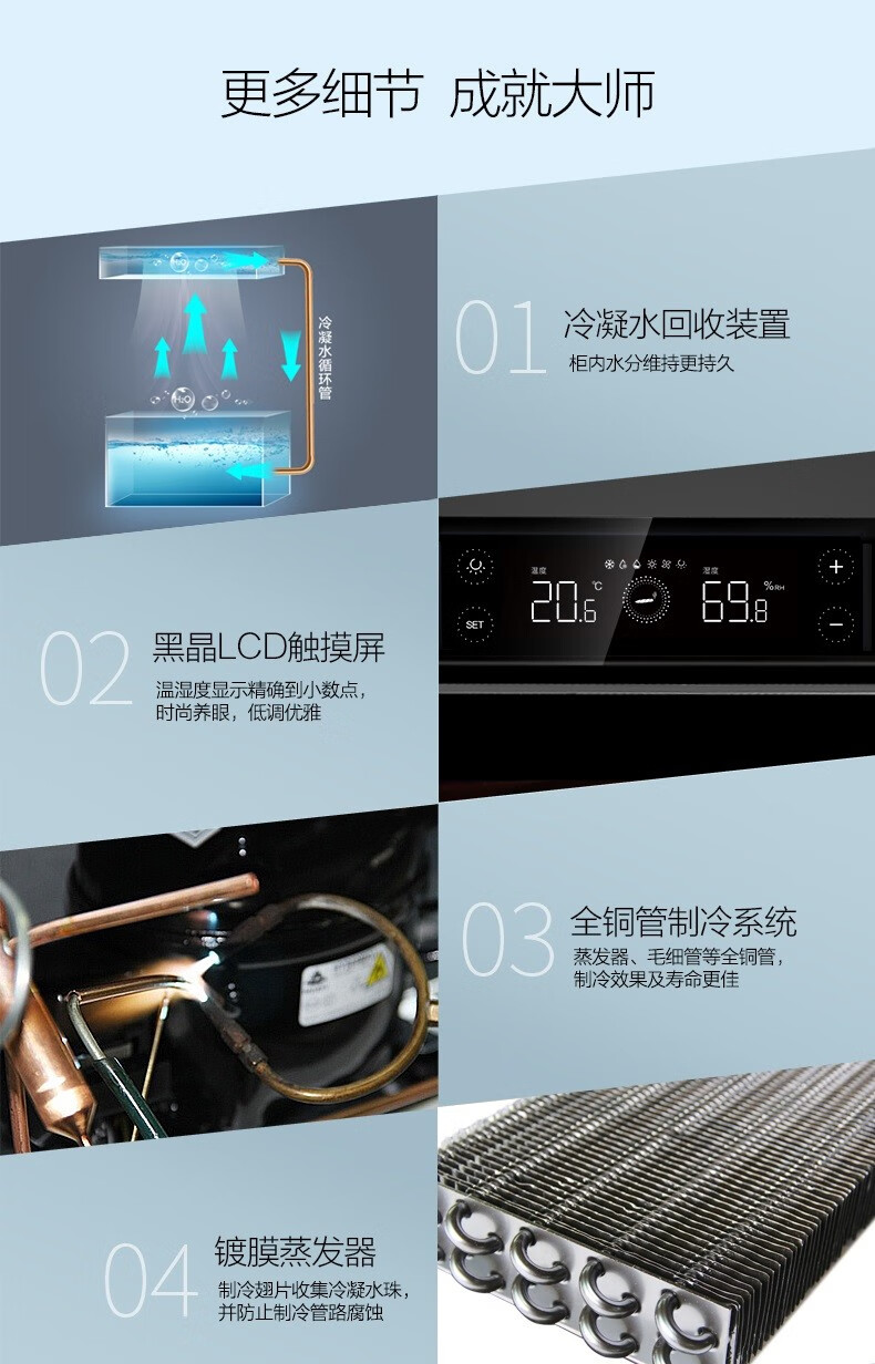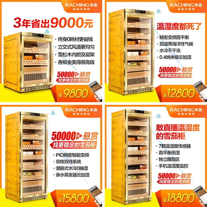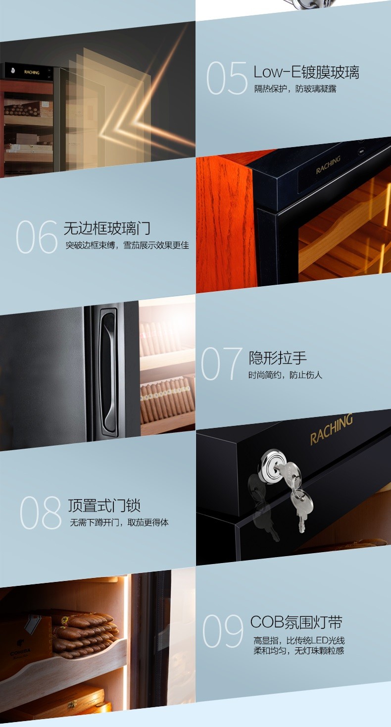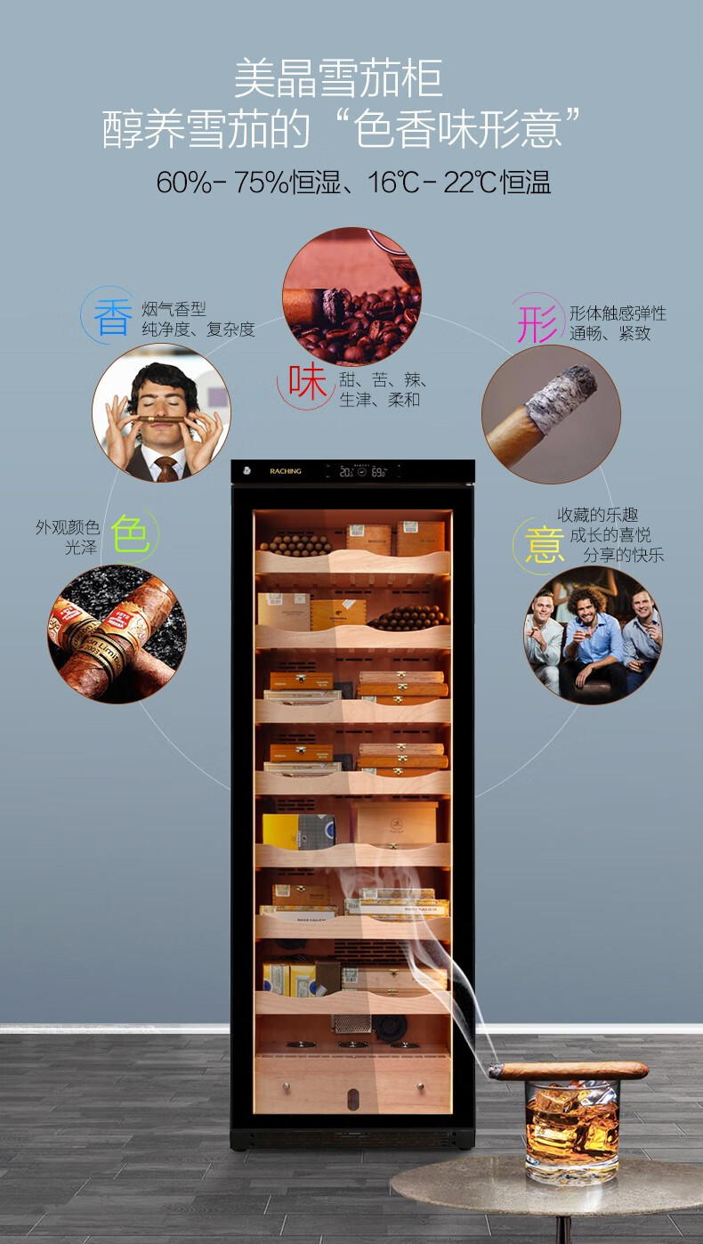 Meijing (raching) C380A solid wood constant temperature and humidity cigar cabinet humidifier compressor precision constant temperature and humidity cigar humidifier humidor household rosewood brown (Spanish cedar wood shelf)