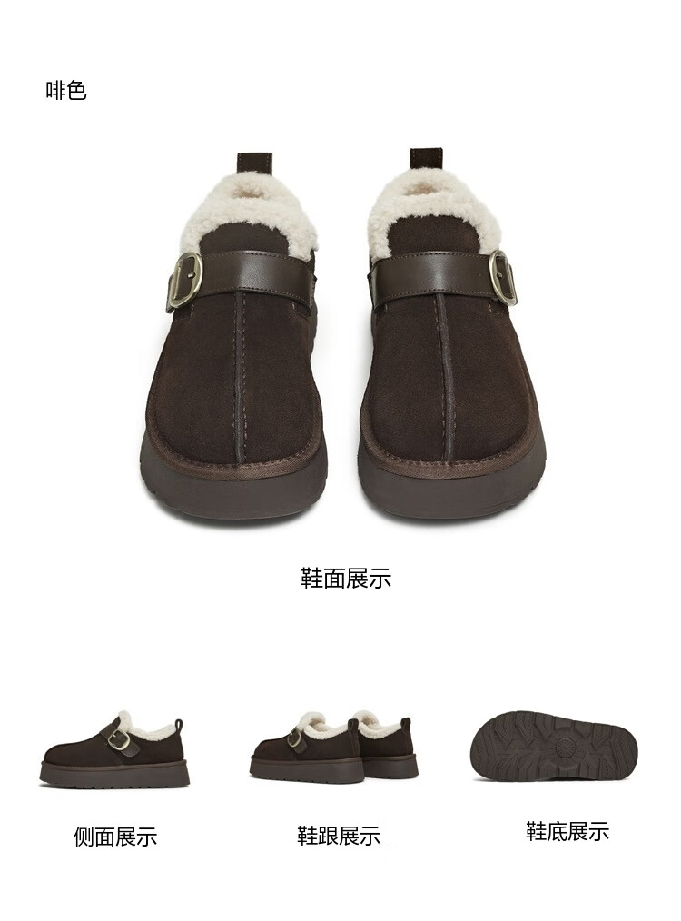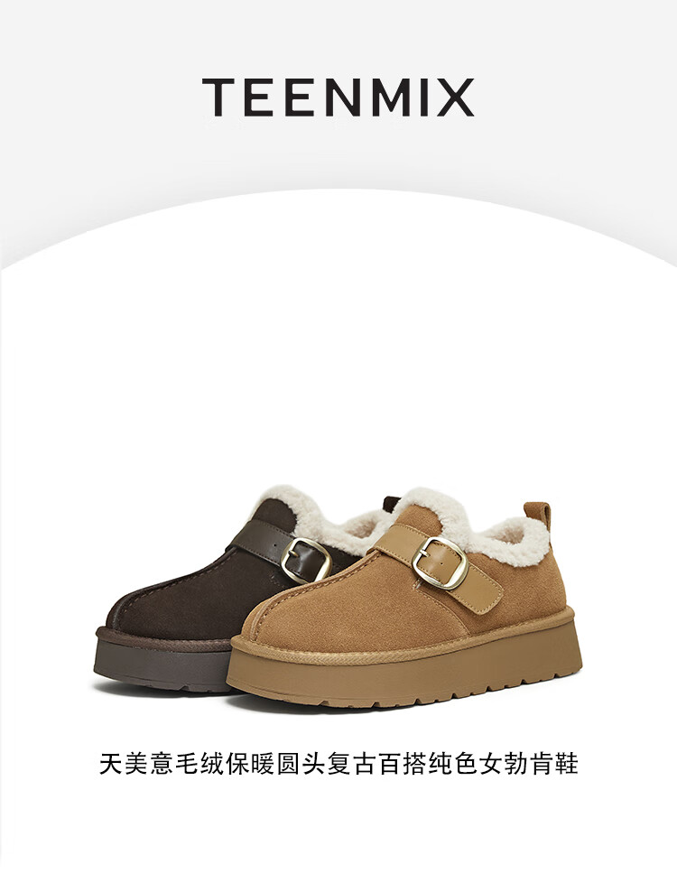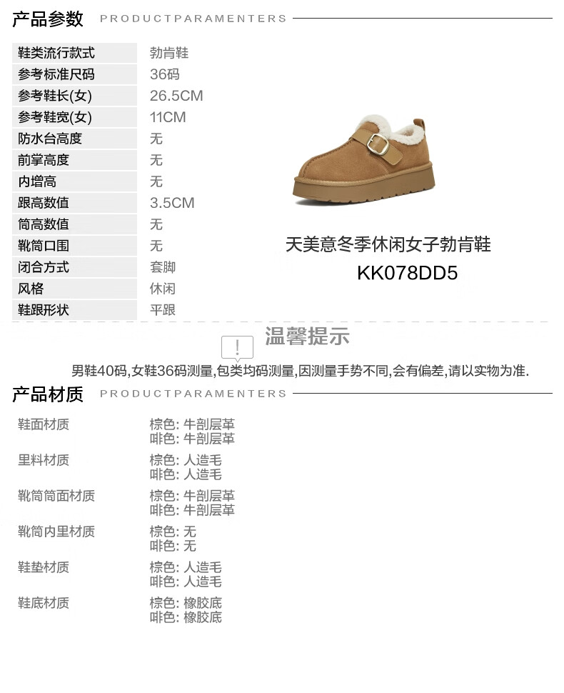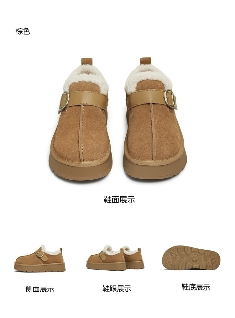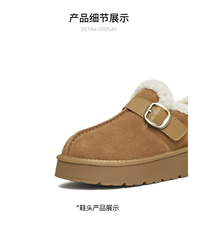 Tianmei Birkenstock shoes plush warm round toe solid color women's boots new style brown 36