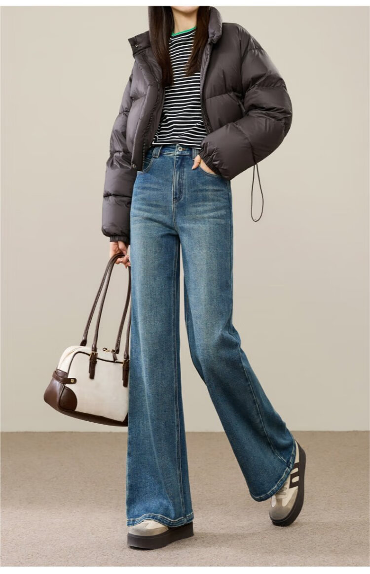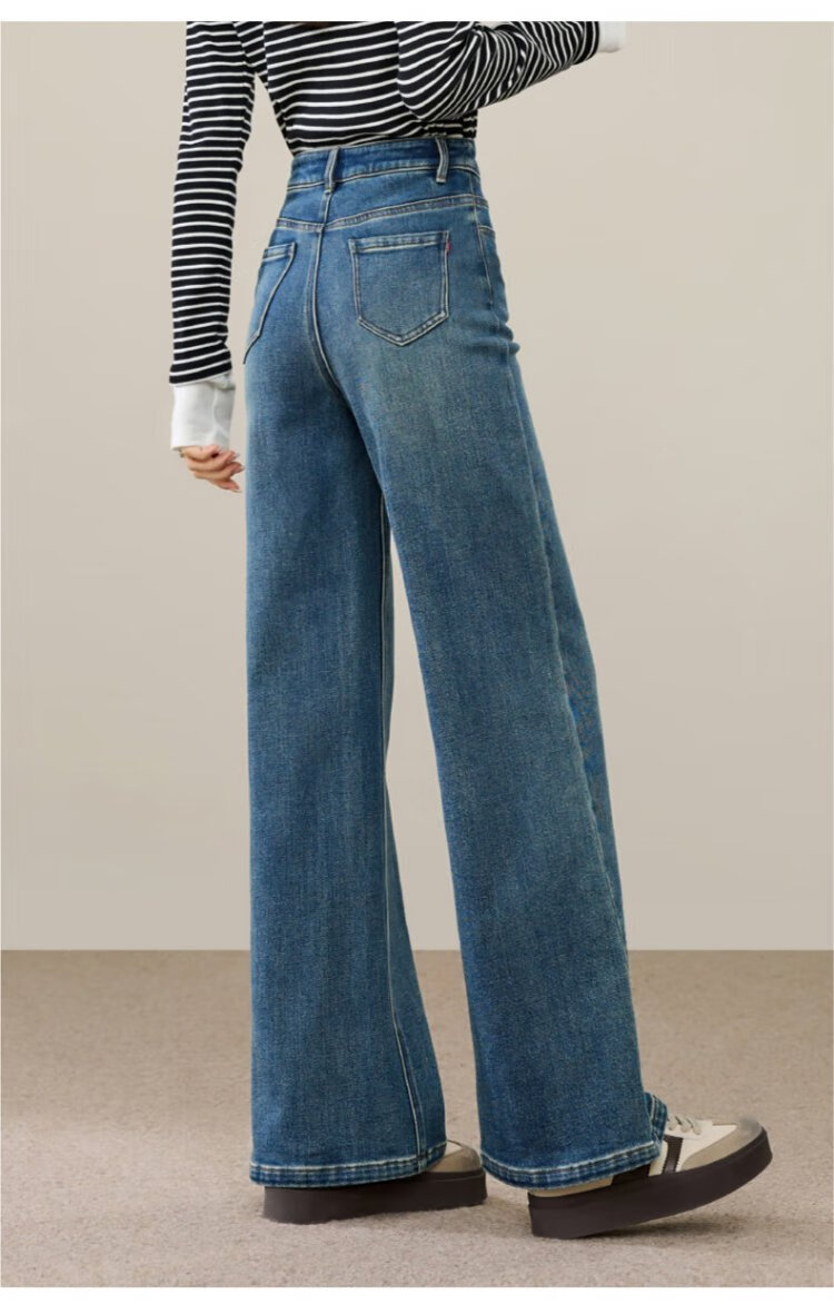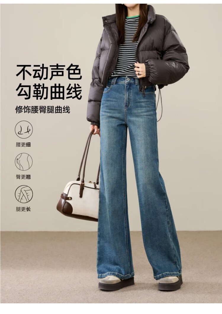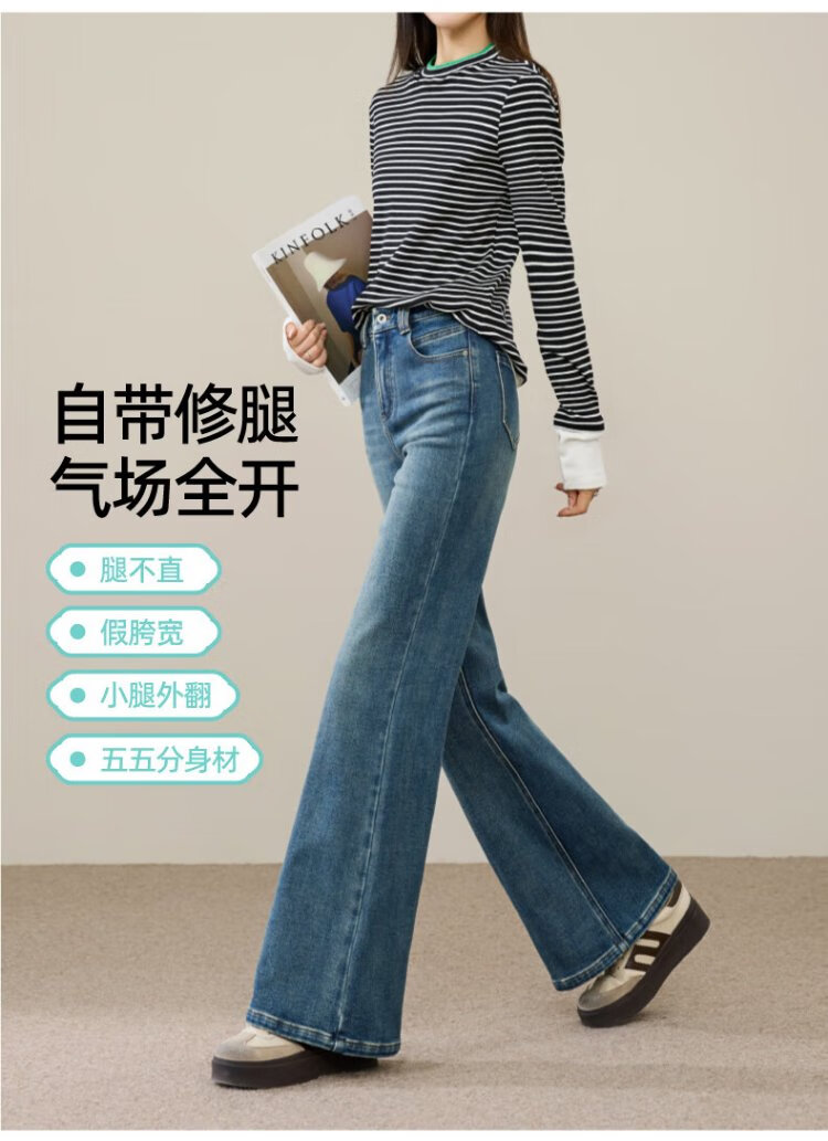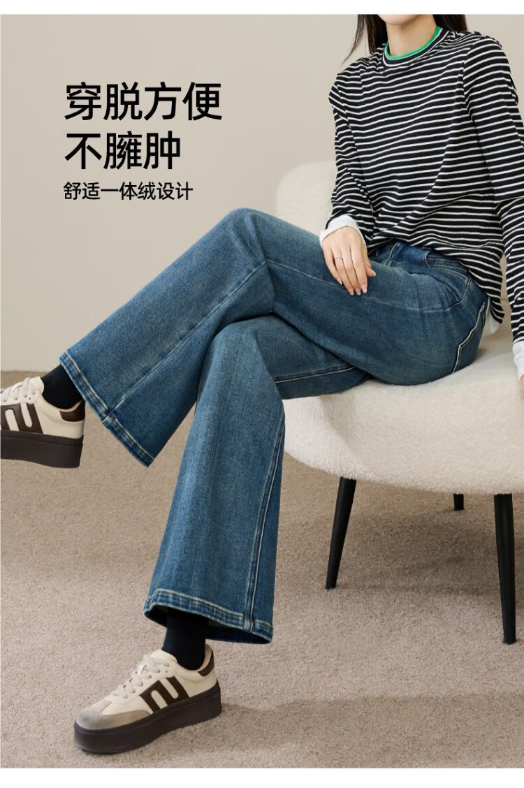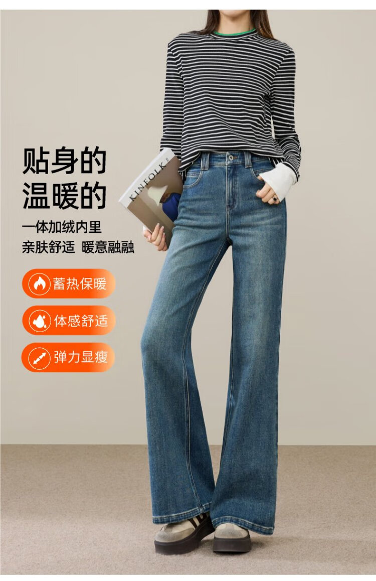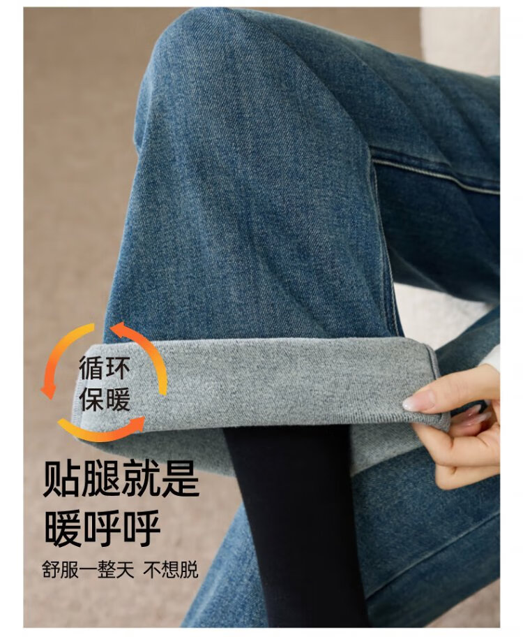 Yiyang (ESE-Y) plus fleece bootcut jeans for women 2025 autumn and winter bootcut trousers denim blue - regular (height 163-170) 30