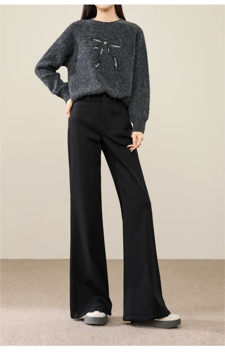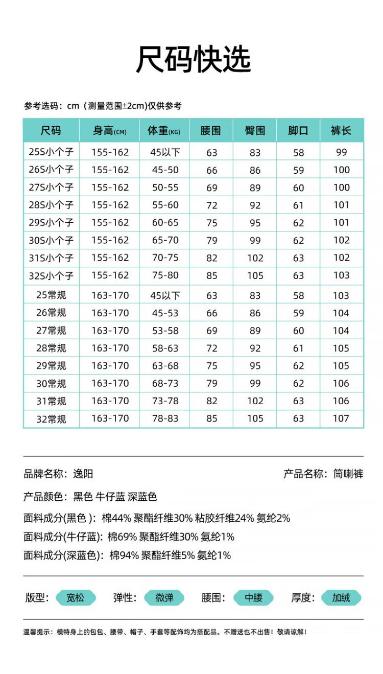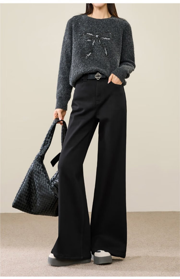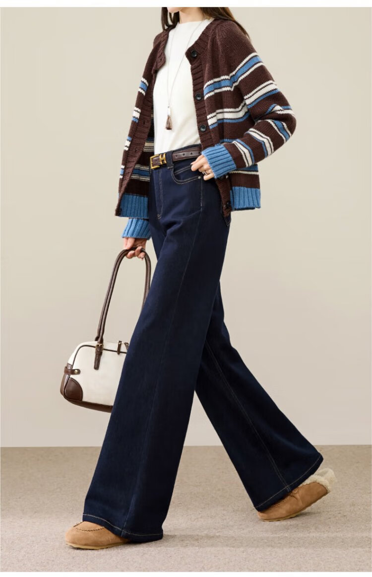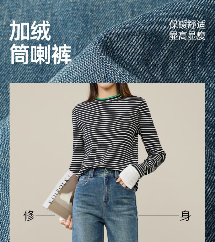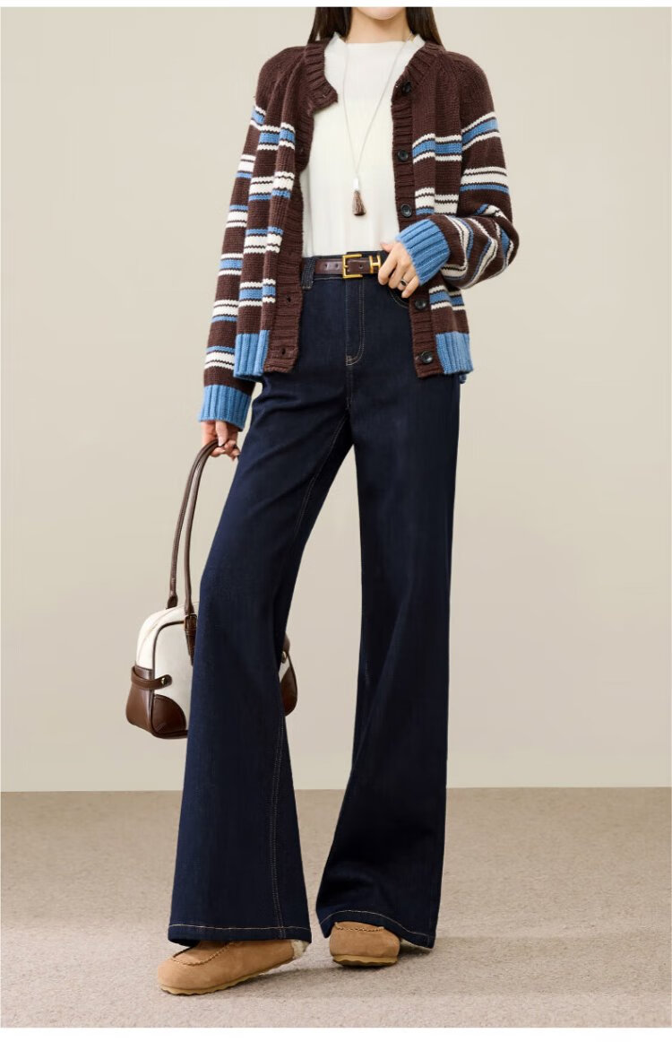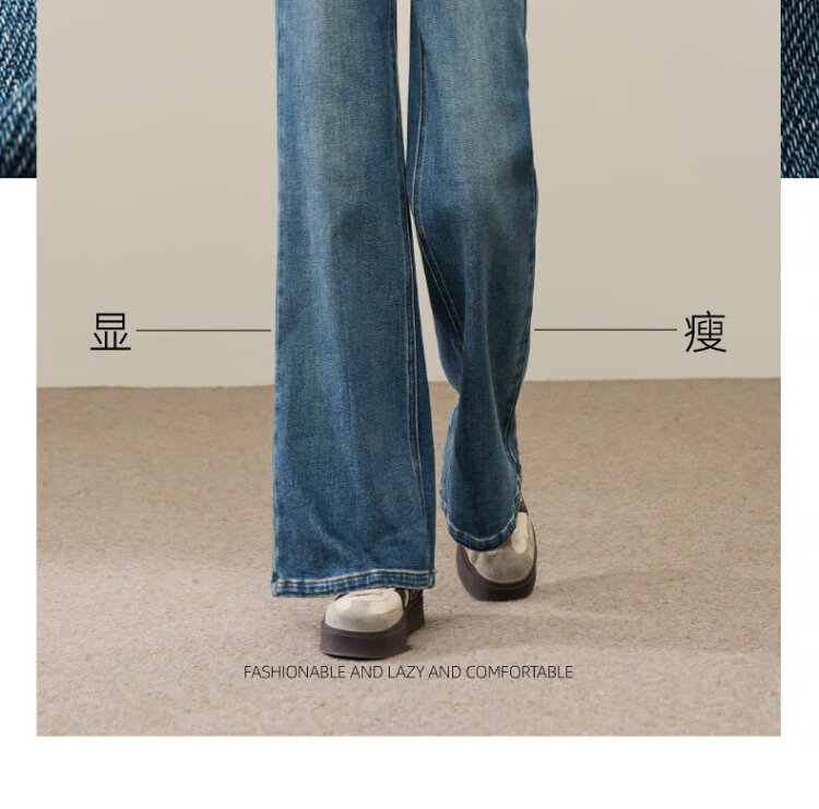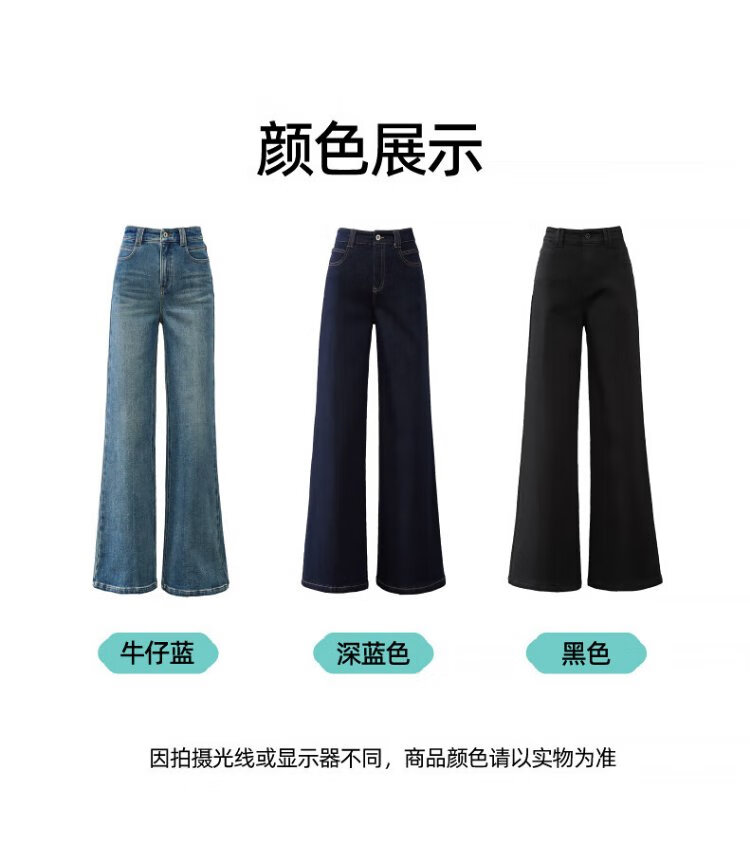 Yiyang (ESE-Y) plus fleece bootcut jeans for women 2025 autumn and winter bootcut trousers denim blue - regular (height 163-170) 30