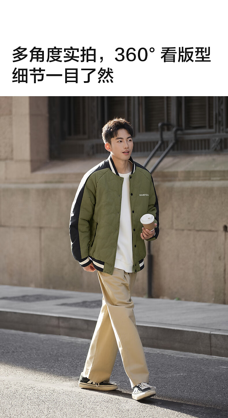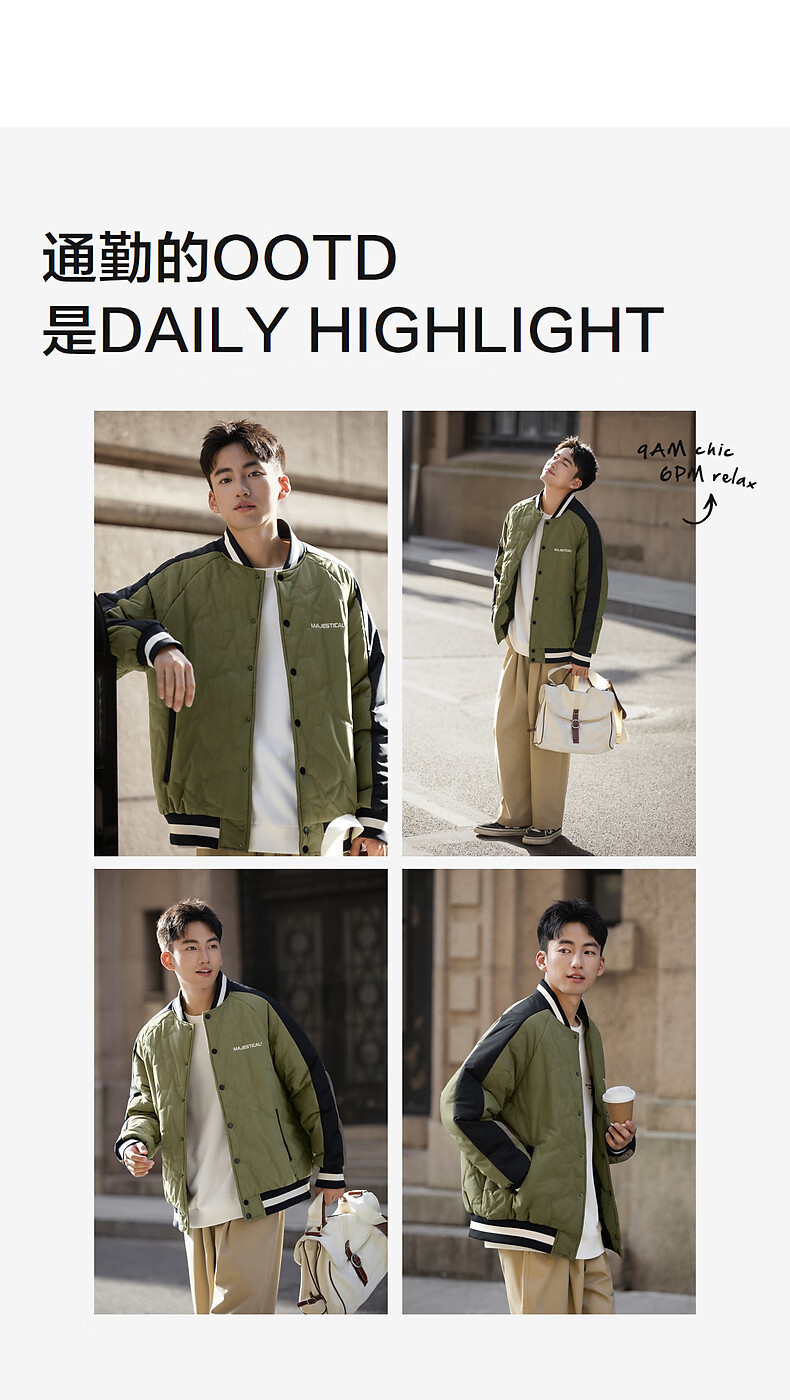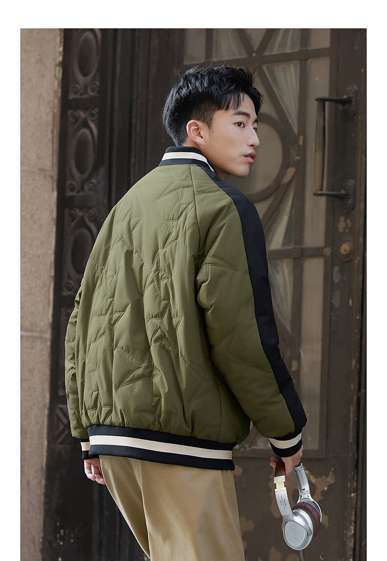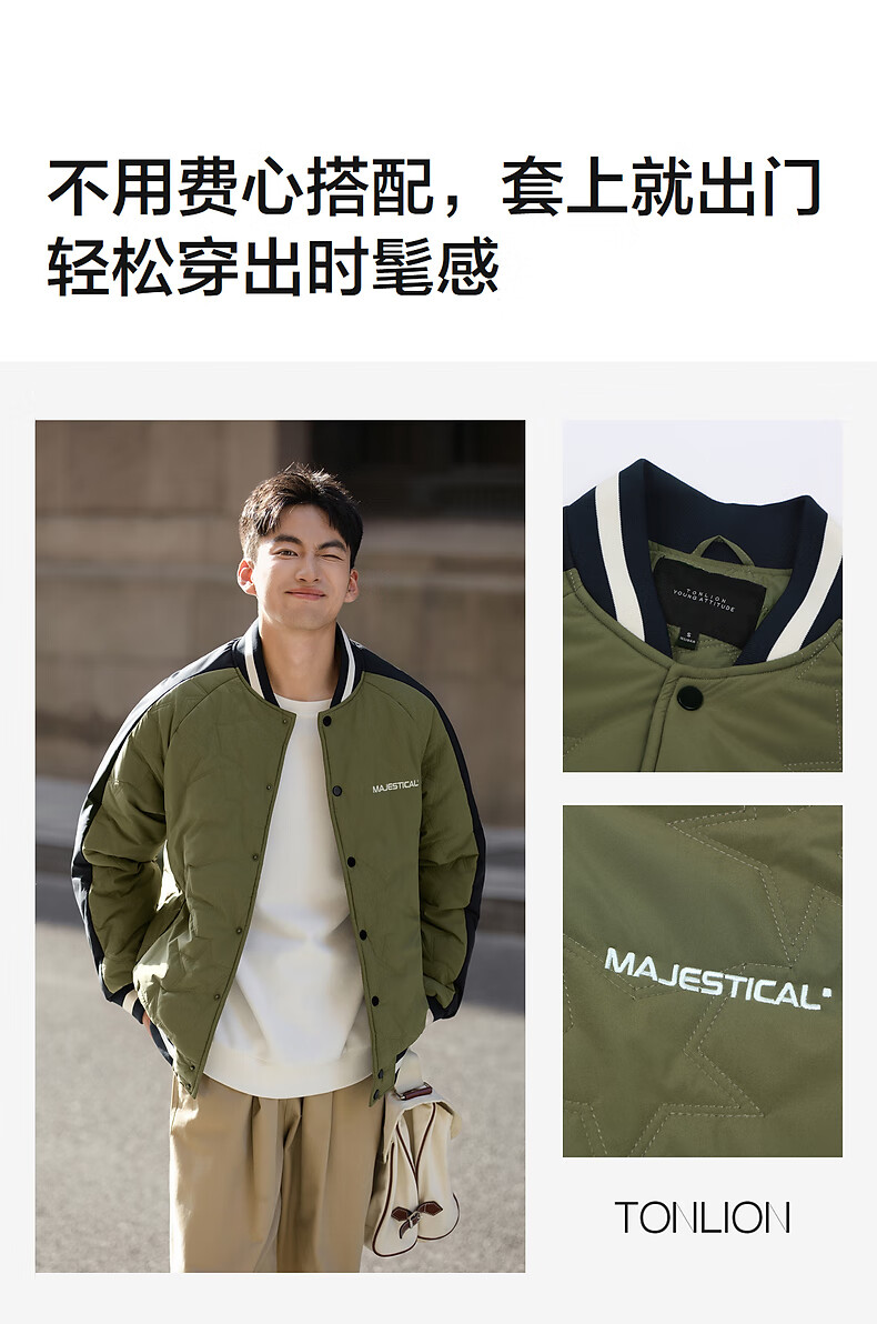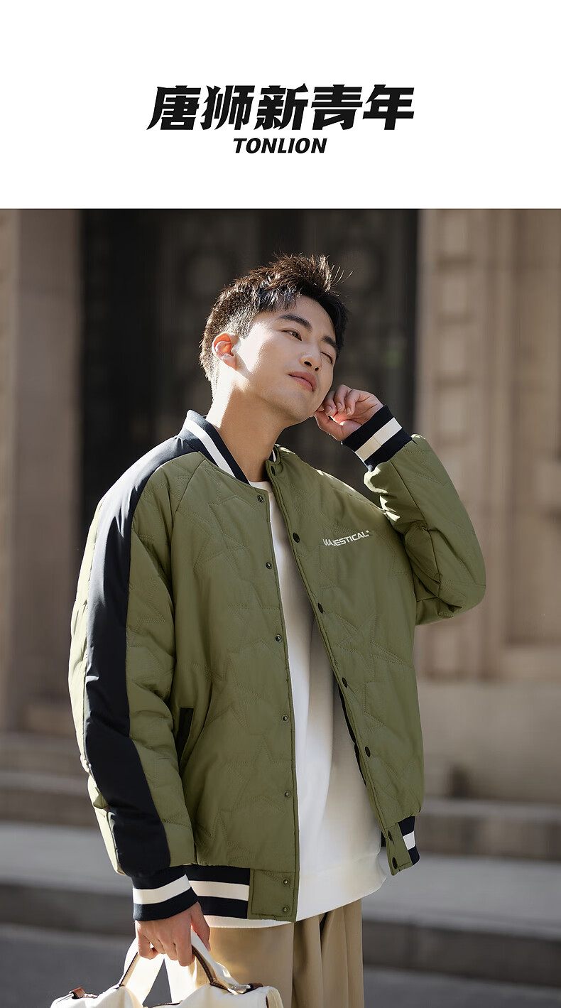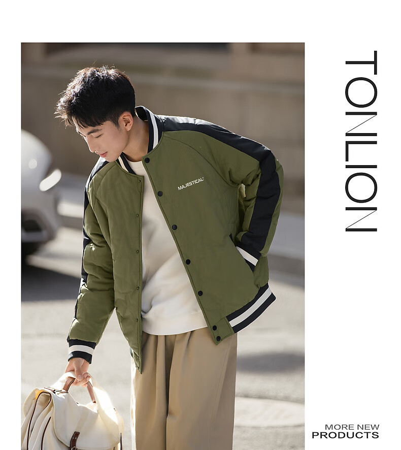 TonLion 2025 winter men's baseball collar cotton padded jacket with text on left chest