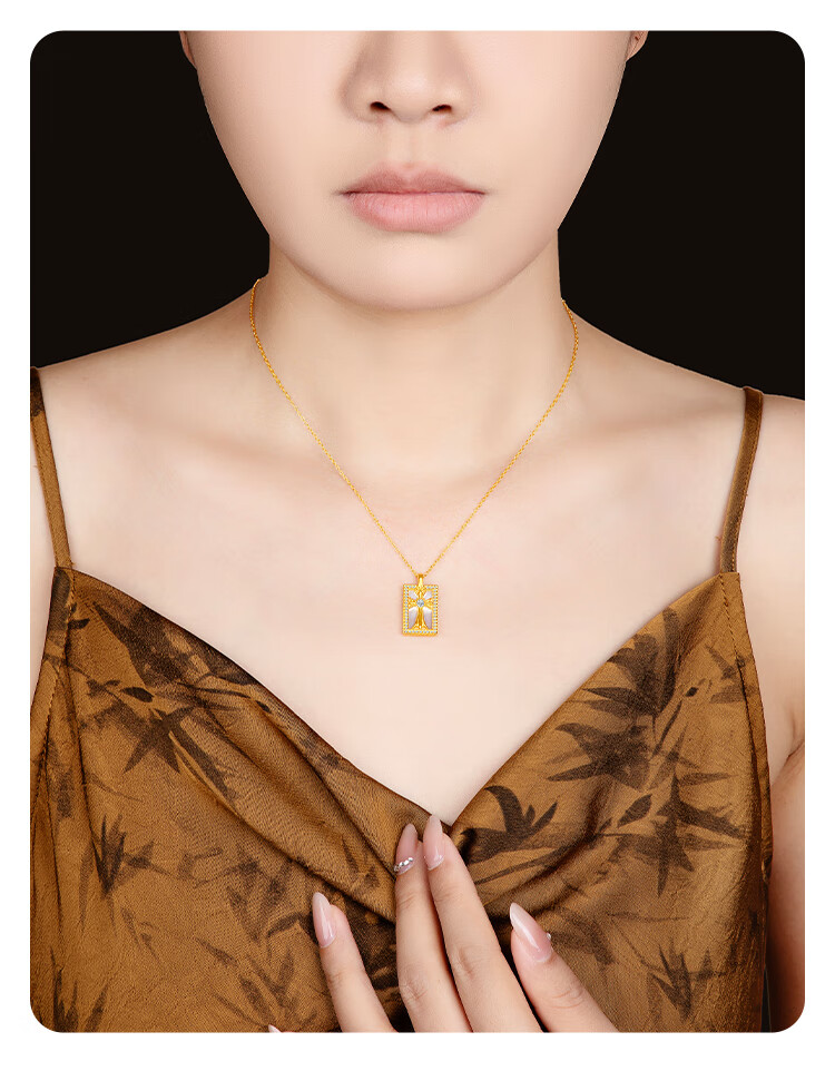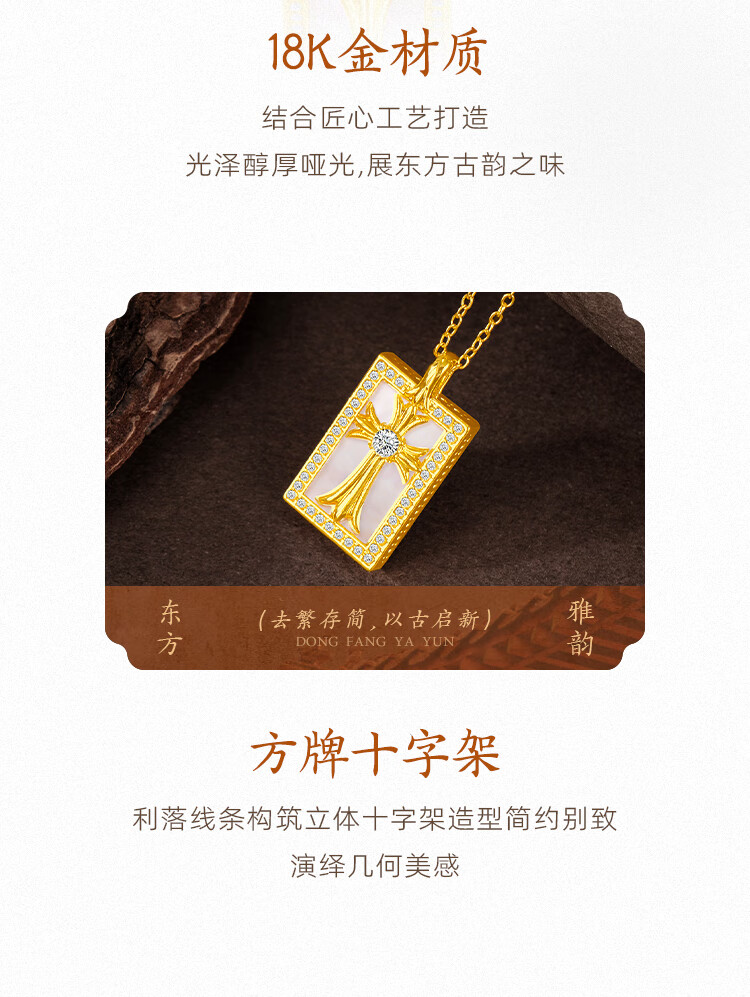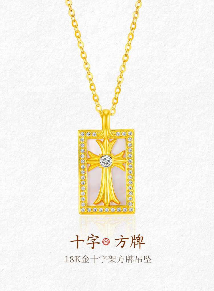 Mingzuan International 18K gold cross mother-of-pearl square brand pendant for women au750 zircon inlaid neckpiece as a birthday gift for girlfriend