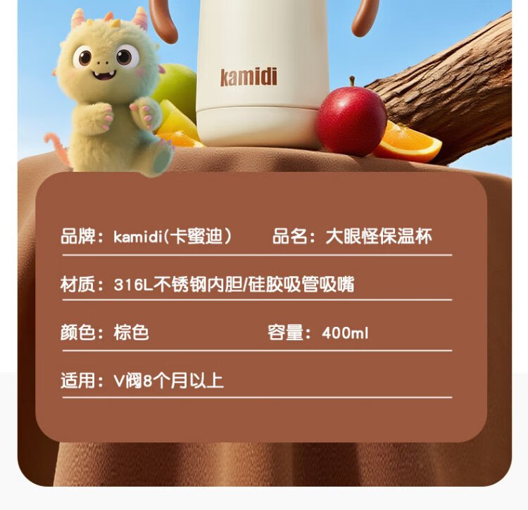 Kamidi (kamidi) children's thermos cup infant thermos kettle small month old baby 316L stainless steel straw bottle 400ml