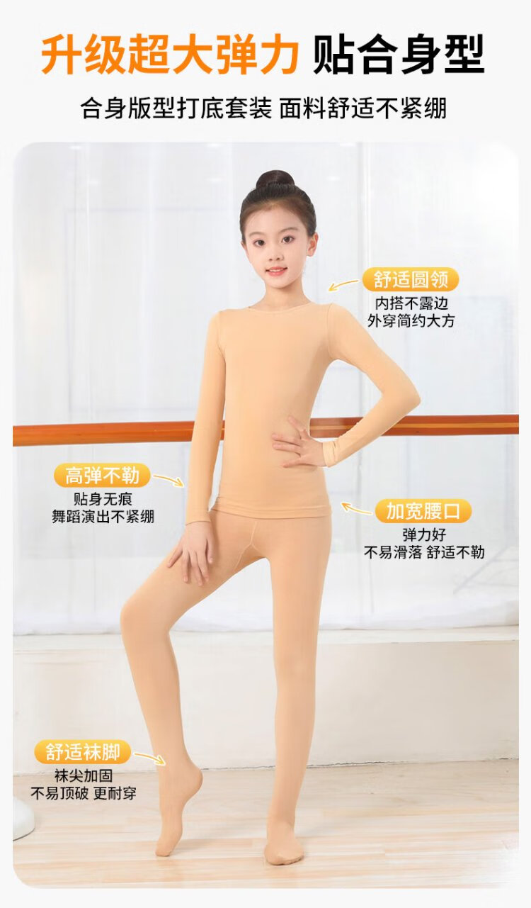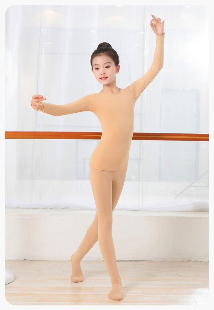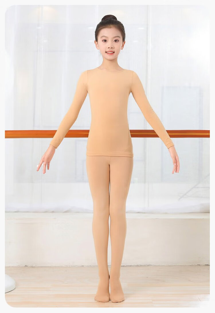 Gunia children's dance clothing bottoming shirt skin color warm underwear thin velvet practice clothing white suit M