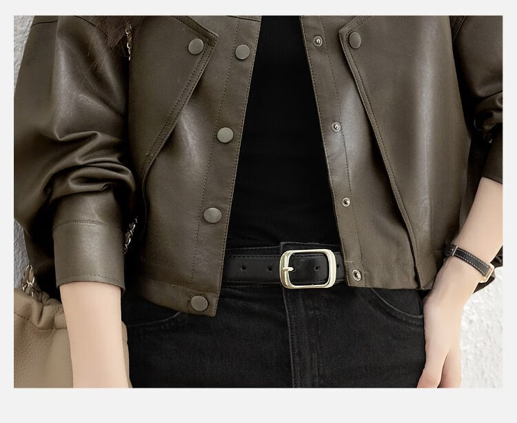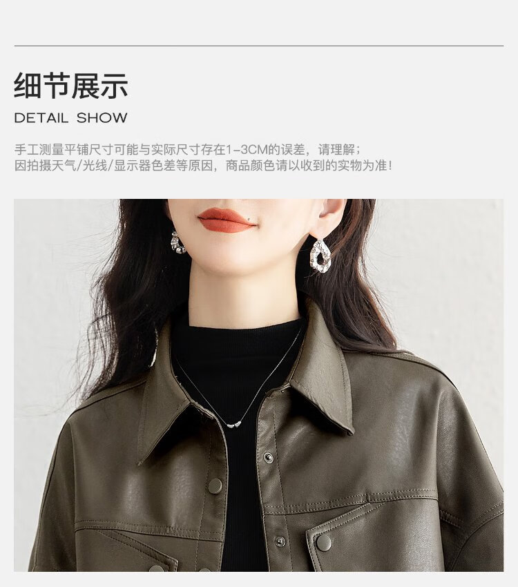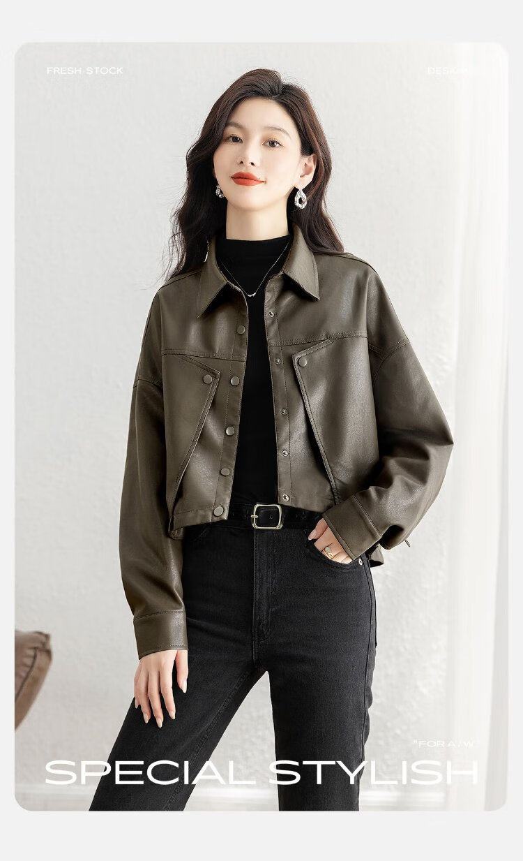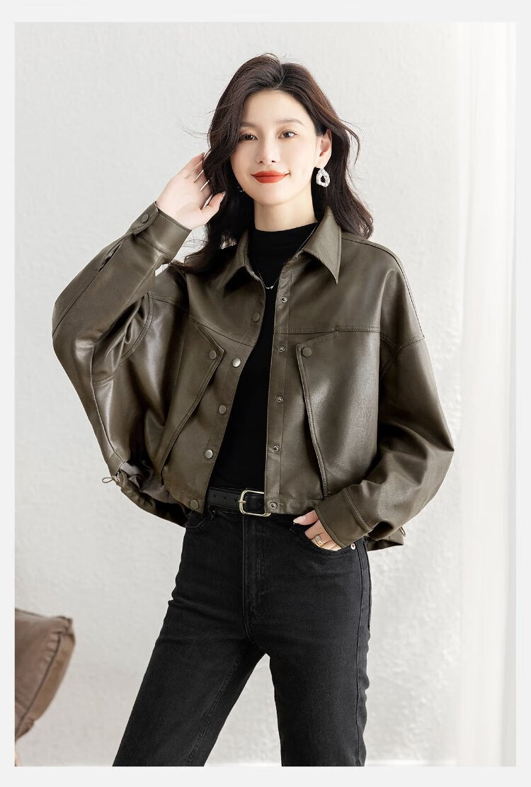 丝柏舍翻领长袖宽松外套女2025秋装新款复古气质短款简约皮衣