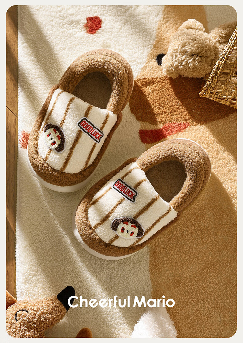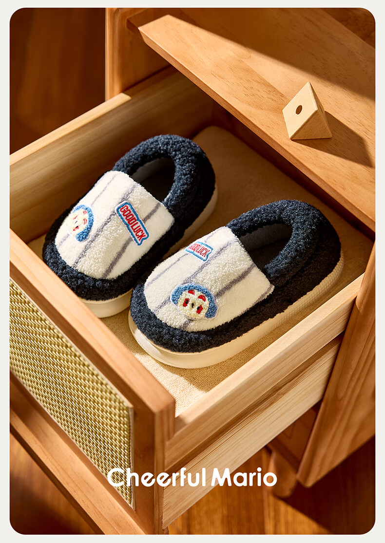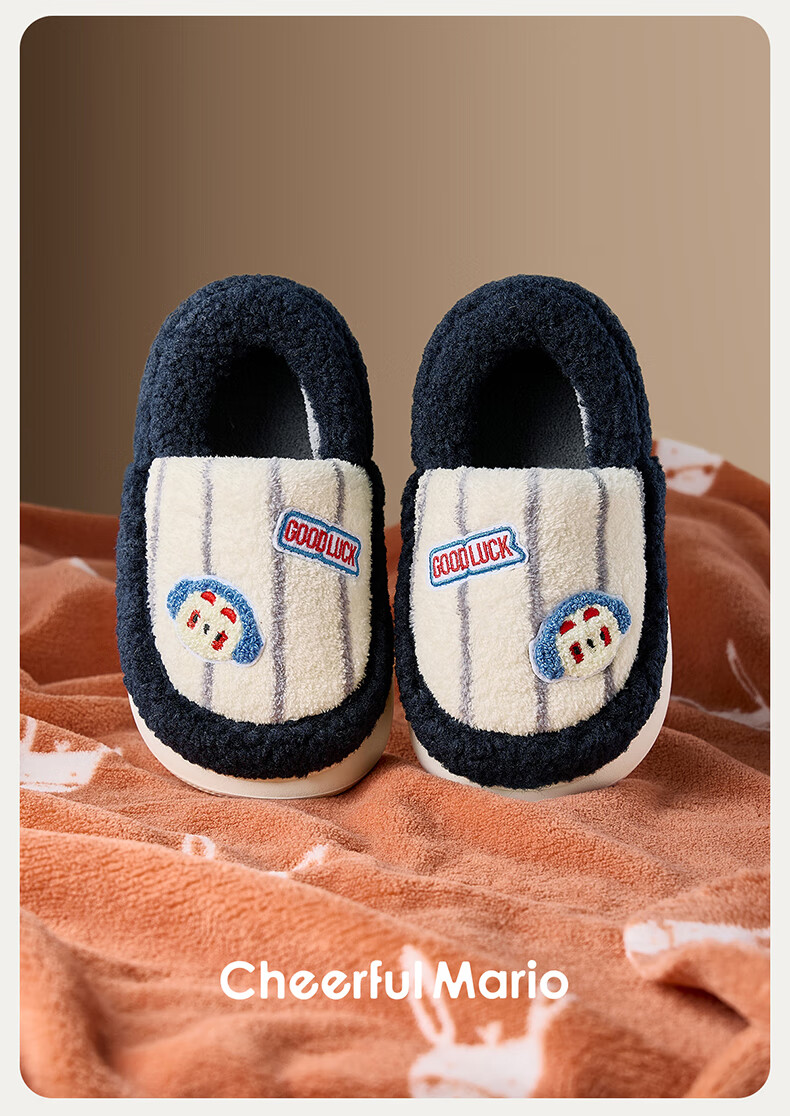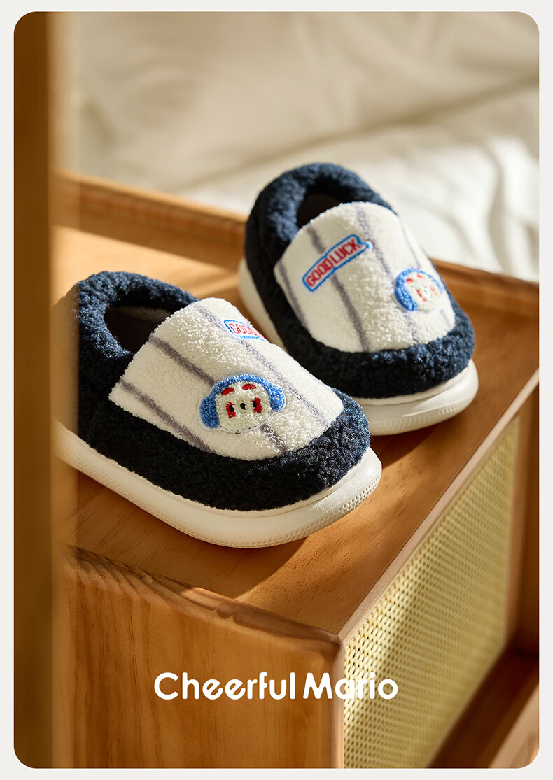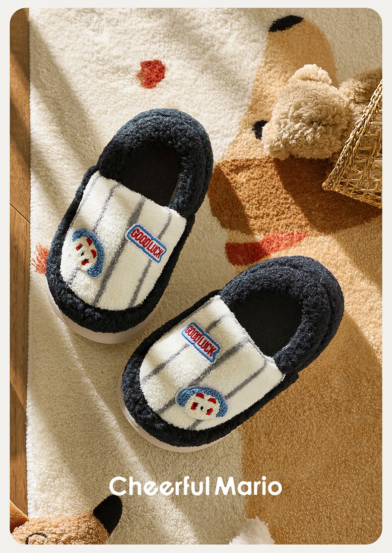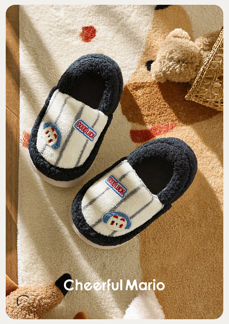 Cheerful Mario Cartoon Embroidery Children's Cotton Slippers Girls Winter Bag Heels Indoor Home Warm Middle-aged Boys Wool Cotton Shoes