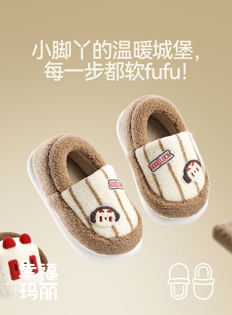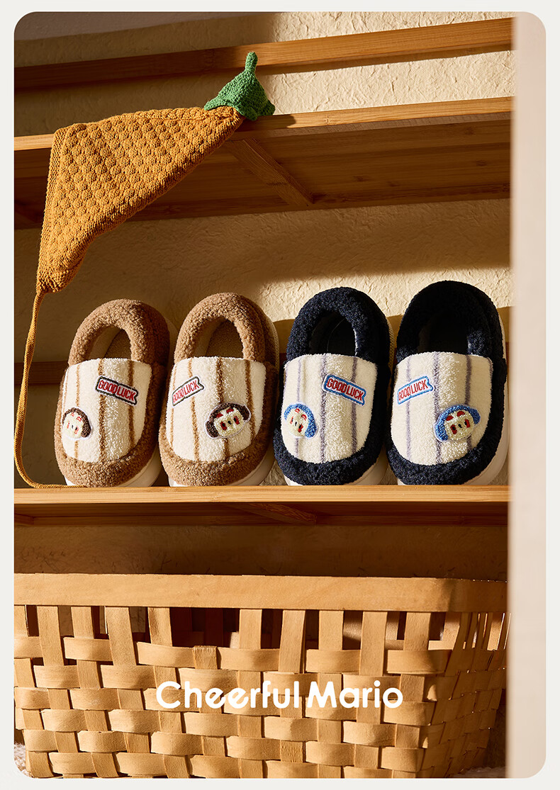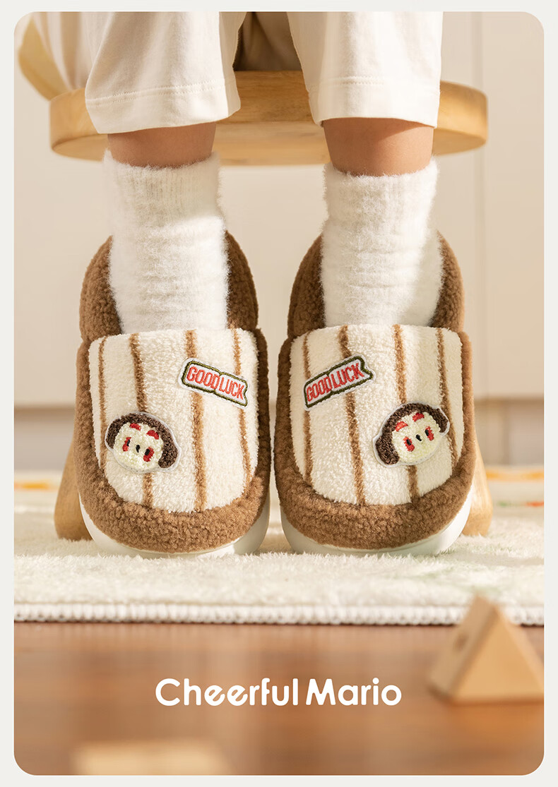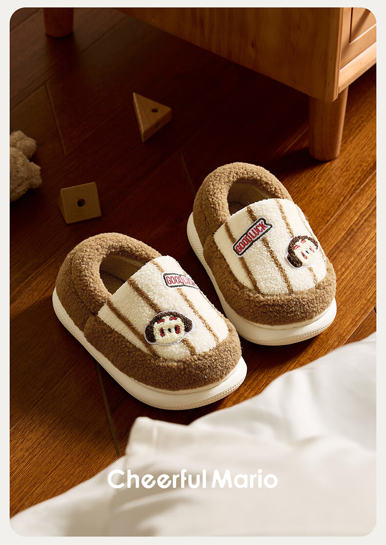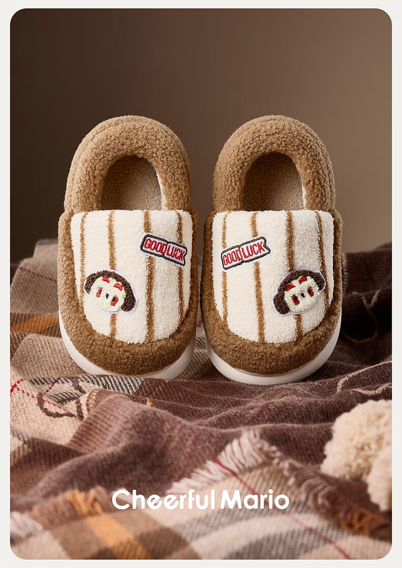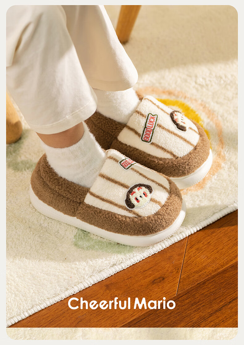 Cheerful Mario Cartoon Embroidery Children's Cotton Slippers Girls Winter Bag Heels Indoor Home Warm Middle-aged Boys Wool Cotton Shoes