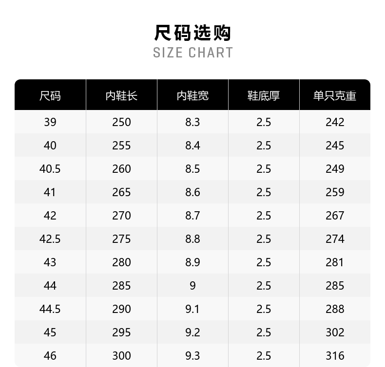 China (cm) 36 - 37 38 - 39 40 - 42 43 - 44 45 - 47
