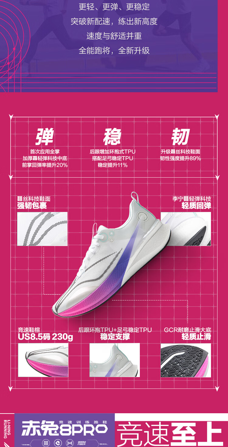 Li-Ning Chitu 8PRO running shoes for men spring and summer reflective silk lightweight high-rebound breathable sports shoes ARPV003