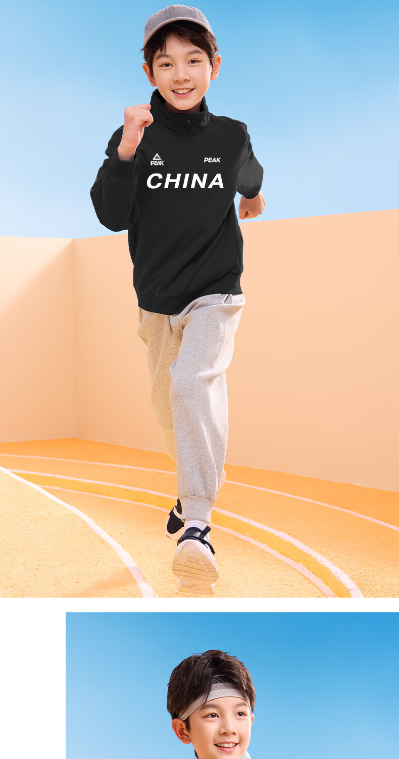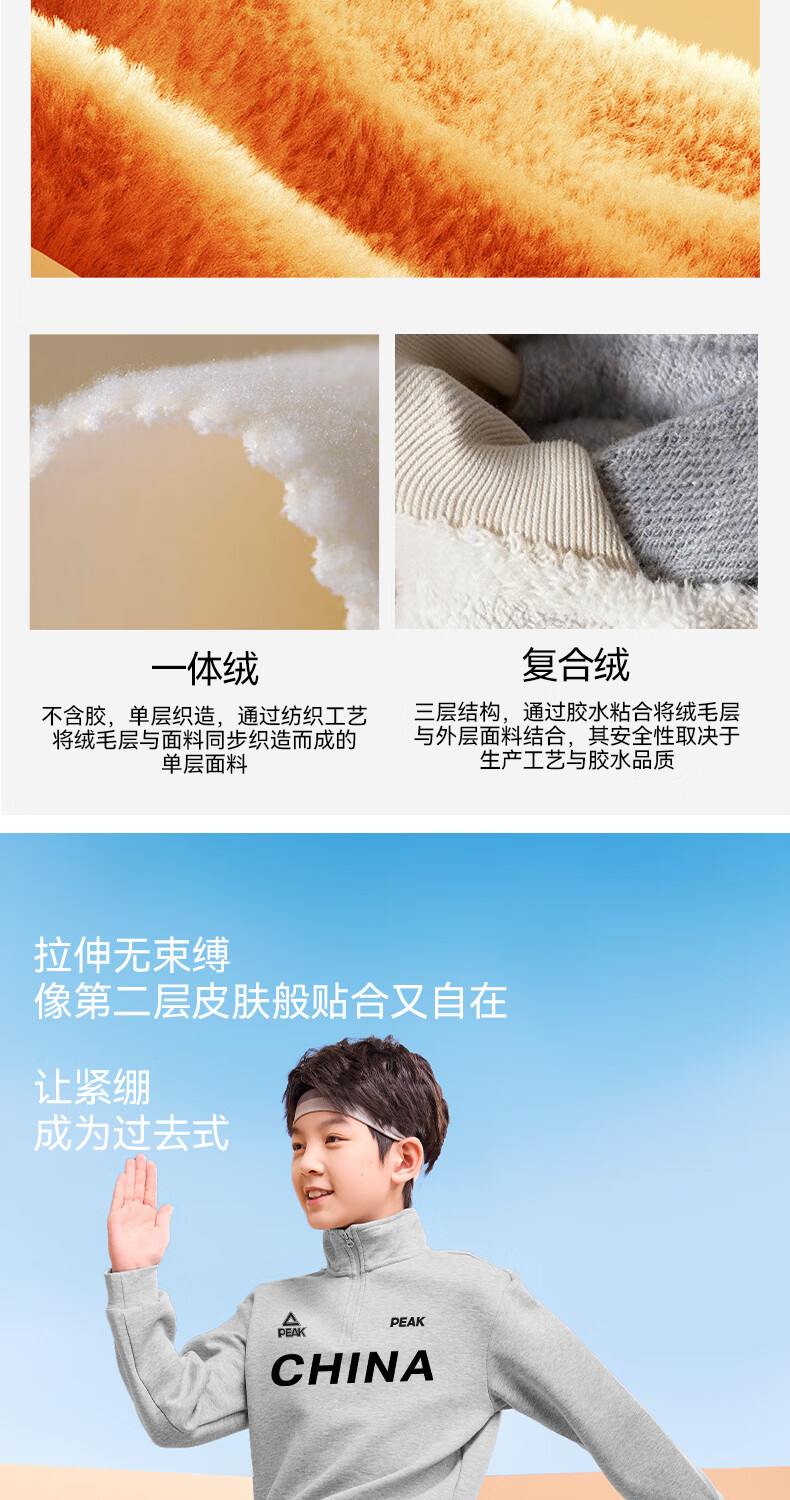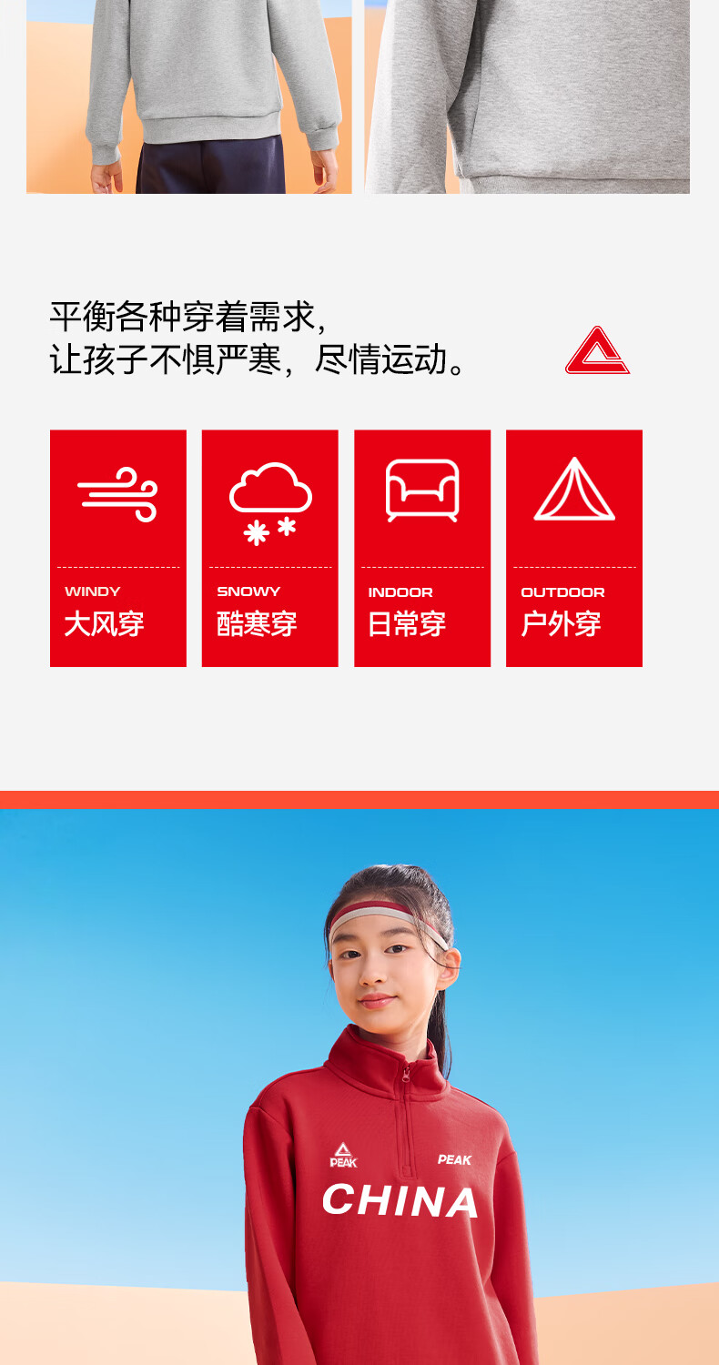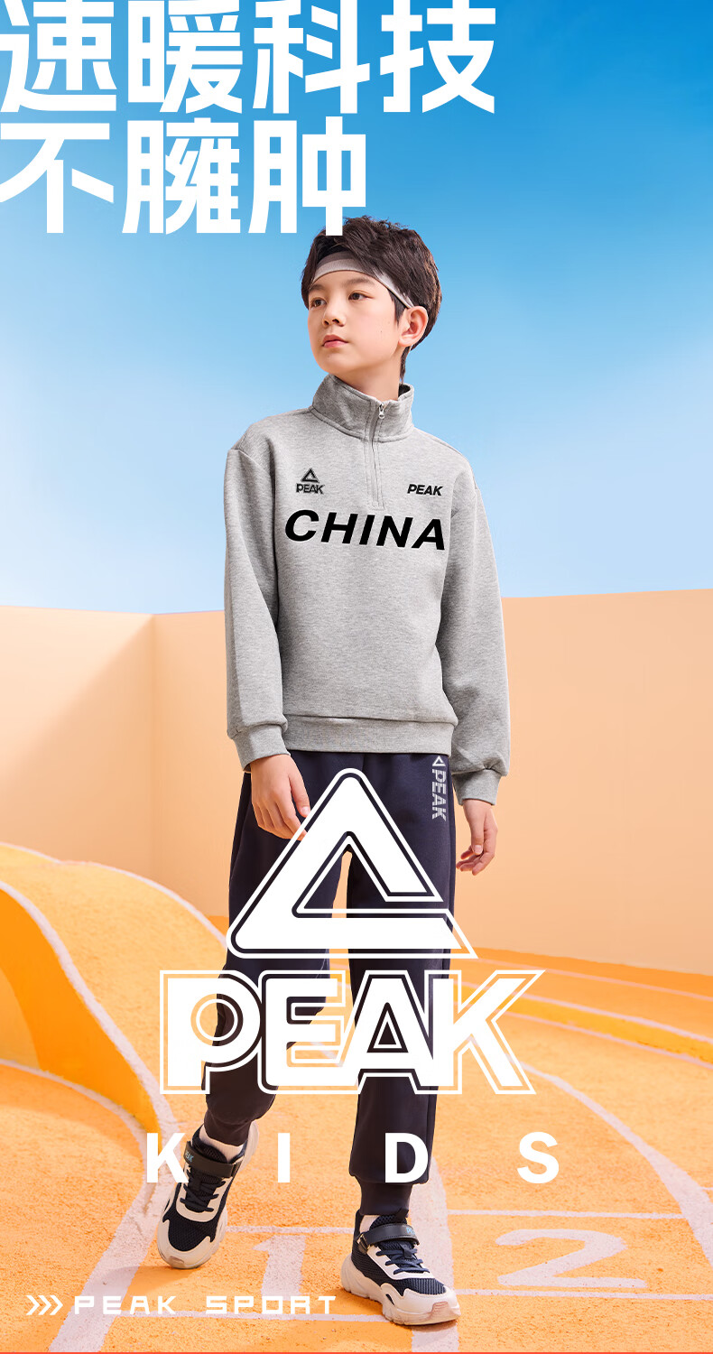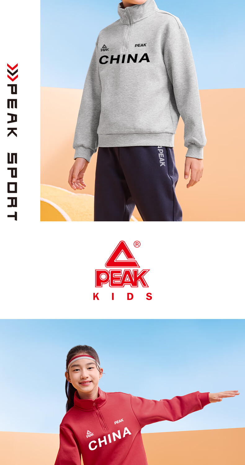 Peak children's clothing boys' sweatshirts 2025 new children's one-piece velvet half-cardigan top autumn and winter teenagers plus velvet long-sleeved trendy