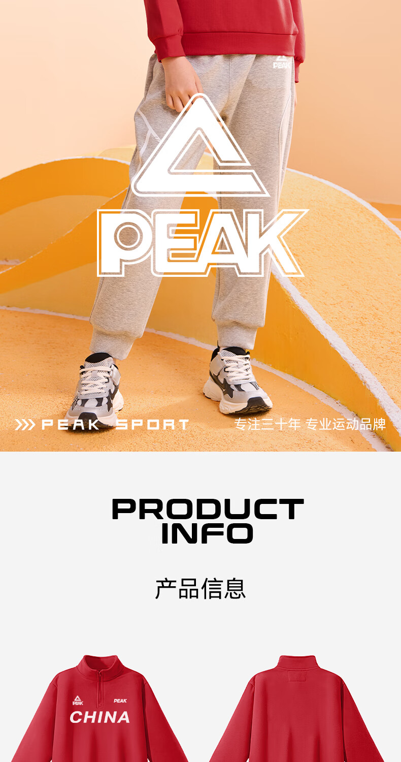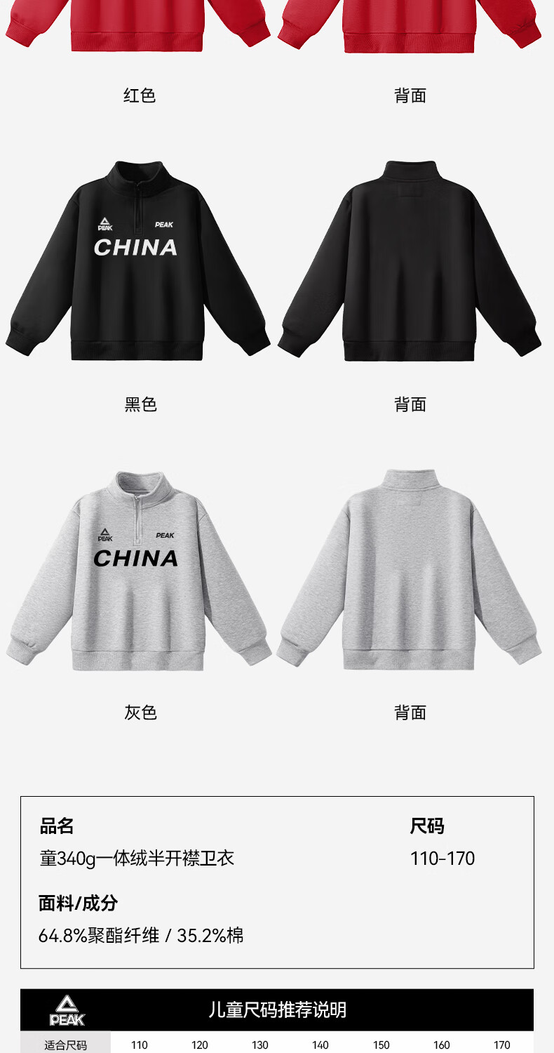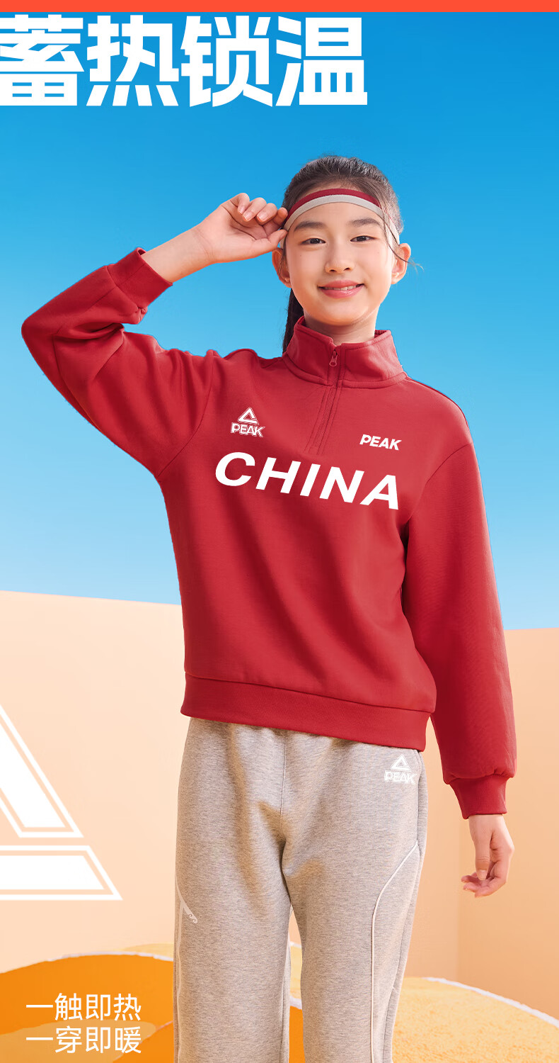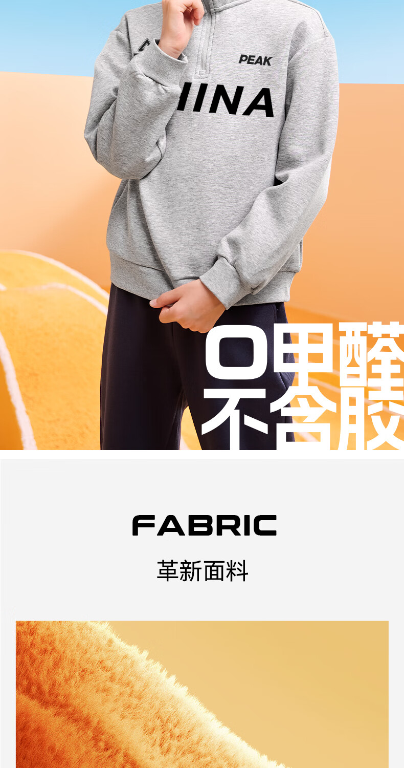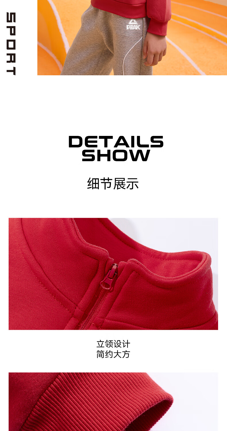 Peak children's clothing boys' sweatshirts 2025 new children's one-piece velvet half-cardigan top autumn and winter teenagers plus velvet long-sleeved trendy
