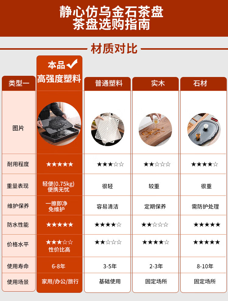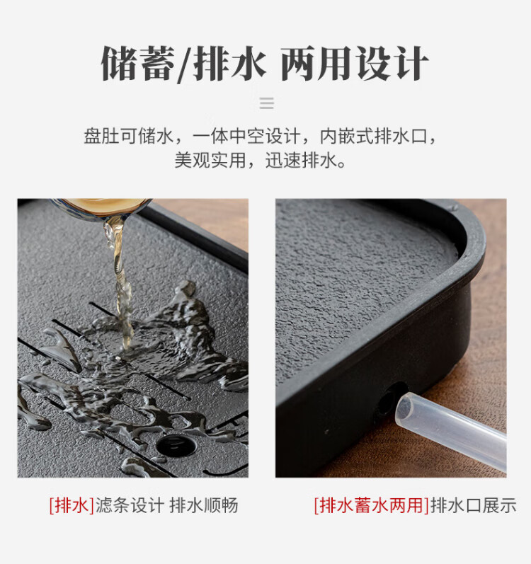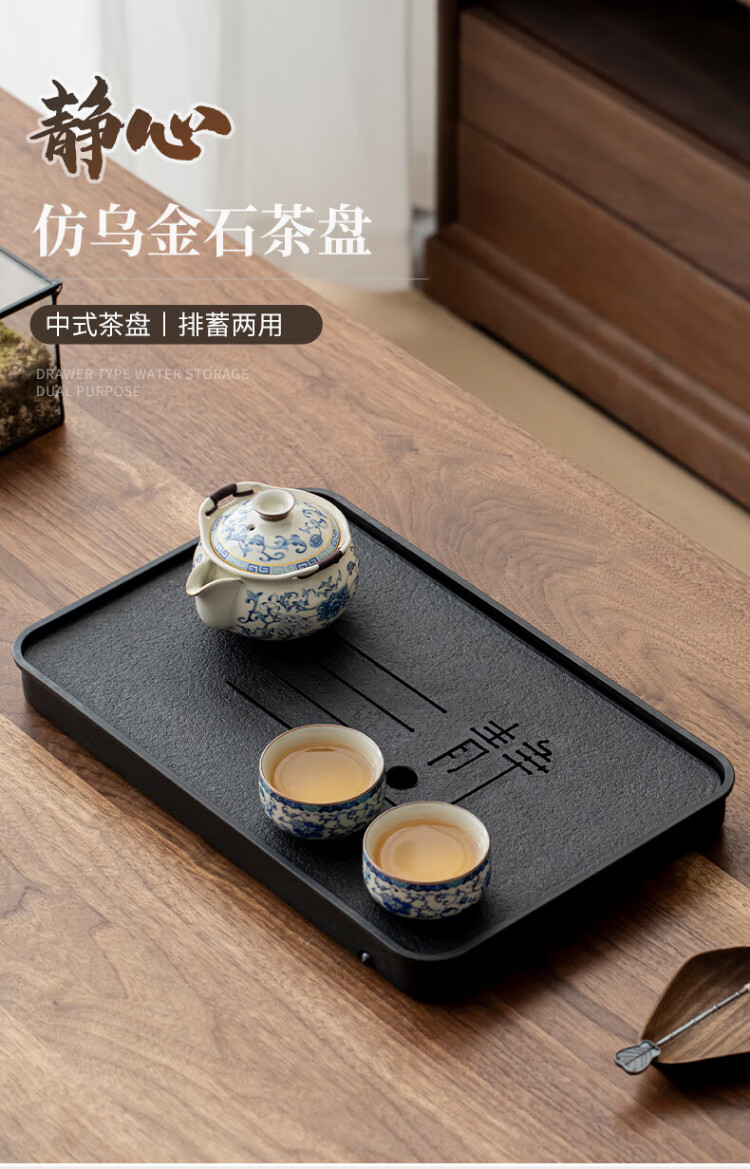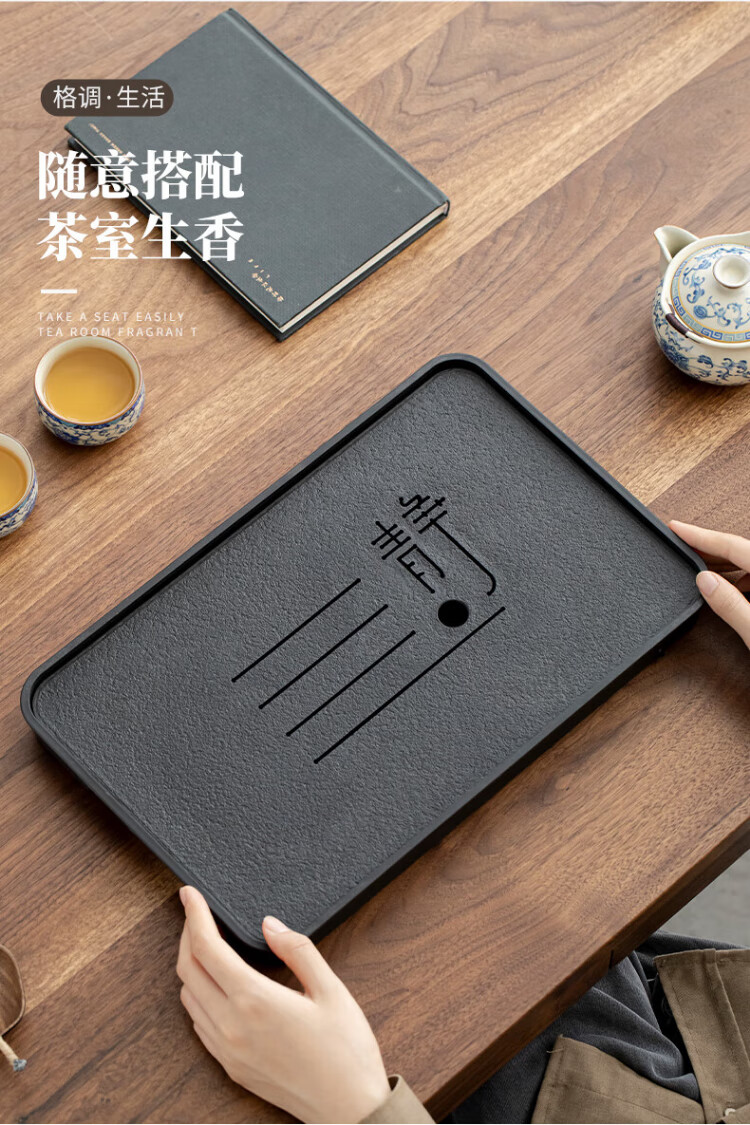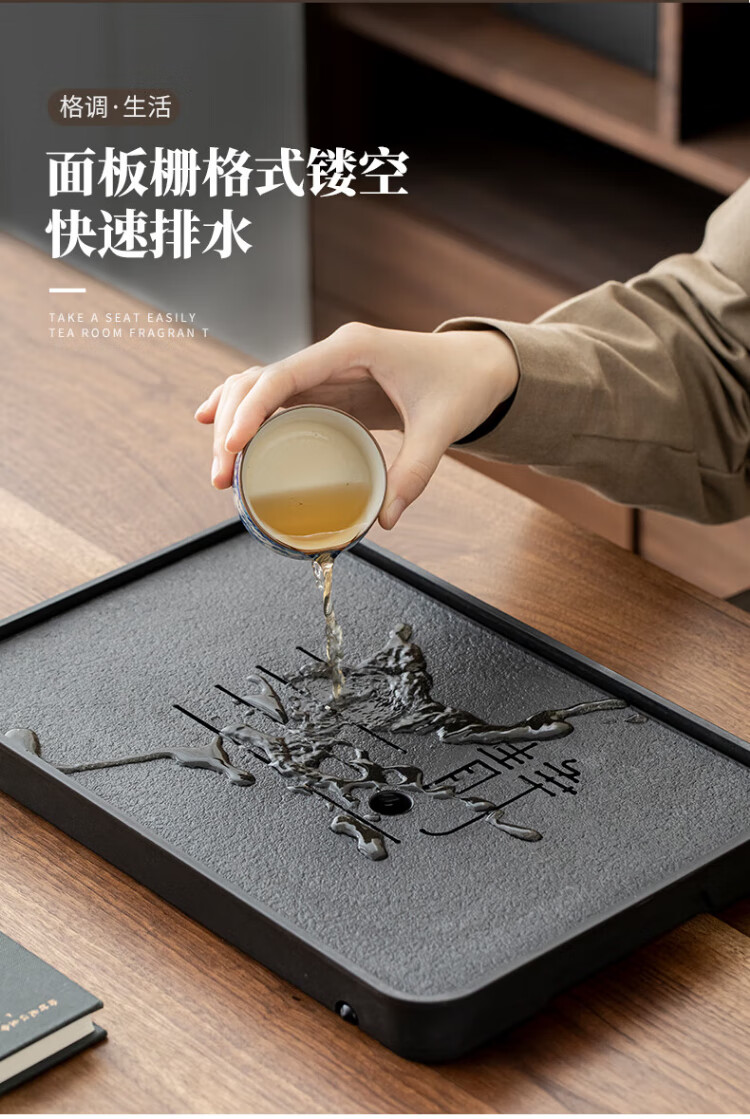 Jingqi丨Jingdong limited real naked price tea tray imitation black stone with drainage integrated tea set housewarming gift