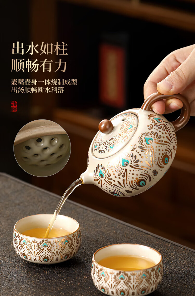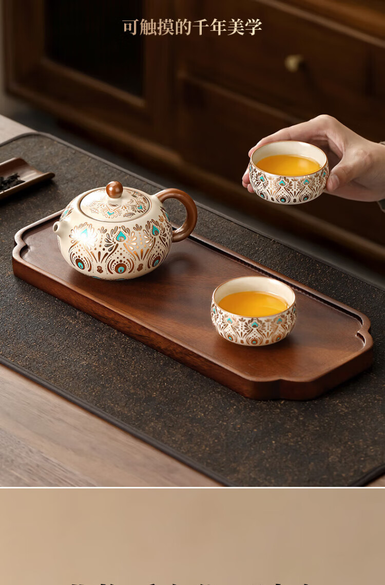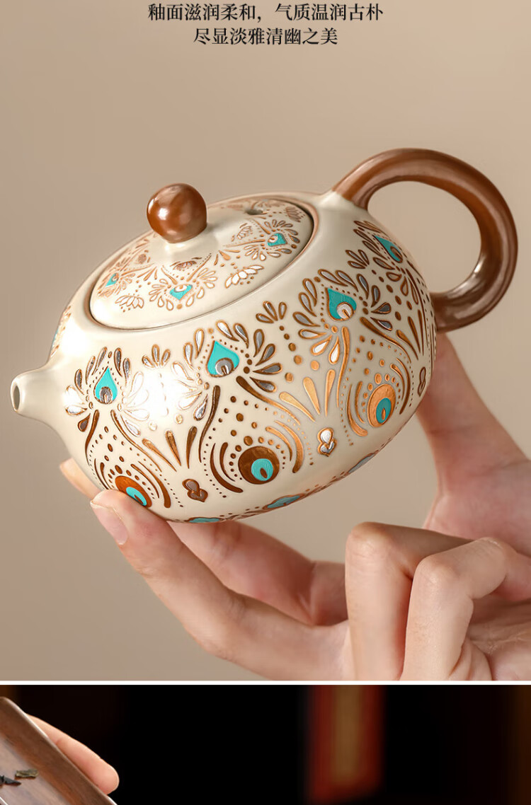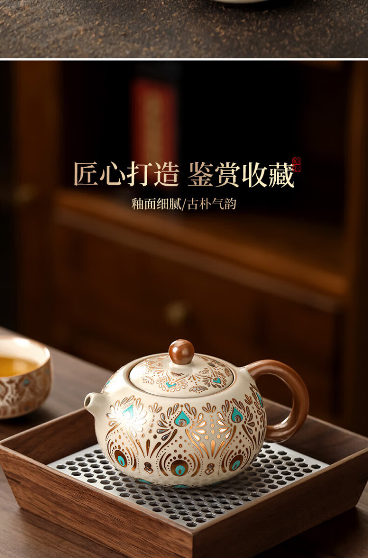 Buchuo Ru Kiln Teapot Tea Household High-end Birthday Gift Gift Cultural and Creative Dunhuang Fengling Xishi Pot One Pot Two Cups
