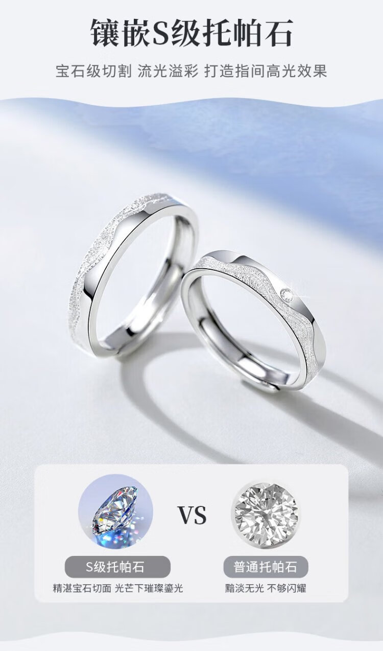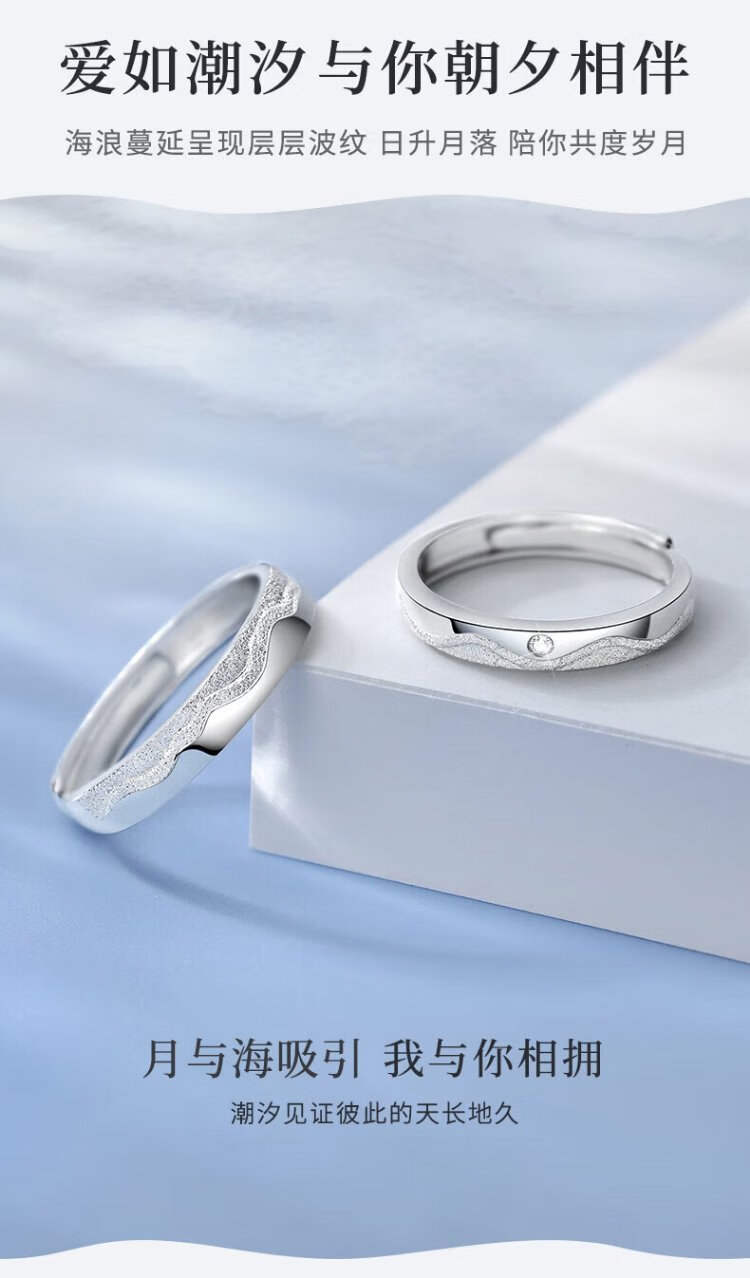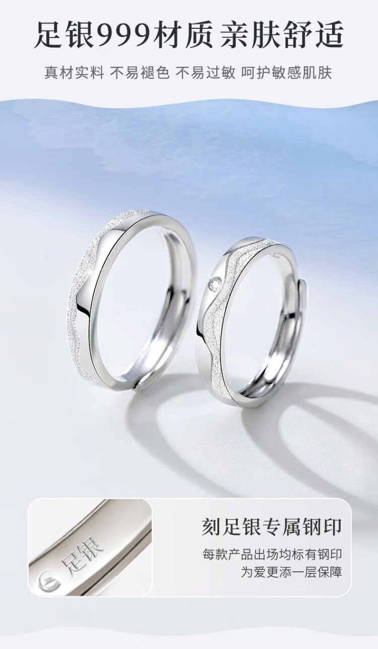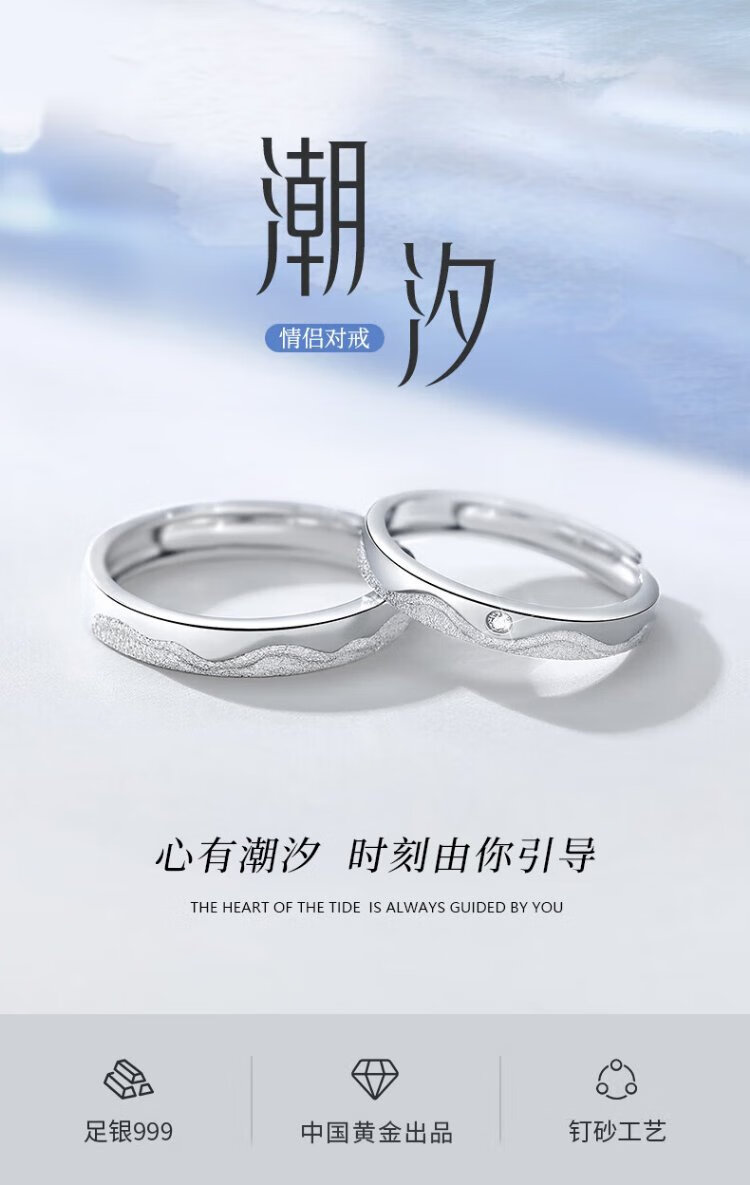 Chinese gold couple ring pair ring tide 999 pure silver girls men's ring women's ring birthday gift for girlfriend girlfriend wife