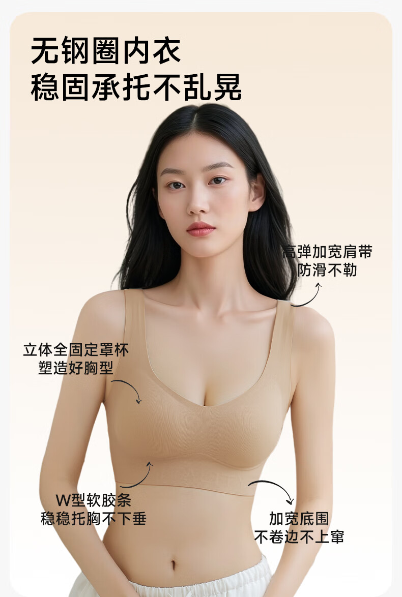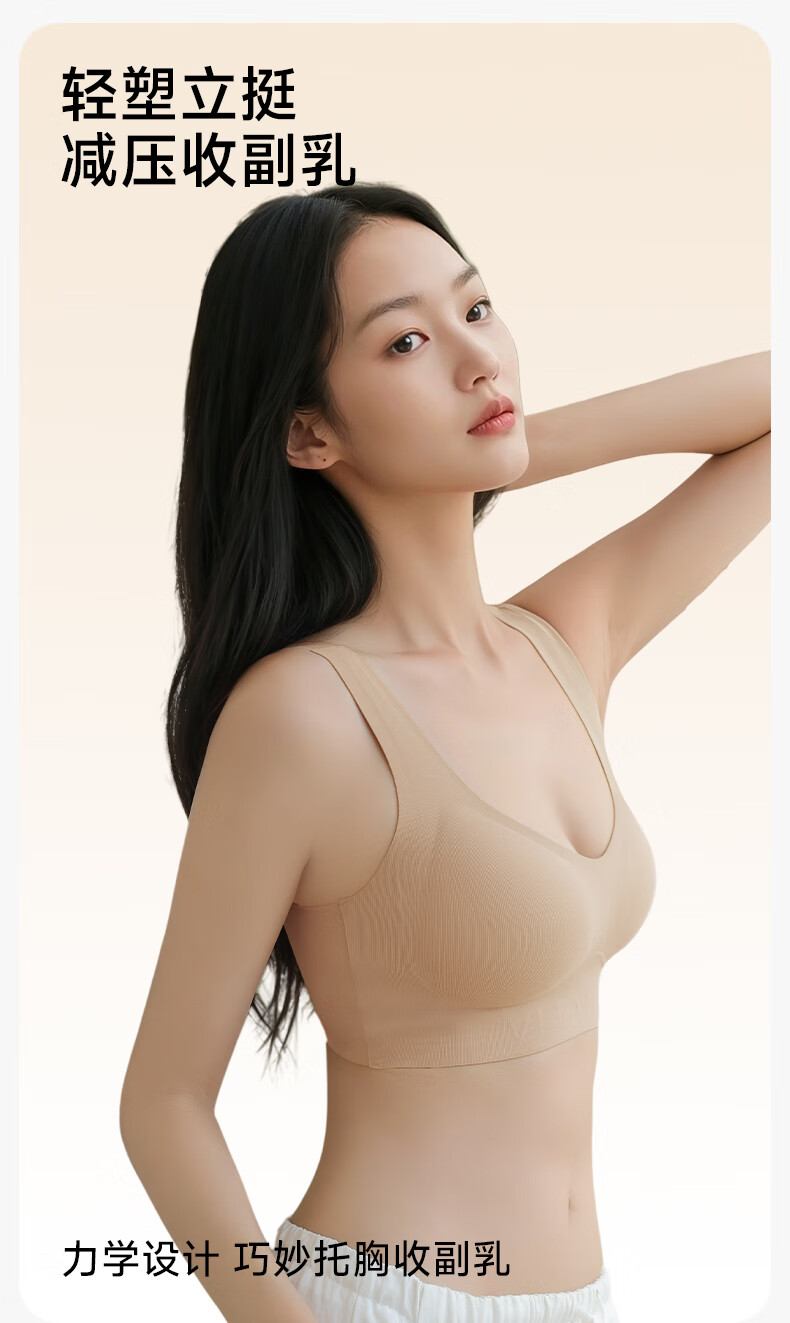 草本初色内衣女文胸罩无痕背心式小胸显大聚拢上托新款舒适无钢圈美背一体