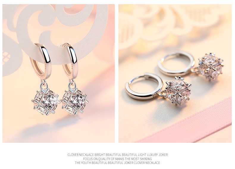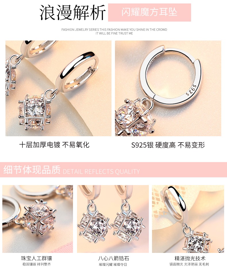 Saint-Jacques 925 Silver Stud Earrings for Women Fashion Earrings Korean Style Earrings Jewelry Women's Earrings Birthday Gifts for Girlfriend Sparkling Rubik's Cube Earrings