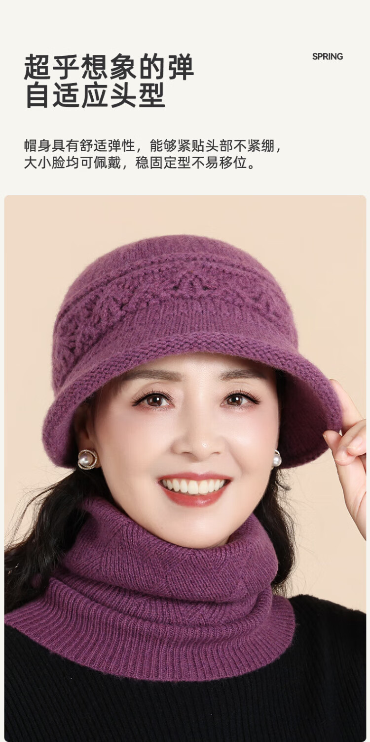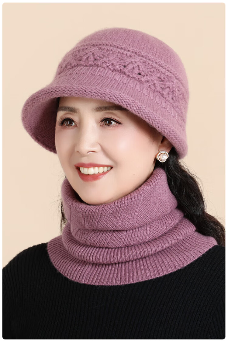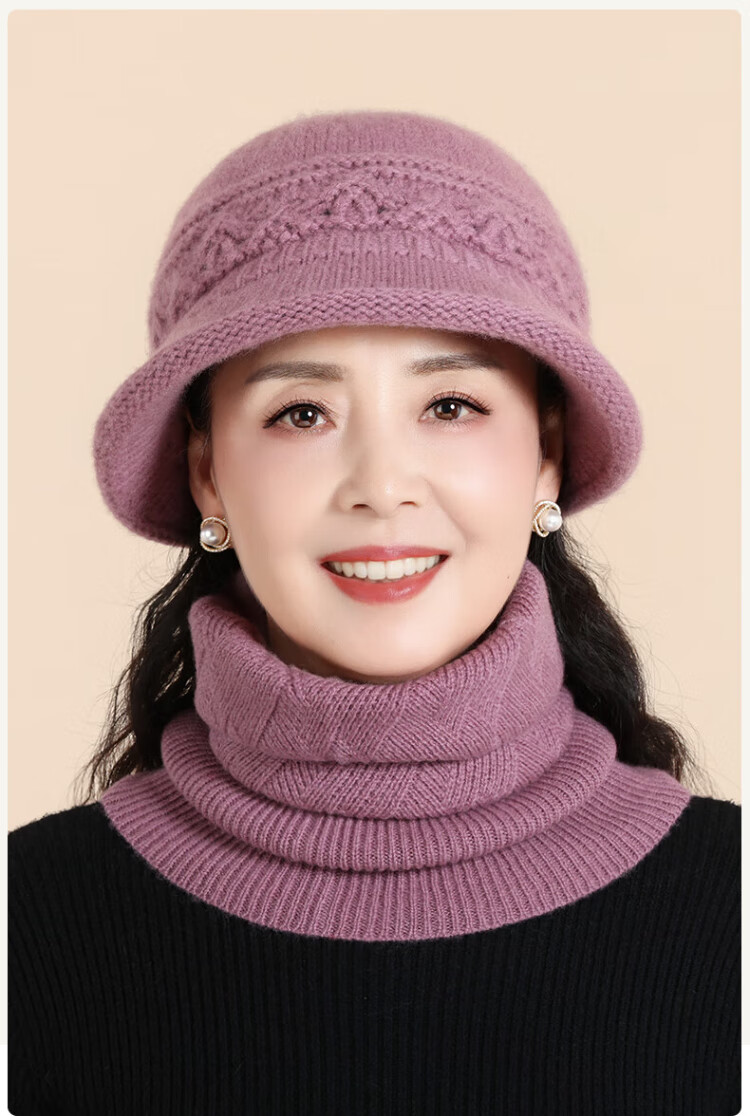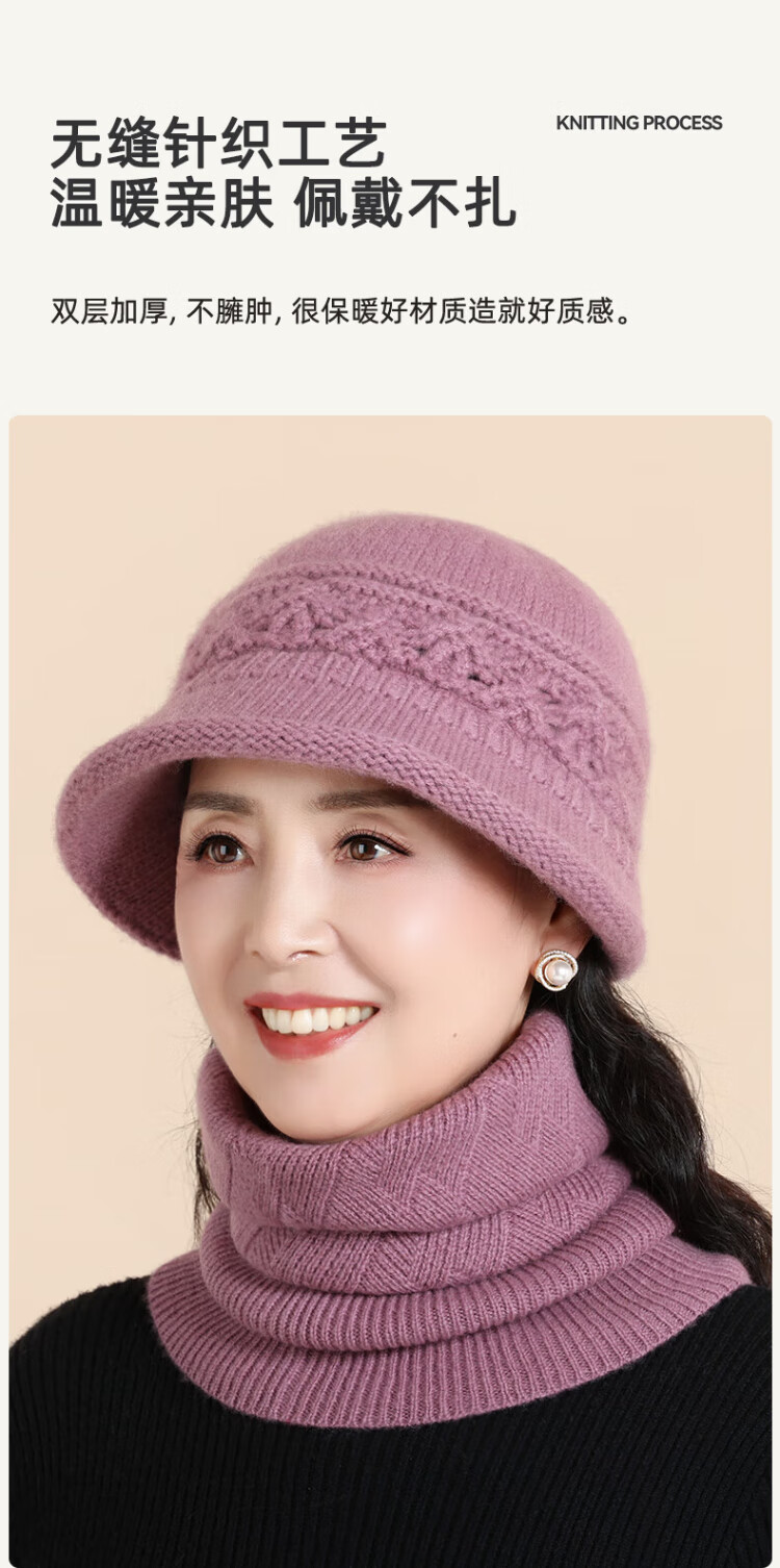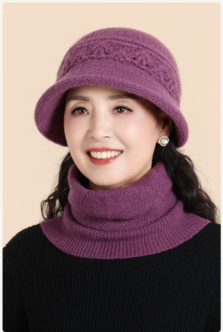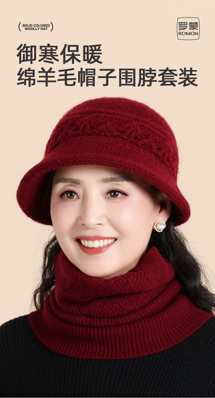 Romon 100% wool woolen hat and scarf suit for middle-aged and elderly women, autumn and winter warm knitted hat for the elderly, grandma and old lady