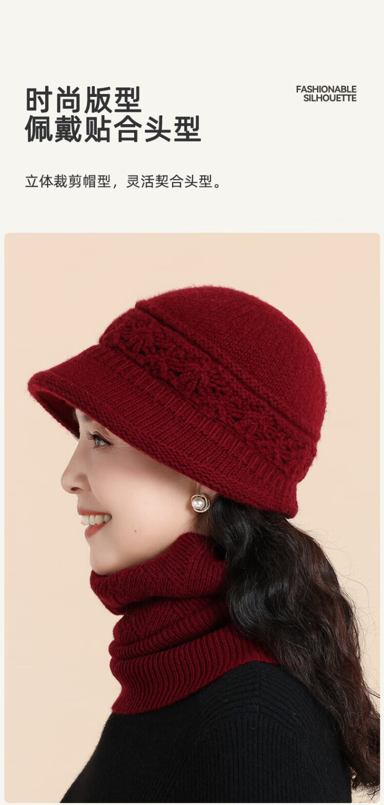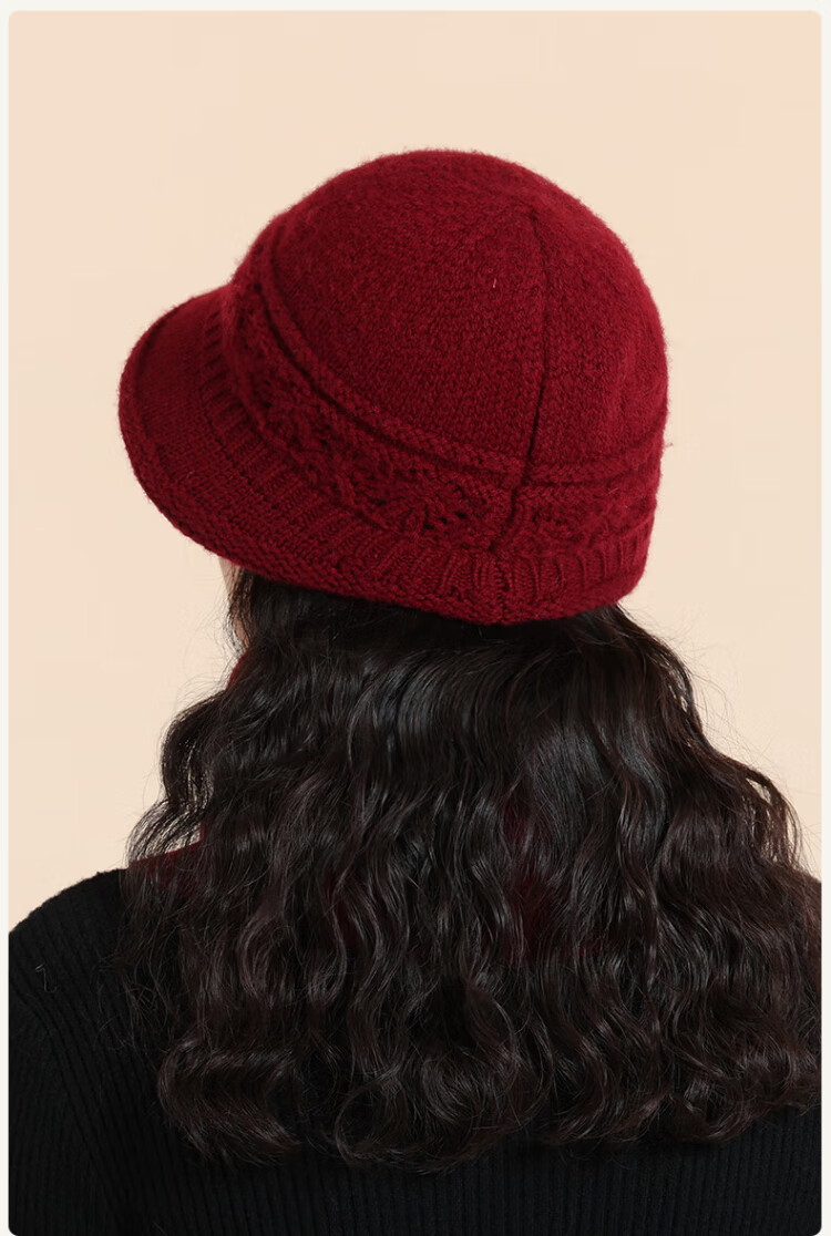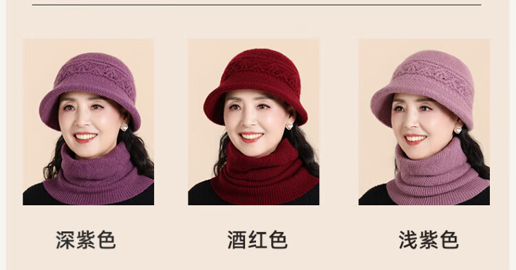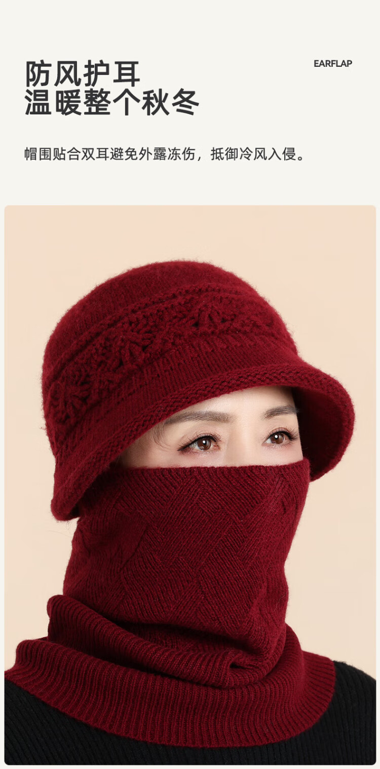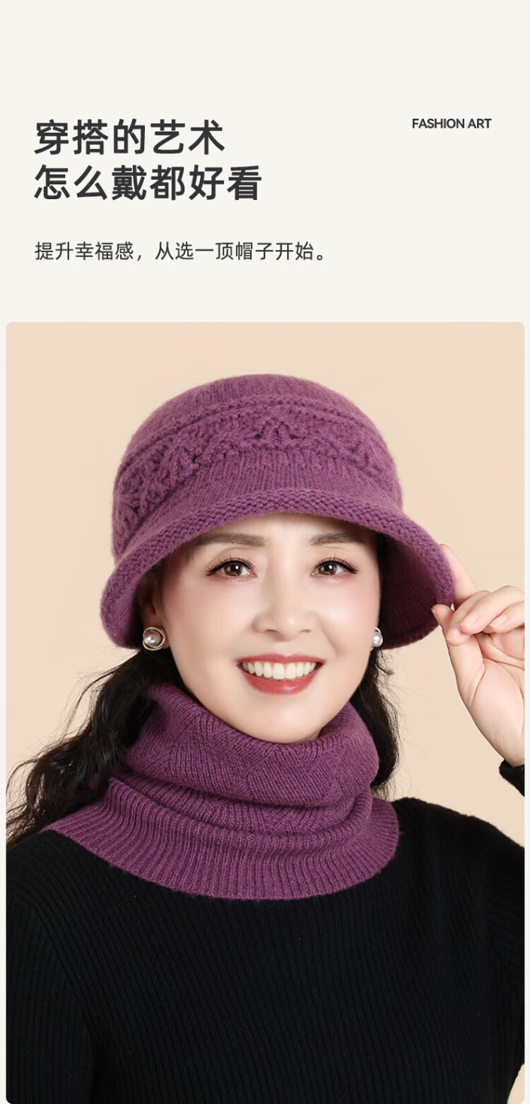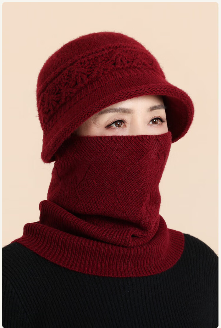 Romon 100% wool woolen hat and scarf suit for middle-aged and elderly women, autumn and winter warm knitted hat for the elderly, grandma and old lady