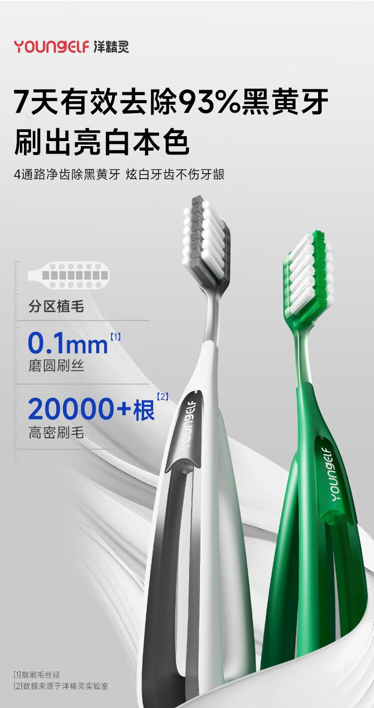 Yang Elf long and wide head toothbrush double speed net remove yellowing and blackening deep cleaning high-end men's special stain removal toothbrush double pack