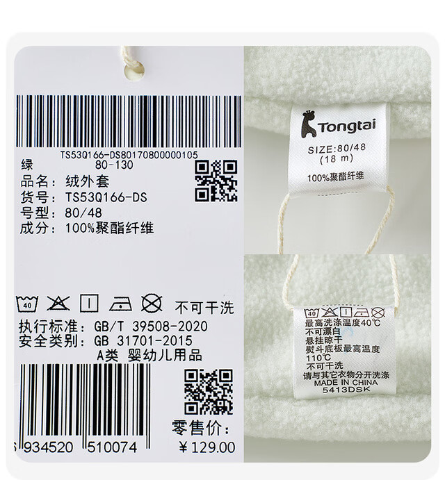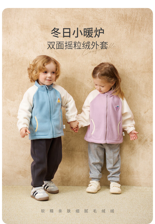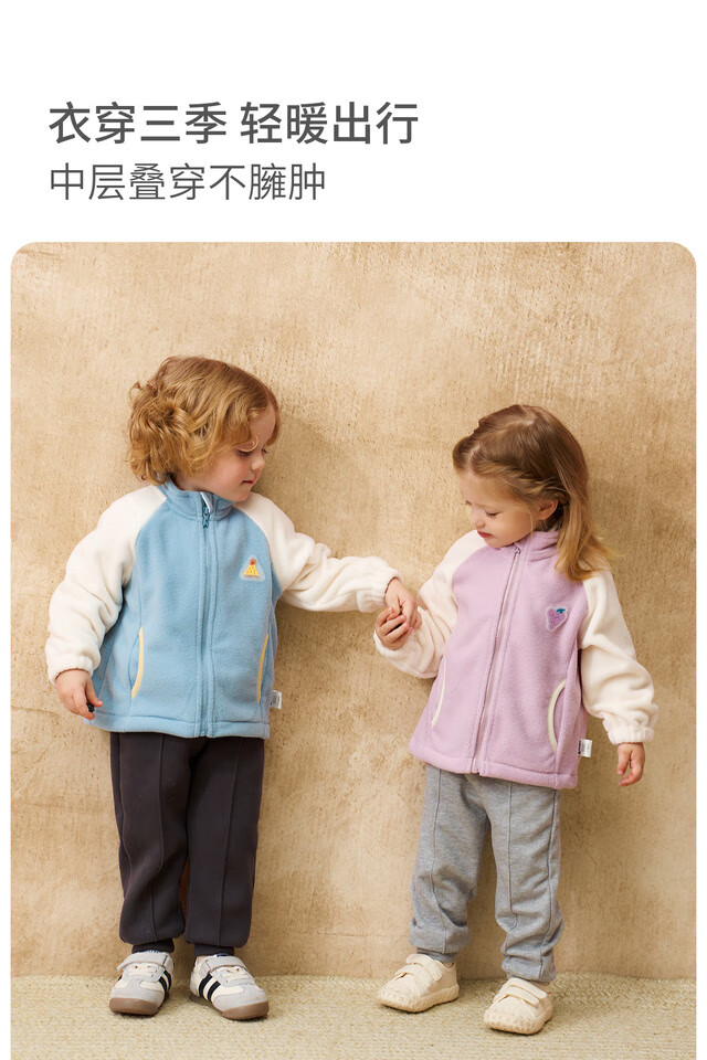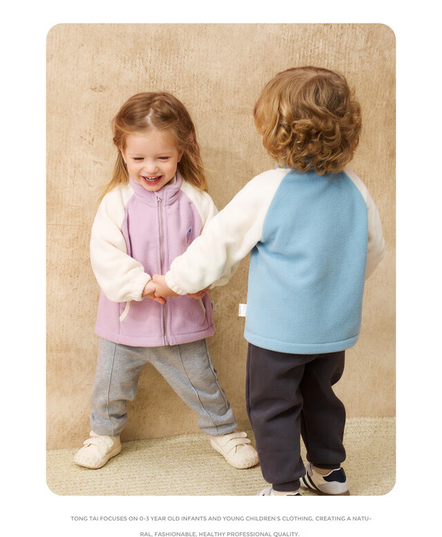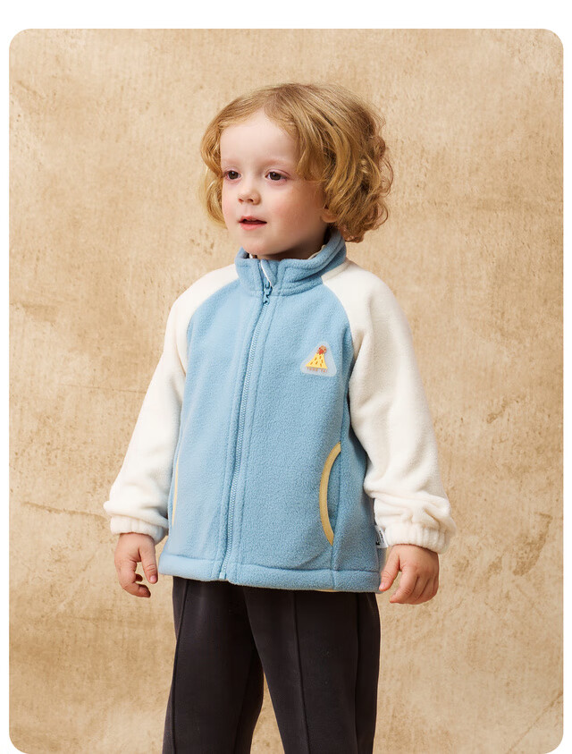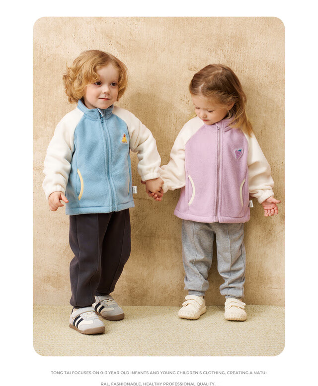 Tongtai (TONGTAI) baby coat spring and autumn baby clothes children's polar fleece top children's stand-up collar cardigan blue 90cm