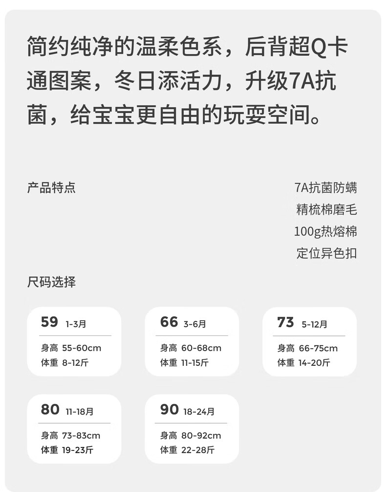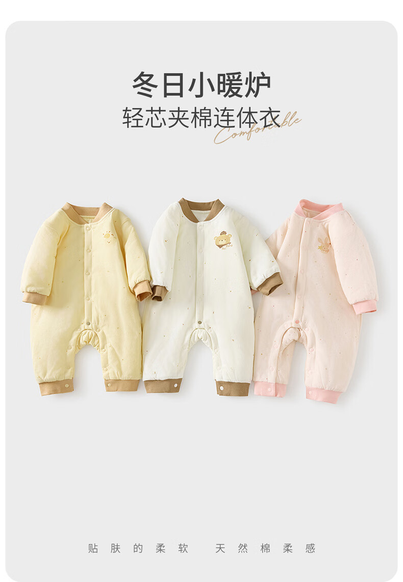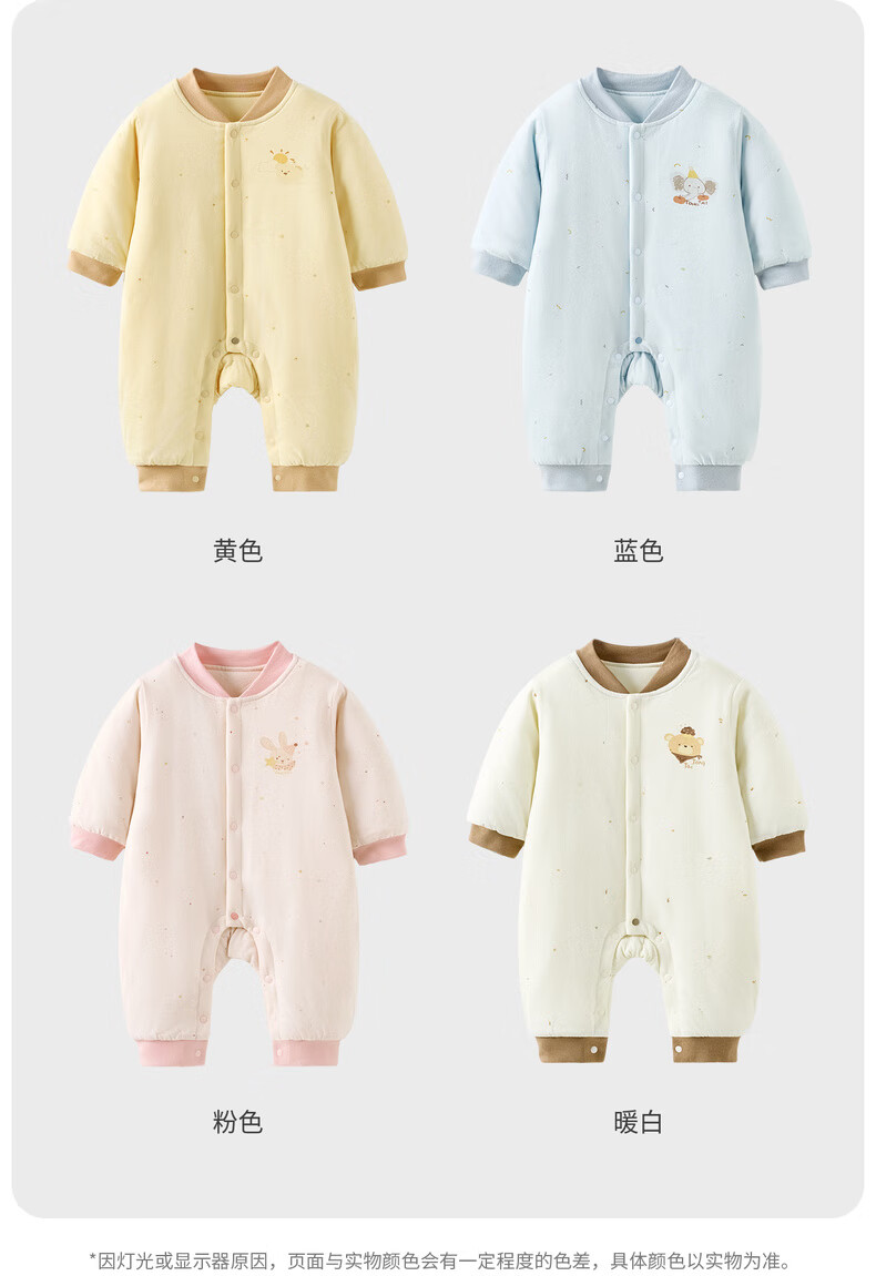 Tongtai (TONGTAI) baby jumpsuit autumn and winter pure cotton quilted baby clothes newborn baby clothes thin cotton romper warm white 90cm
