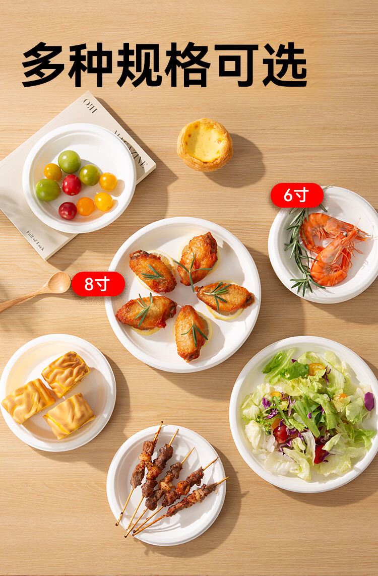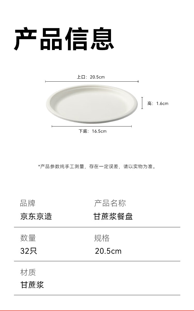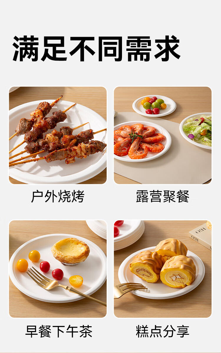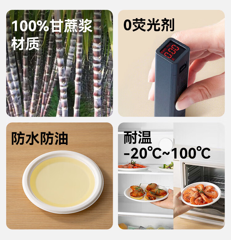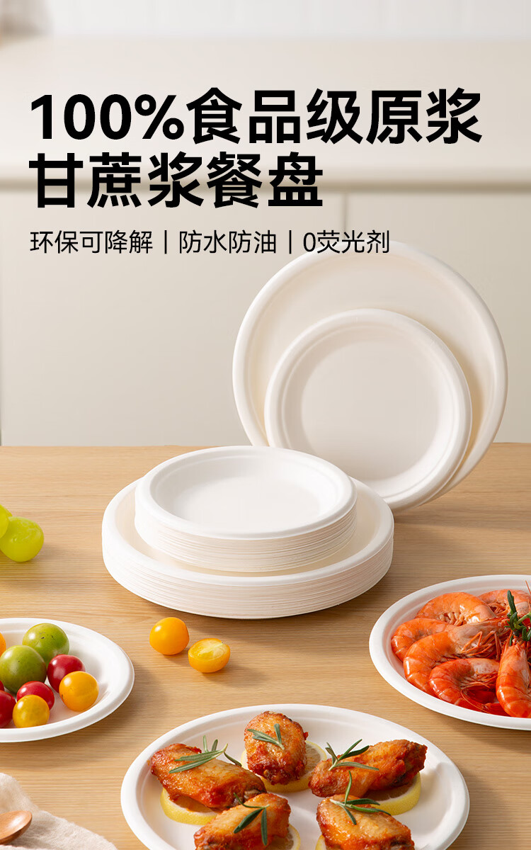 Made in Tokyo, disposable plates and tableware, food-grade barbecue camping sugar cane pulp dinner plates, 8 inches * 32 pieces