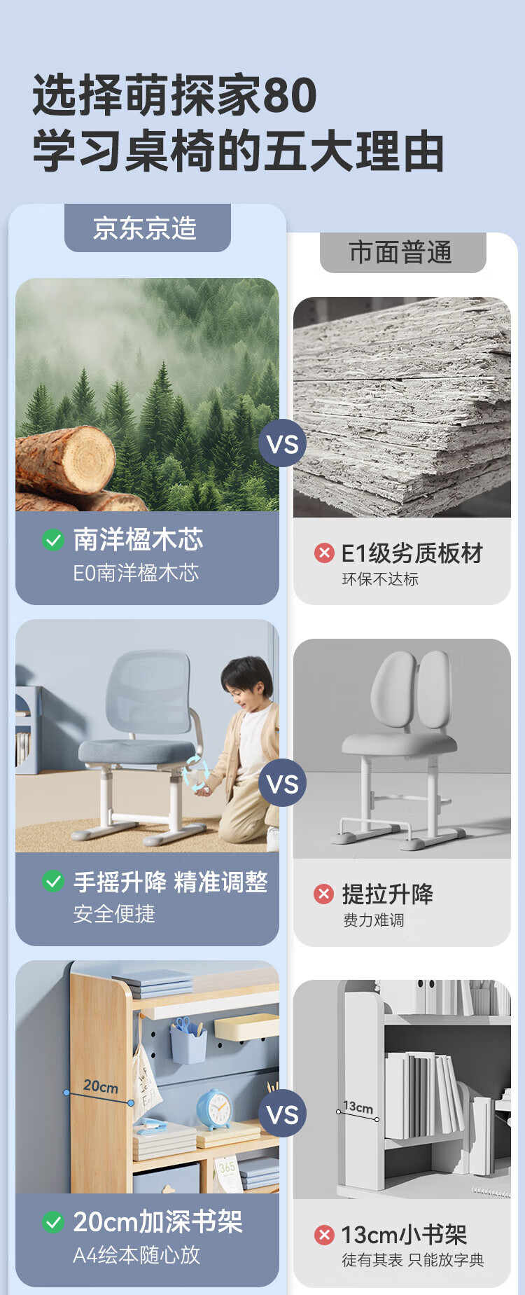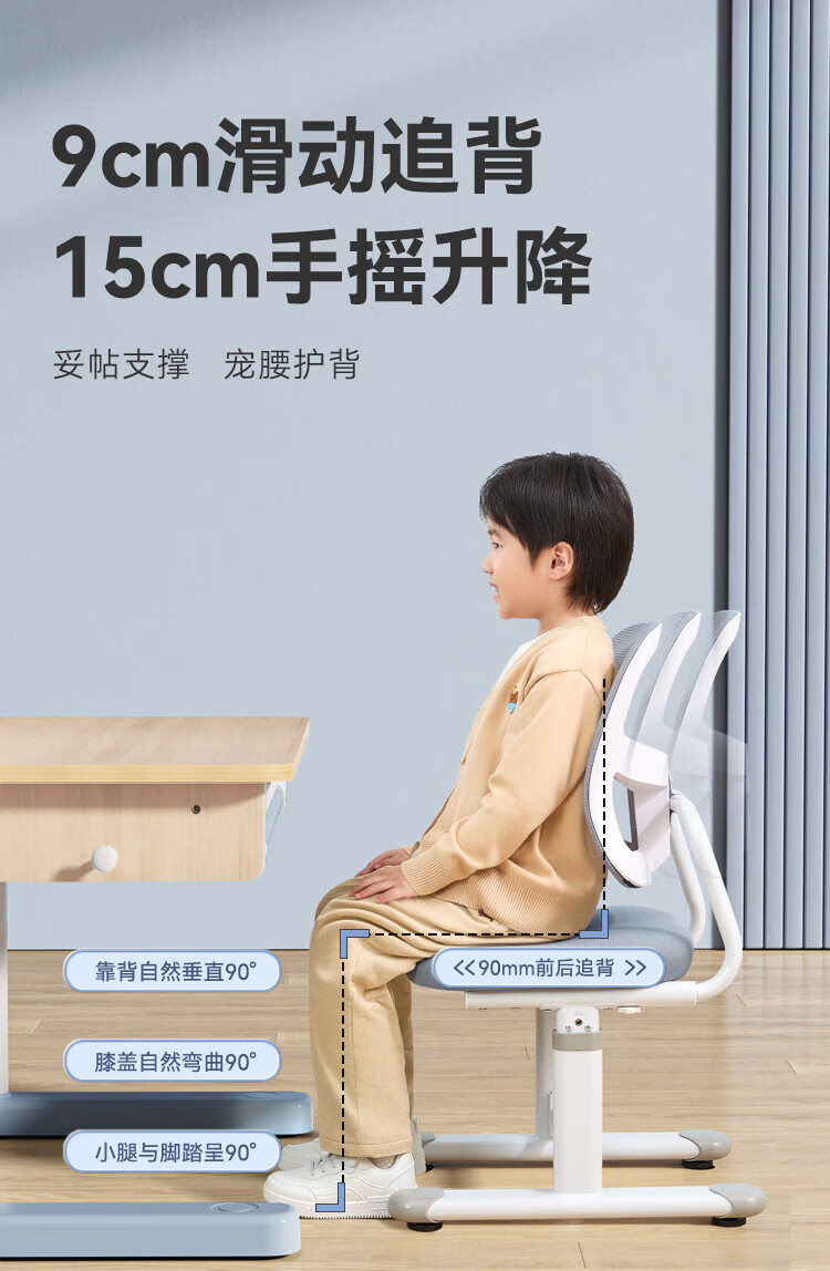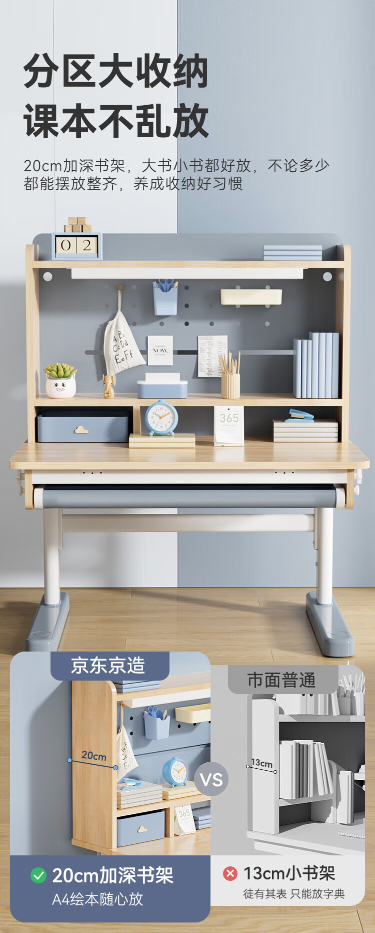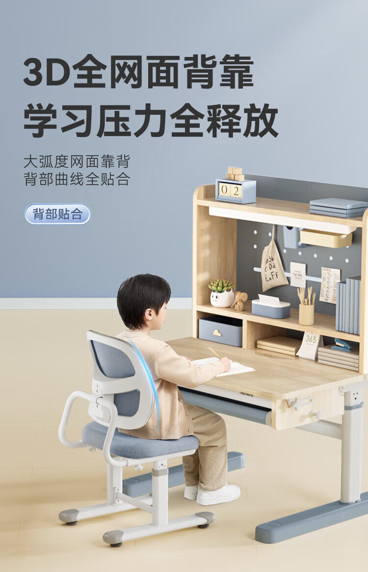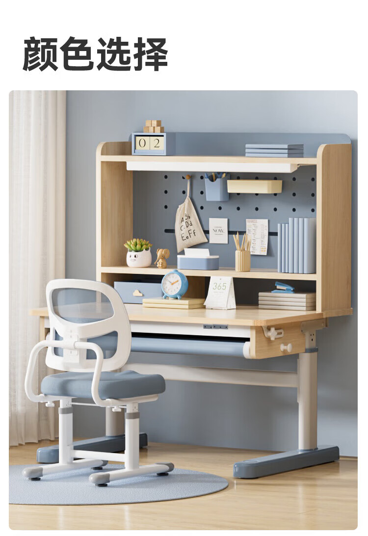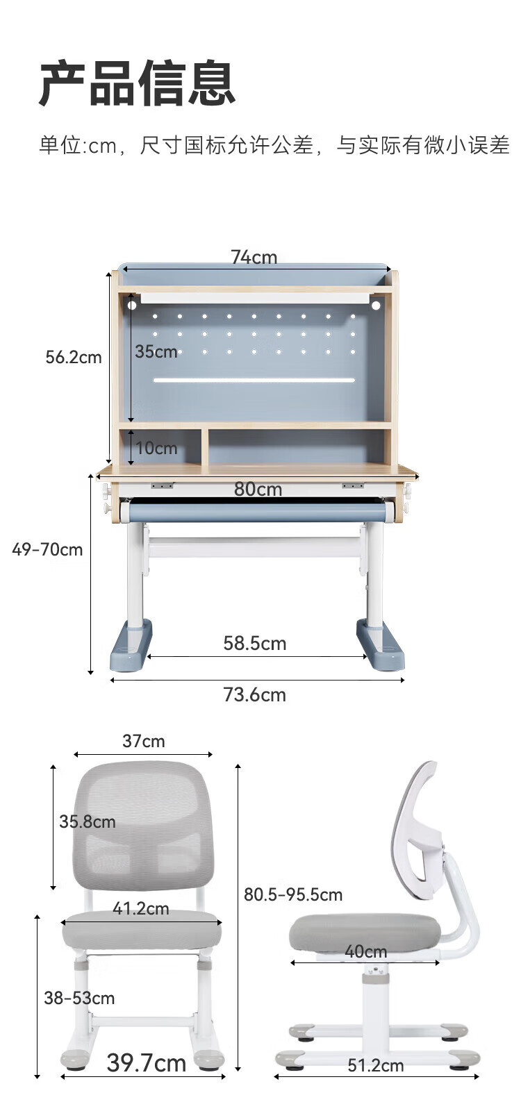 Jing Tokyo Made Cute Explorer Integrated Eye Protection Lamp Children's Study Table Desk and Chair Set Lifting Student Writing Desk and Chair 80cm Blue