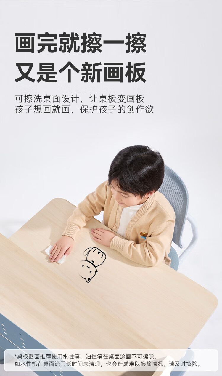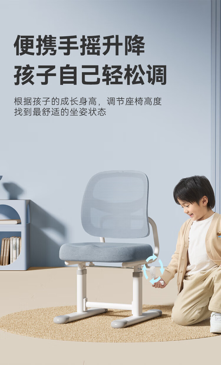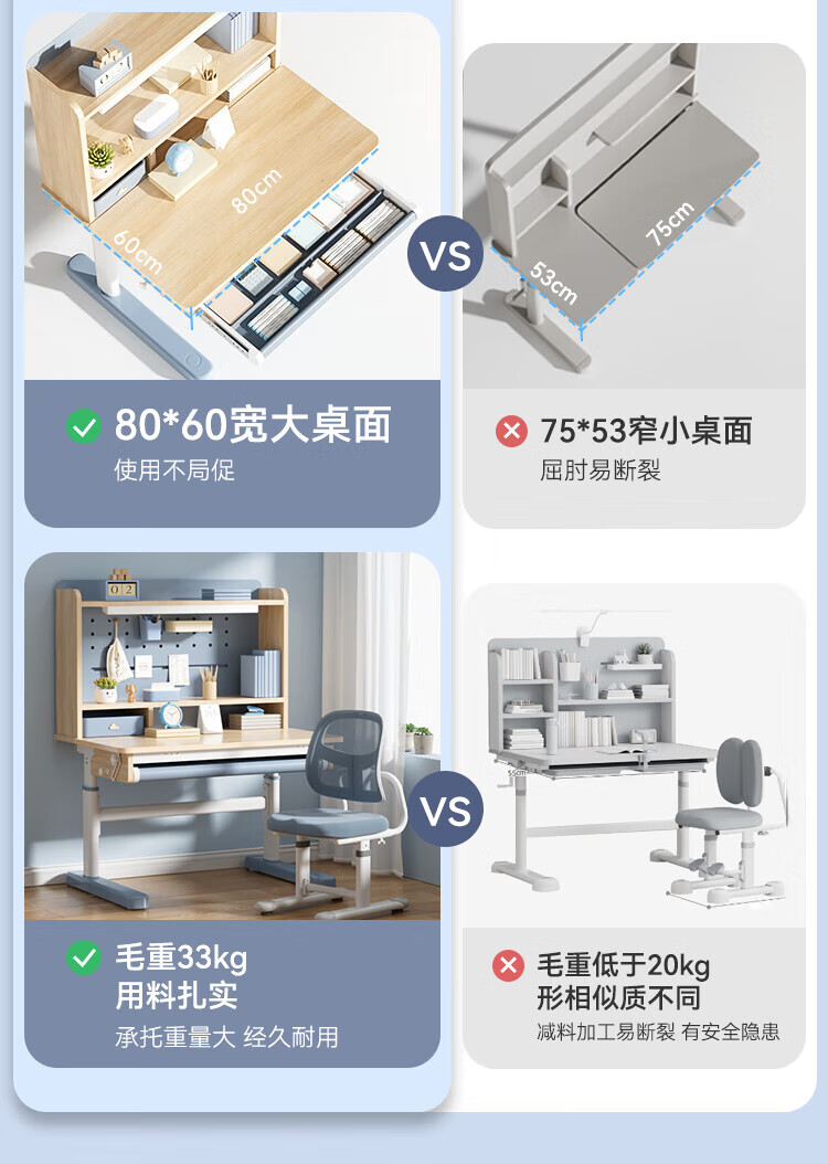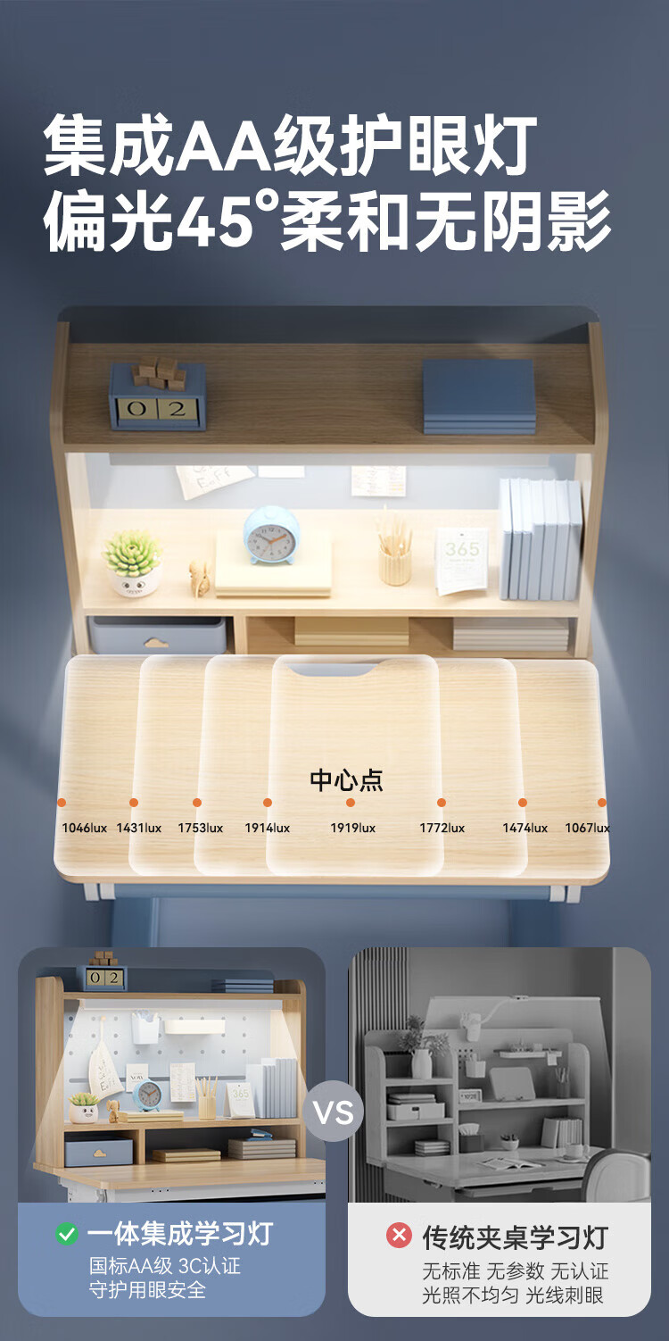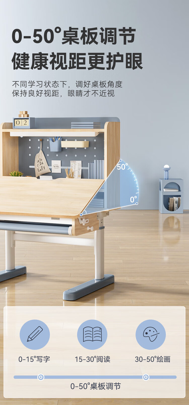 Jing Tokyo Made Cute Explorer Integrated Eye Protection Lamp Children's Study Table Desk and Chair Set Lifting Student Writing Desk and Chair 80cm Blue