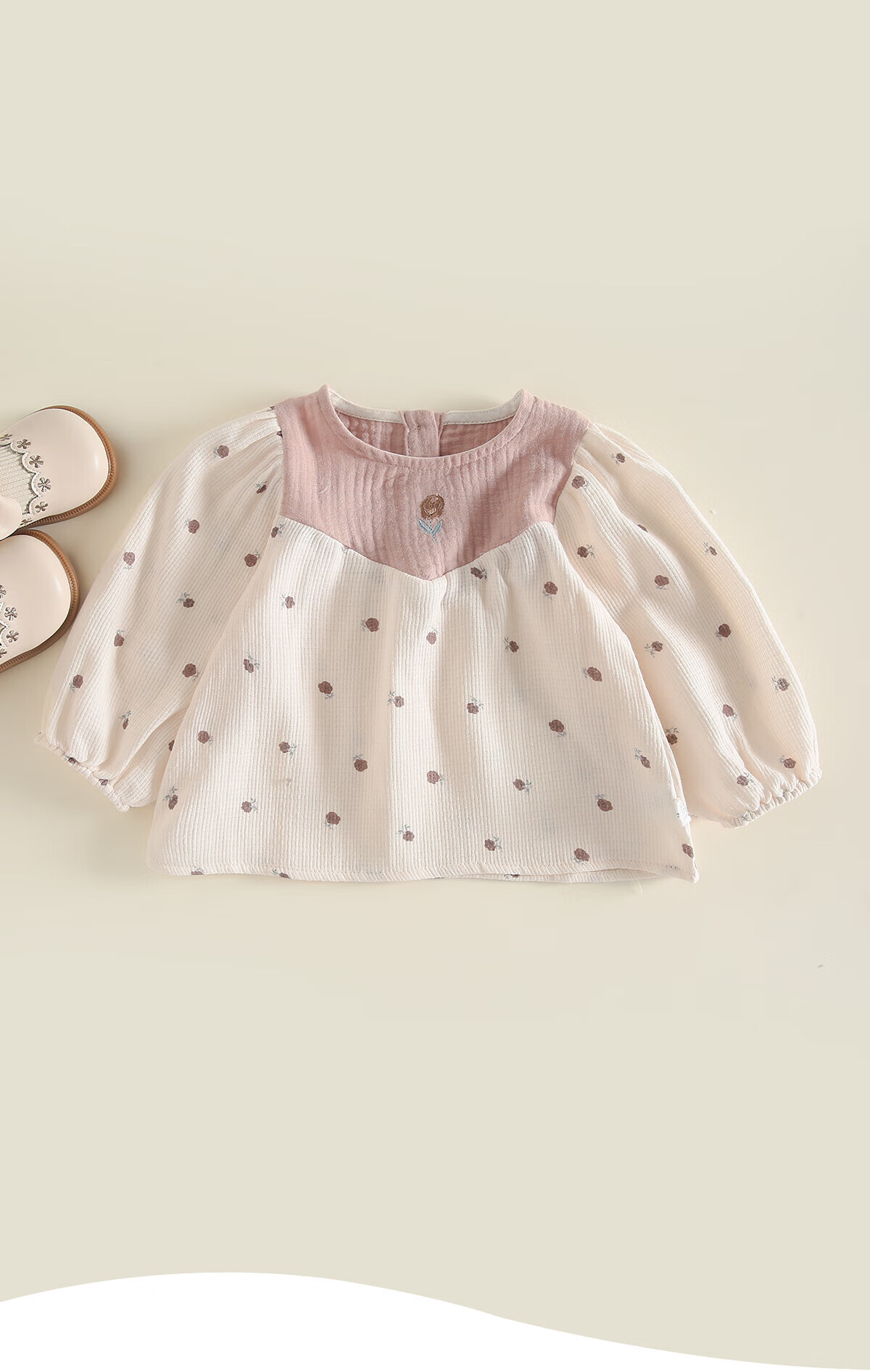 MS.PUALA Garden Adventure Children's Clothing Infant and Toddler Autumn Shirt Baby Girl Pure Cotton Color Block Pullover Shirt