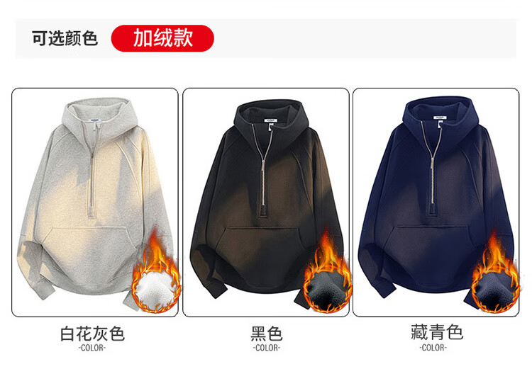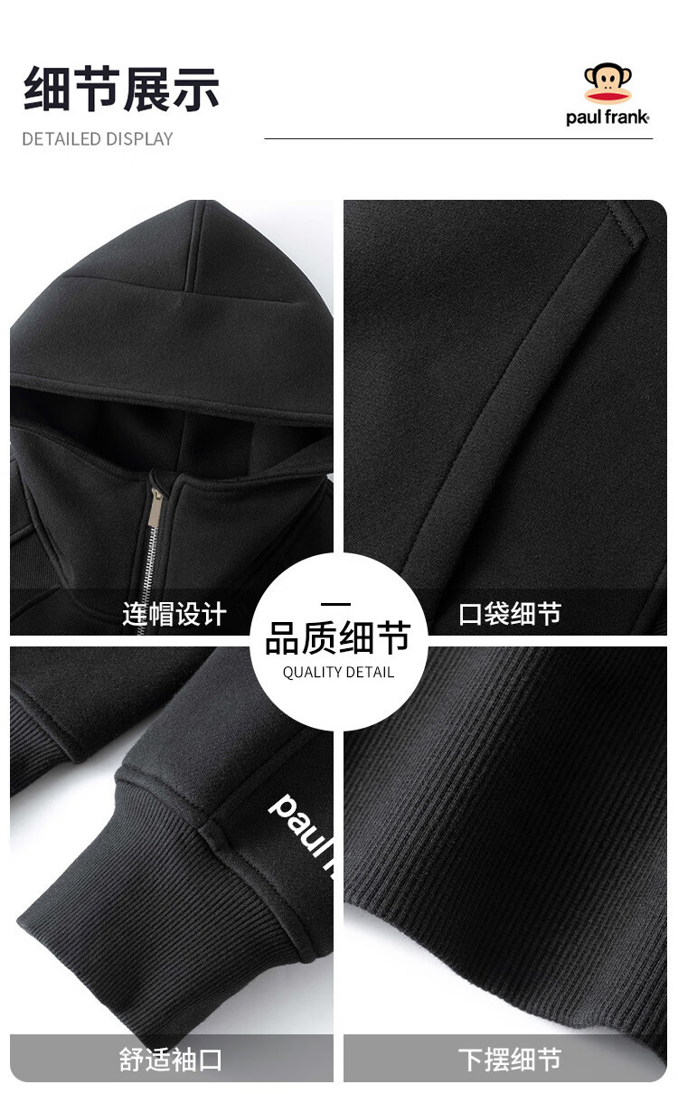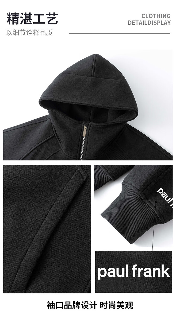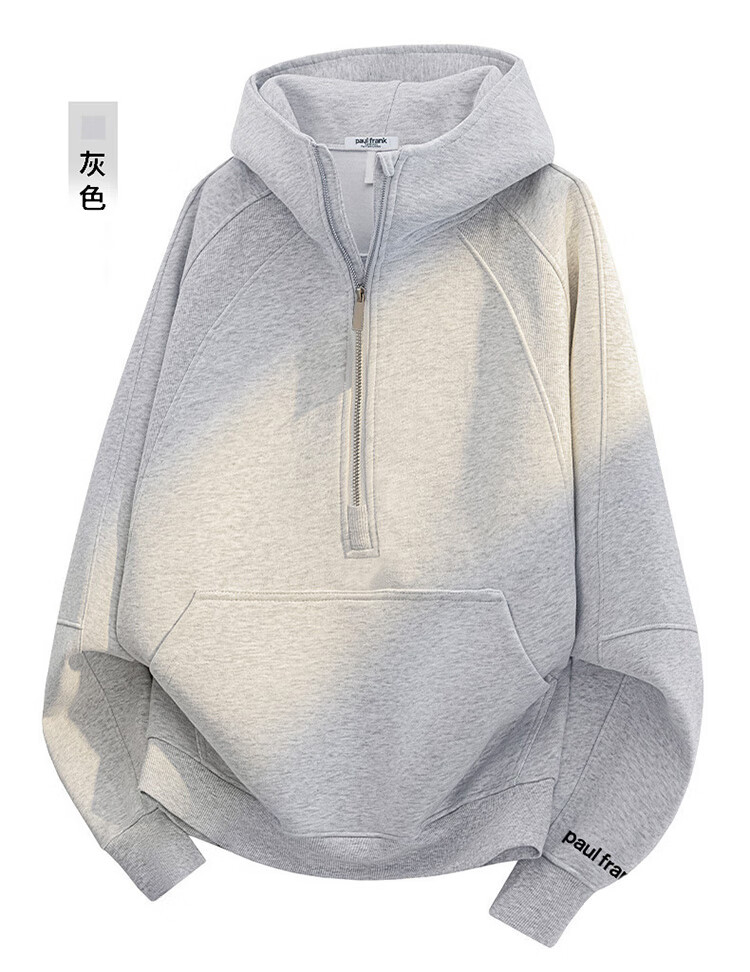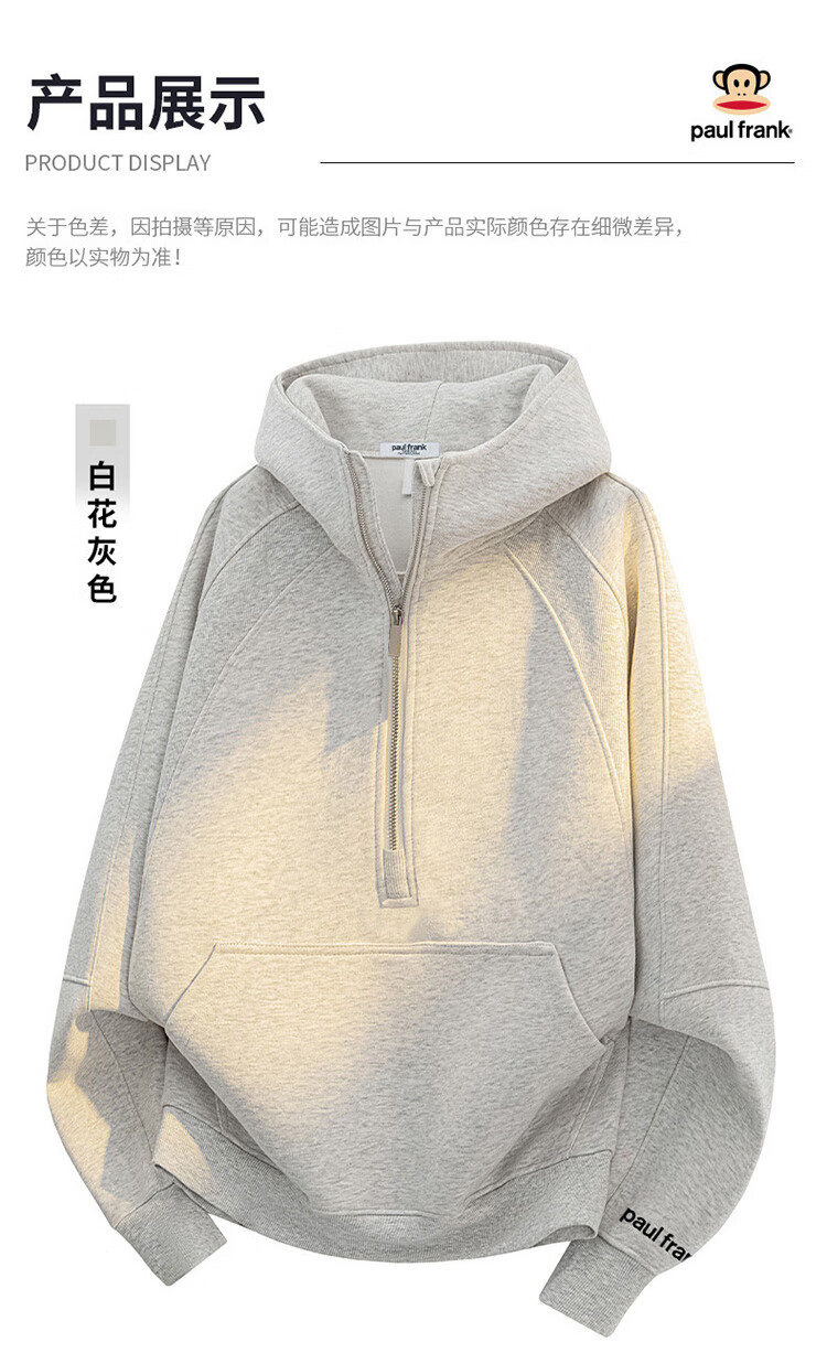 Paul Frank American hooded sweatshirt for men and women, autumn and winter loose half-zip top jacket for men, white gray 3XL