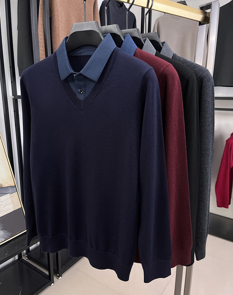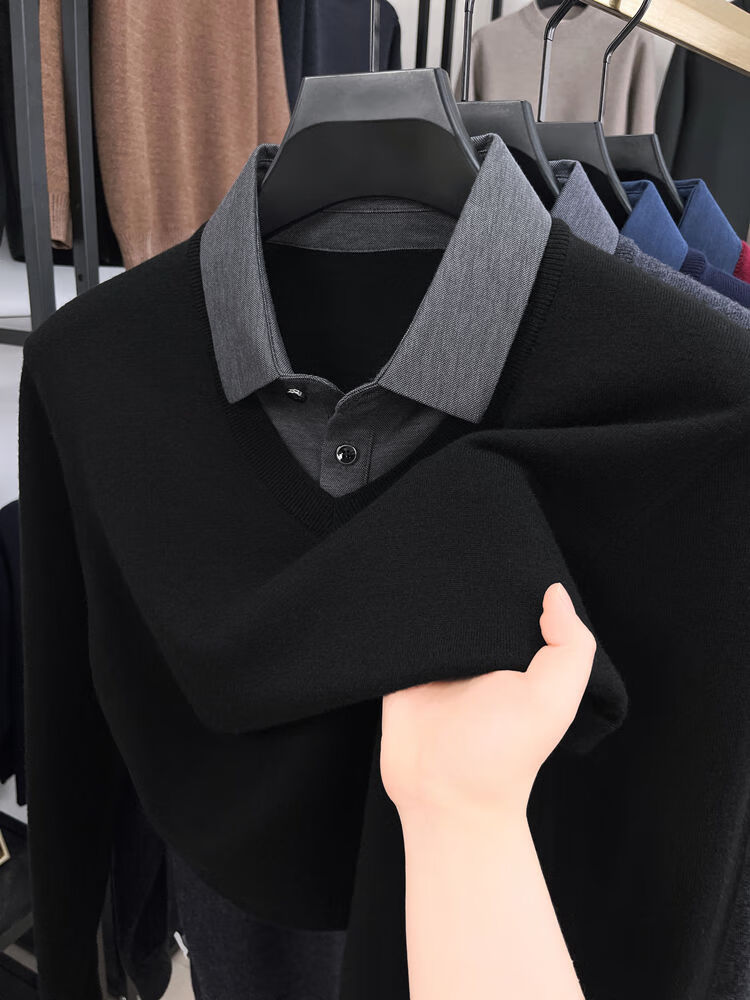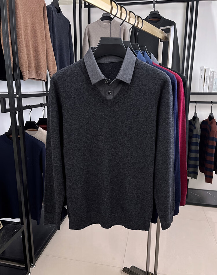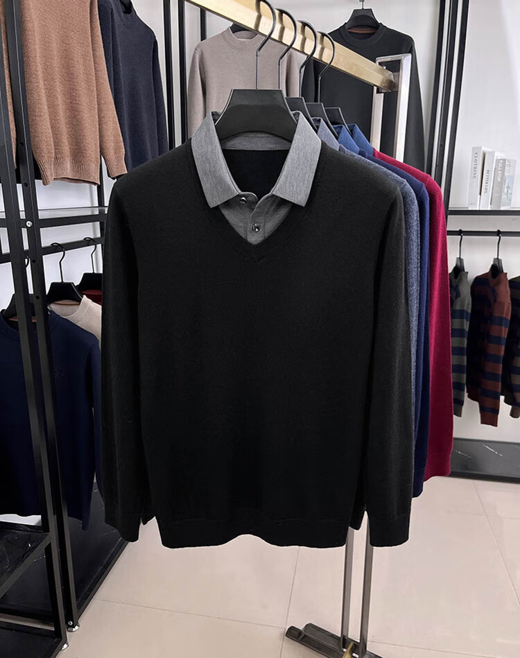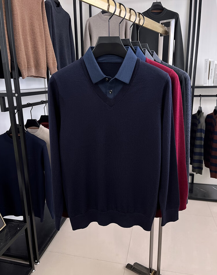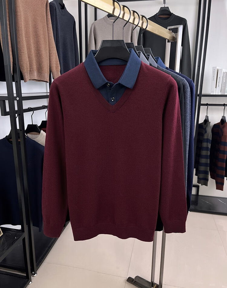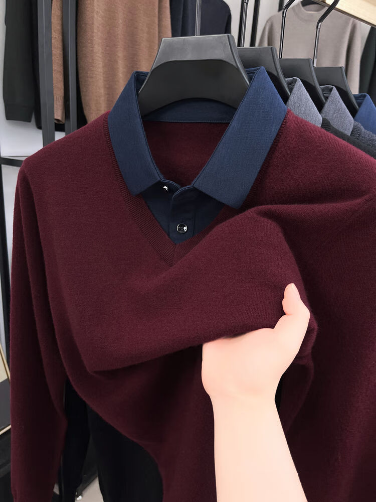 Hengyuanxiang wool sweater men's 100% pure wool fake two-piece sweater middle-aged and elderly dad's winter thickened knitted bottoming shirt