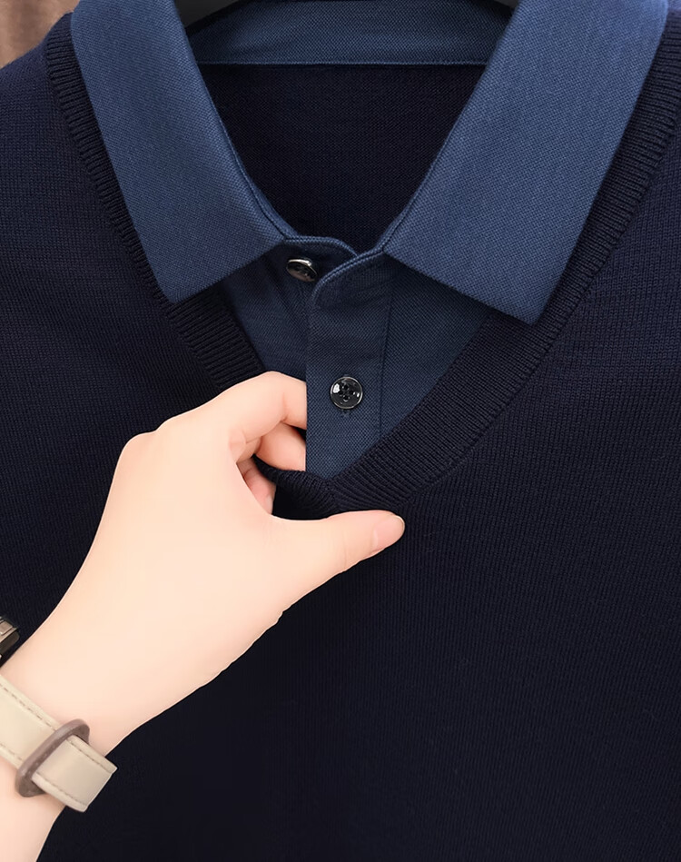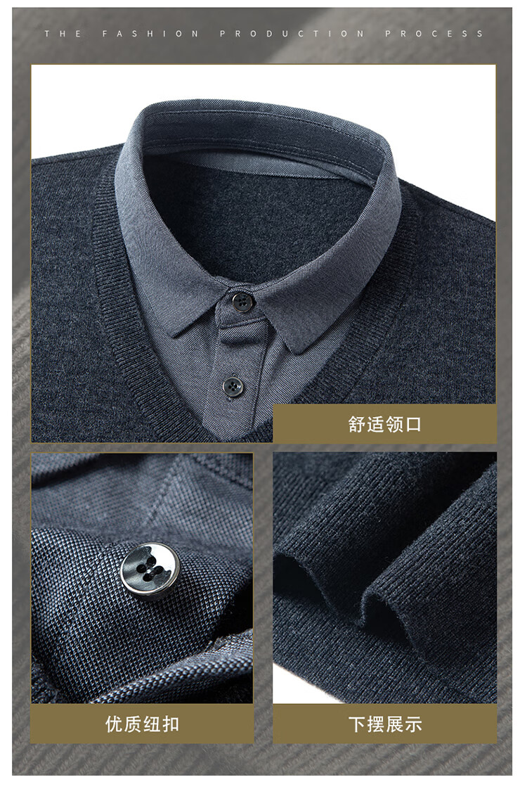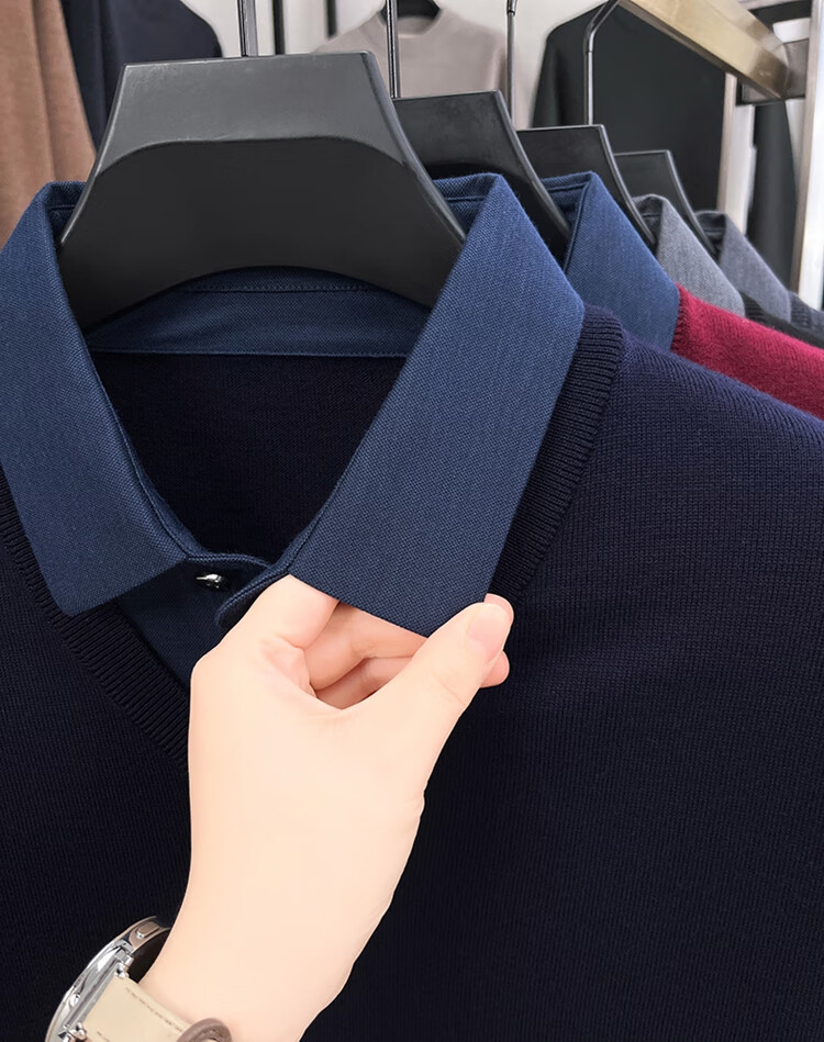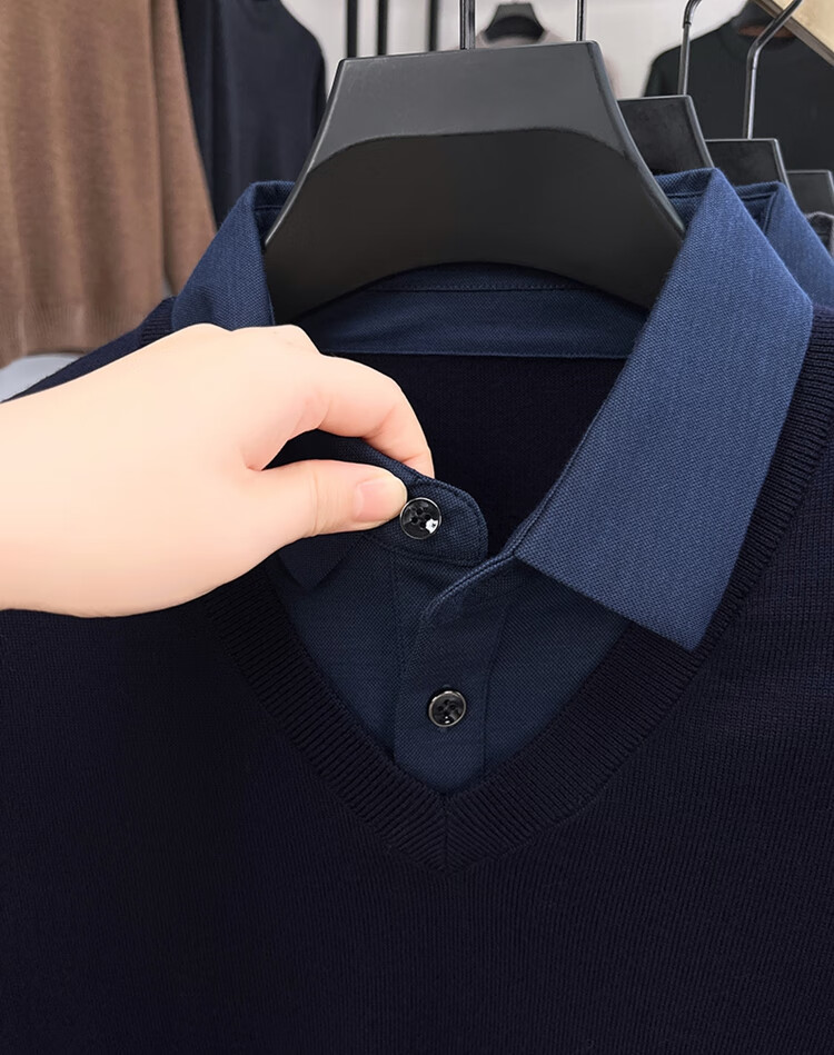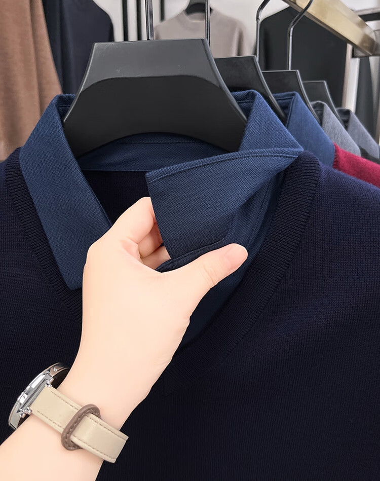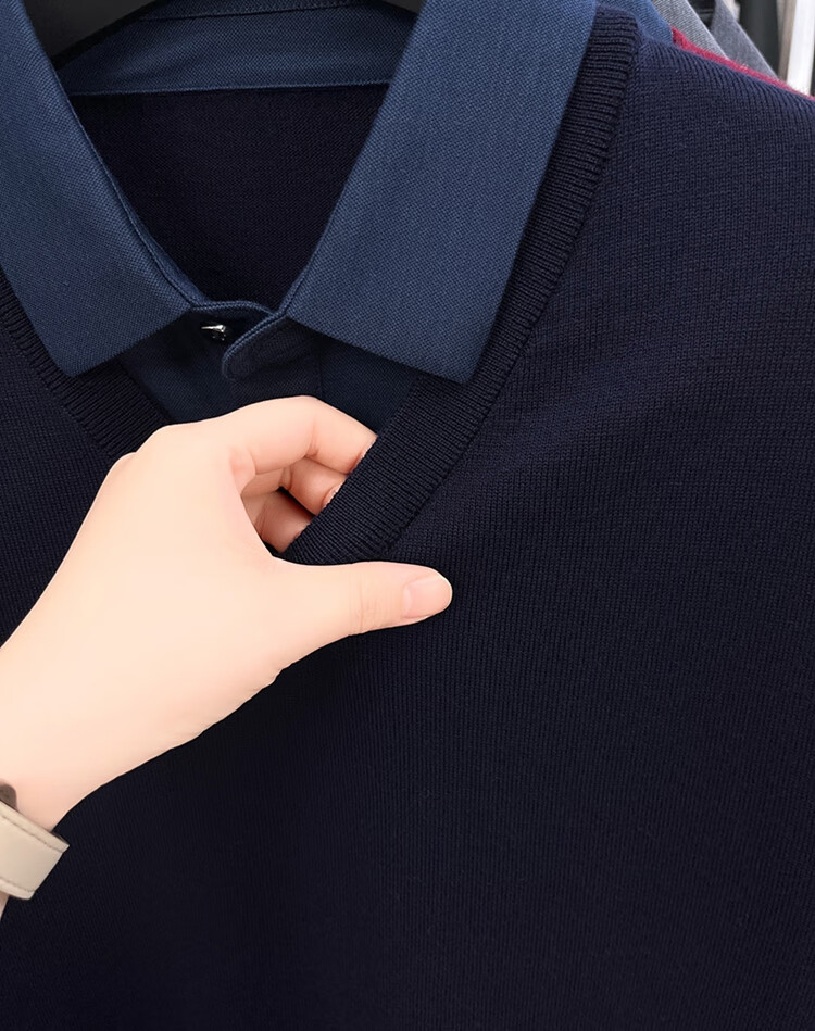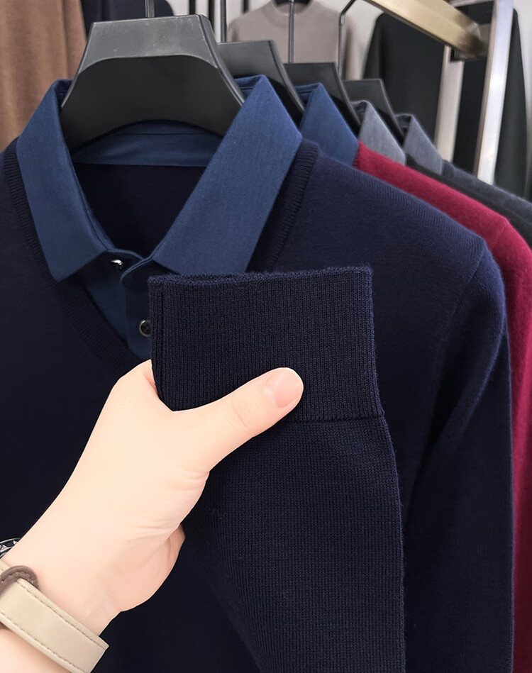 Hengyuanxiang wool sweater men's 100% pure wool fake two-piece sweater middle-aged and elderly dad's winter thickened knitted bottoming shirt
