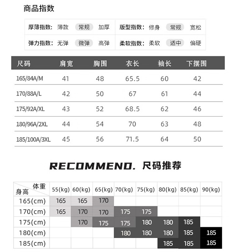 China (cm) 165 / 88-90 170 / 96-98 175 / 108-110 180 / 118-122 185 / 126-130