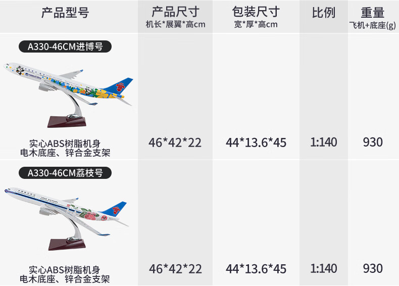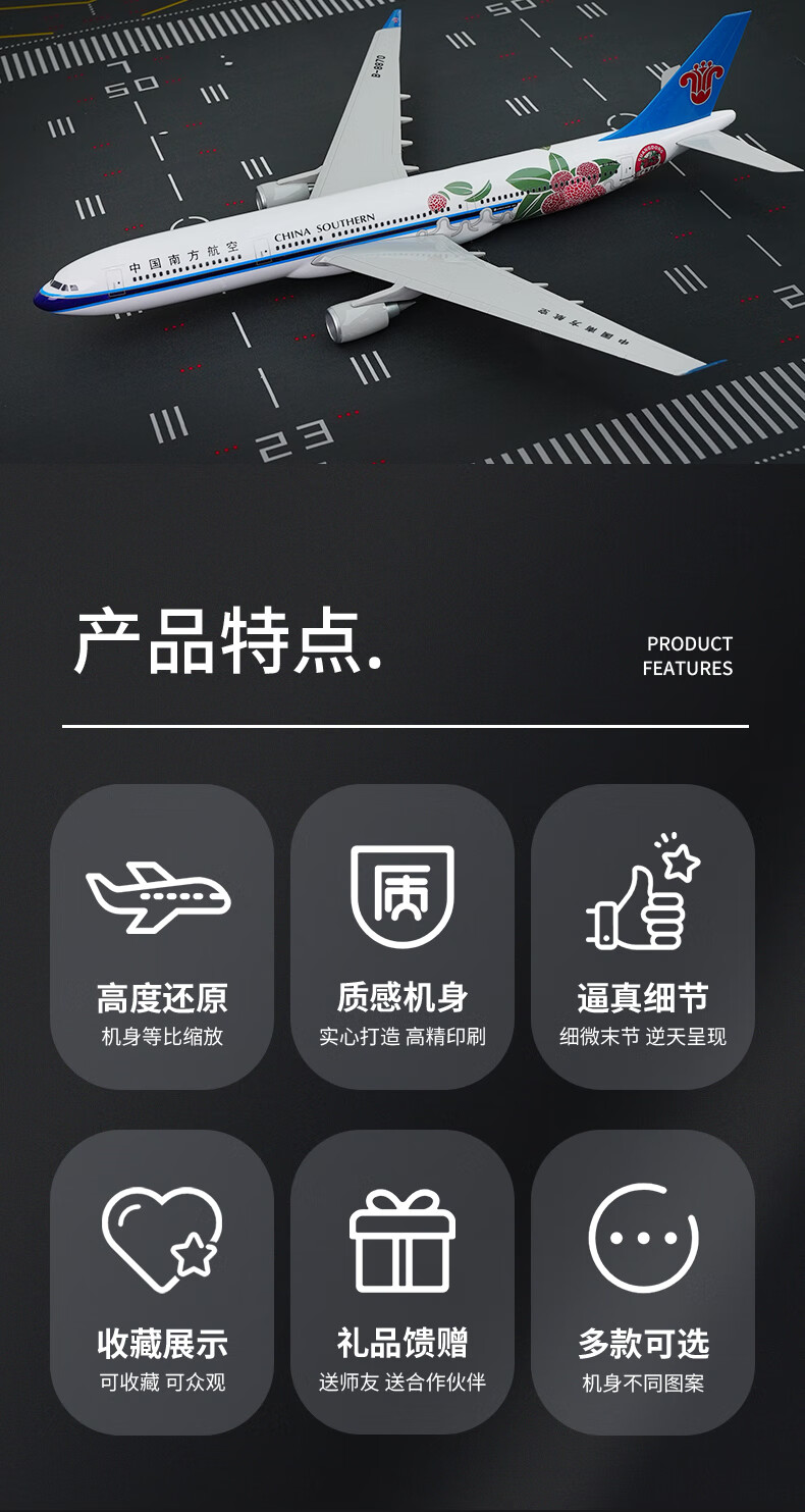 China Southern Airlines (CHINA SOUTHERN) aircraft model entry-level passenger aircraft model static ornaments A330 series Lychee New Year's Day gift birthday gift