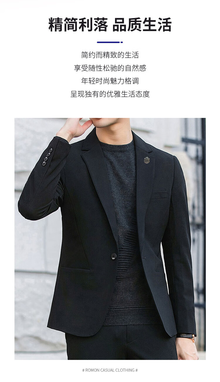 ROMON suit men's autumn and winter business professional formal casual suit men's wedding groom's best man's dress jacket