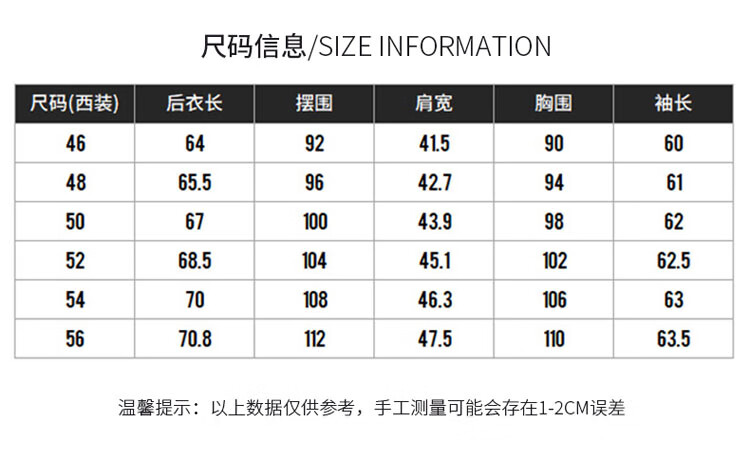 China (cm) 165 / 88-90 170 / 96-98 175 / 108-110 180 / 118-122 185 / 126-130