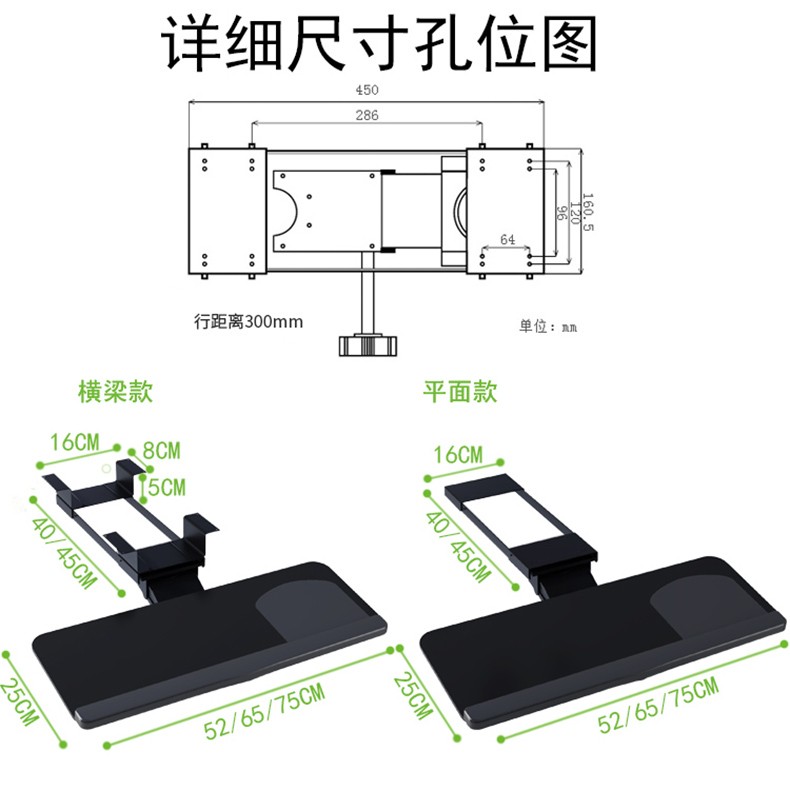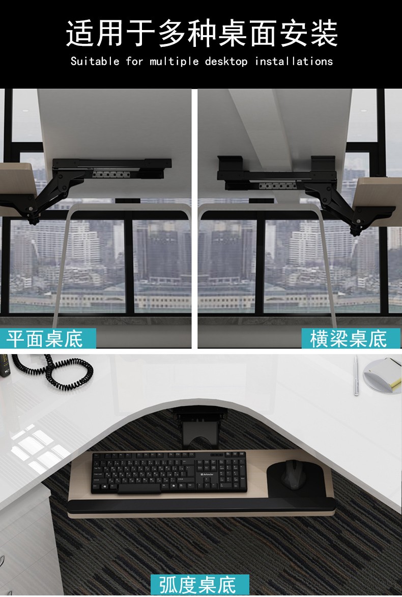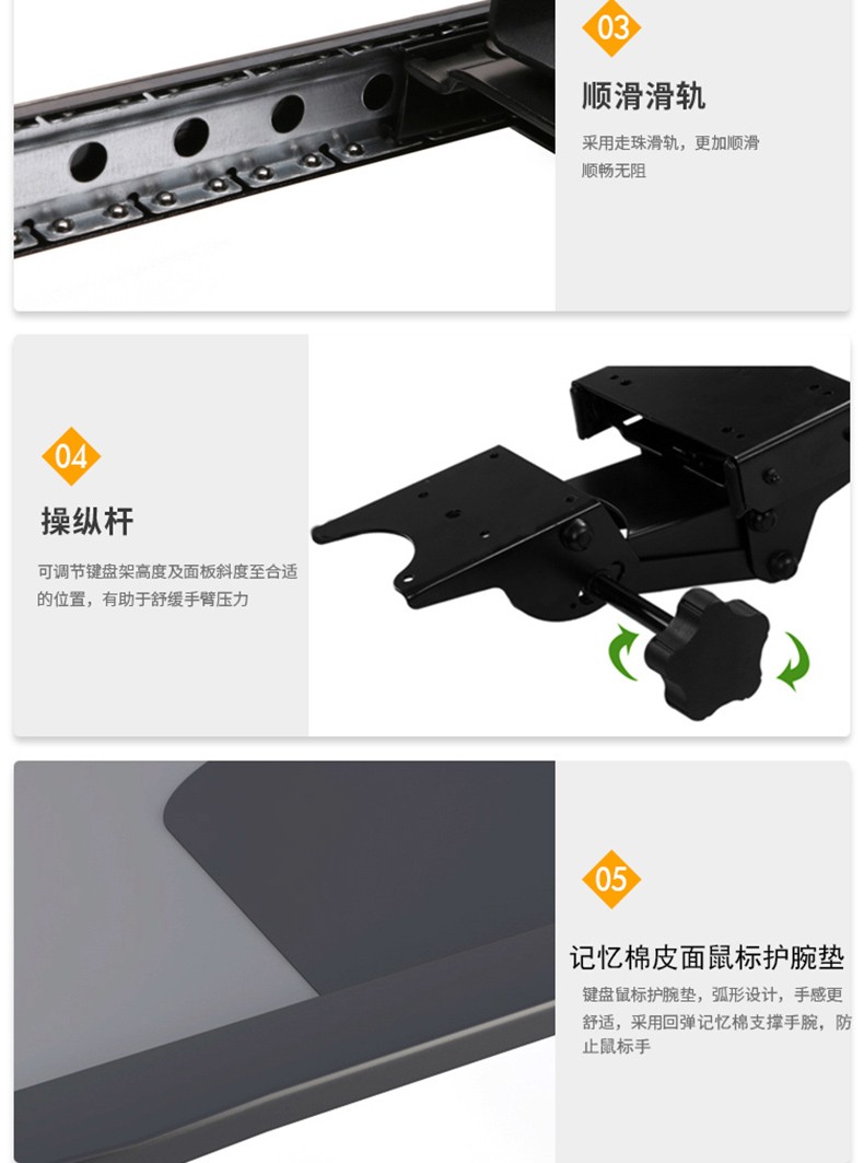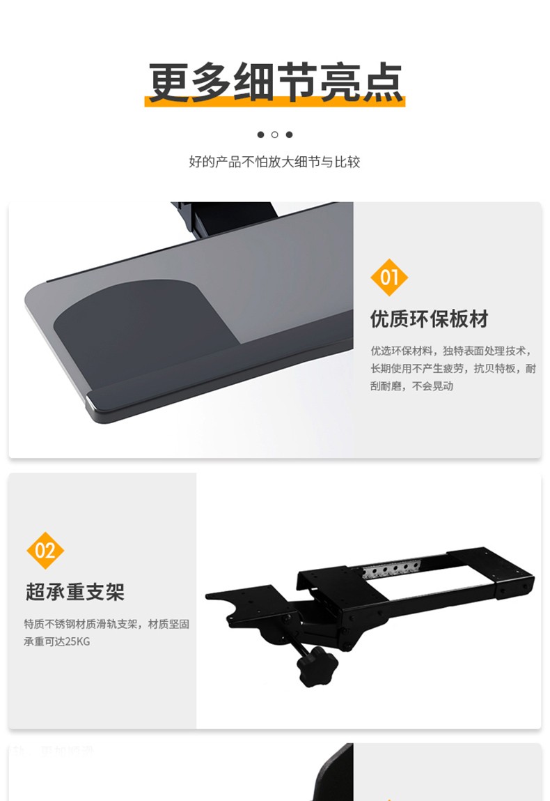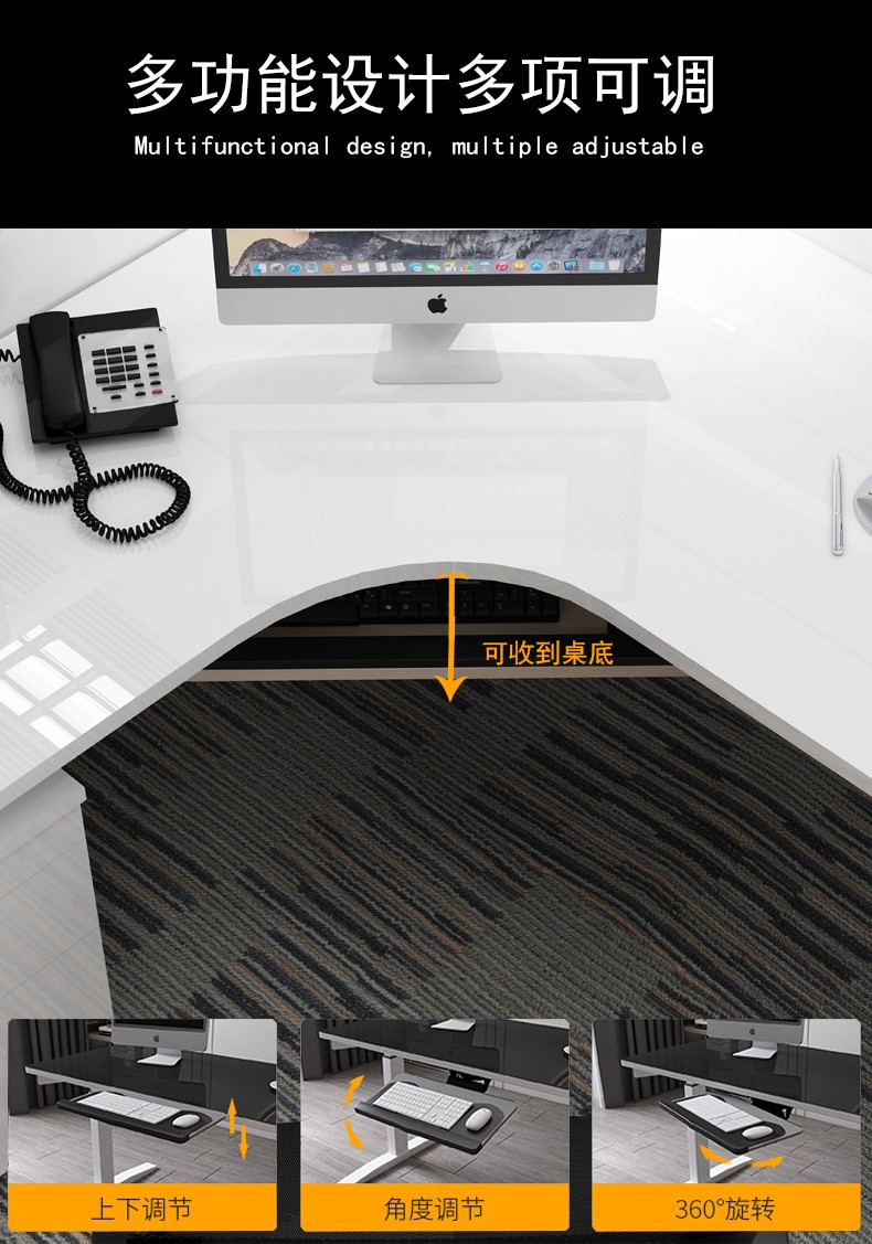 Yiguan keyboard bracket ergonomic keyboard shelf multi-functional rotating computer desk keyboard drawer slide mouse bracket table bottom beam model black size 75*24CM