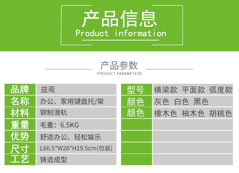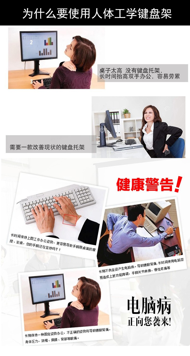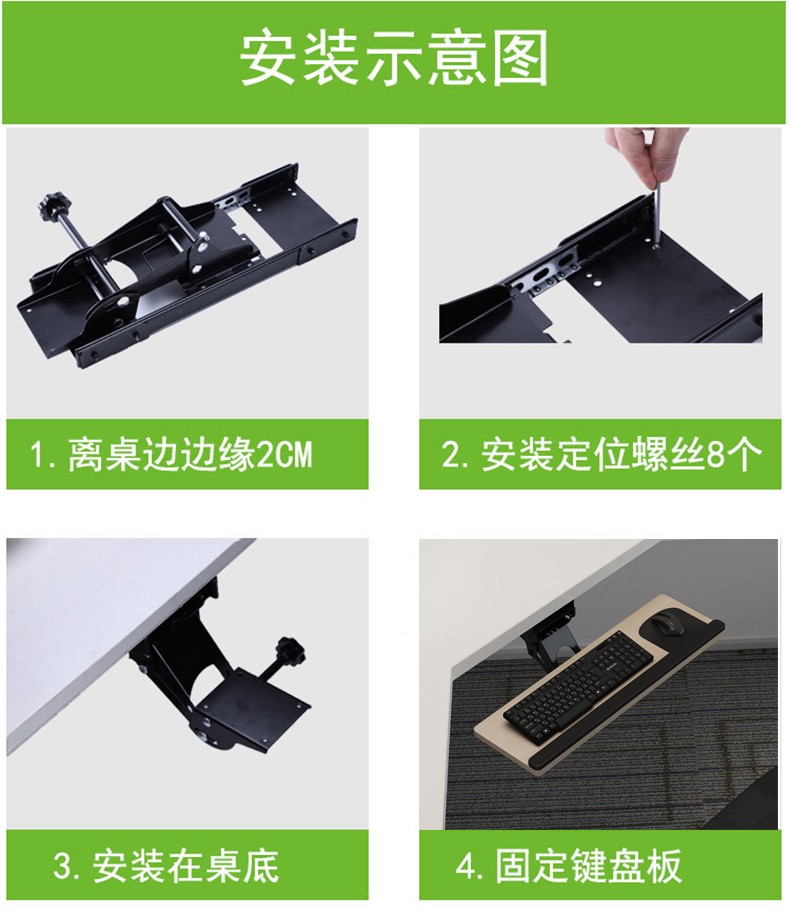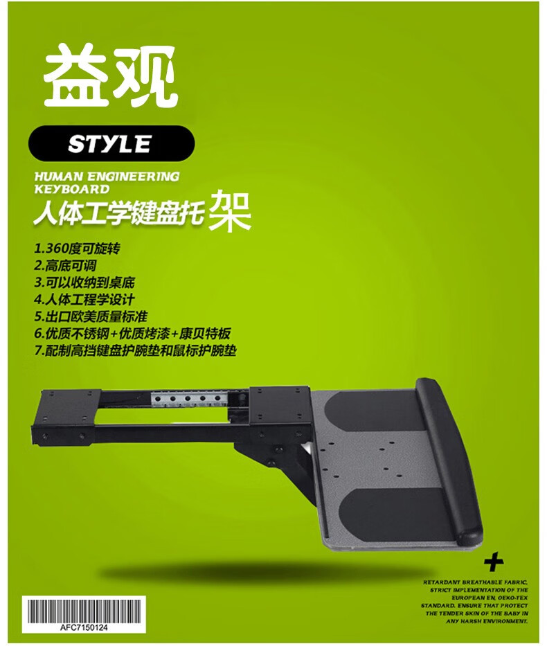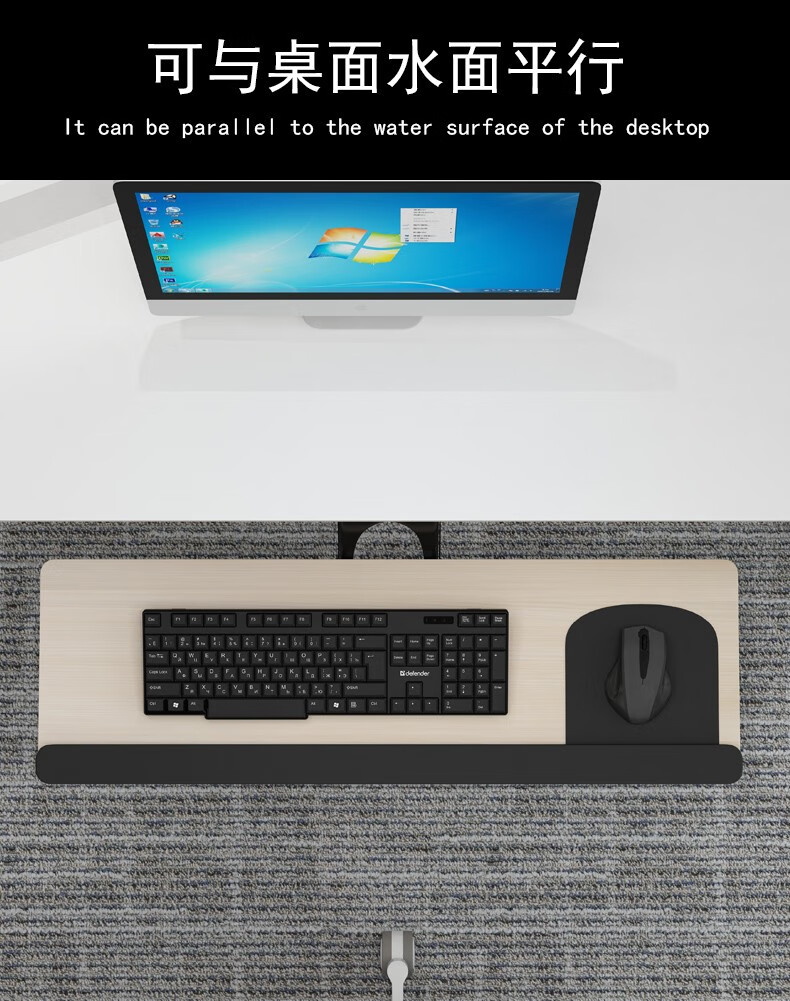 Yiguan keyboard bracket ergonomic keyboard shelf multi-functional rotating computer desk keyboard drawer slide mouse bracket table bottom beam model black size 75*24CM