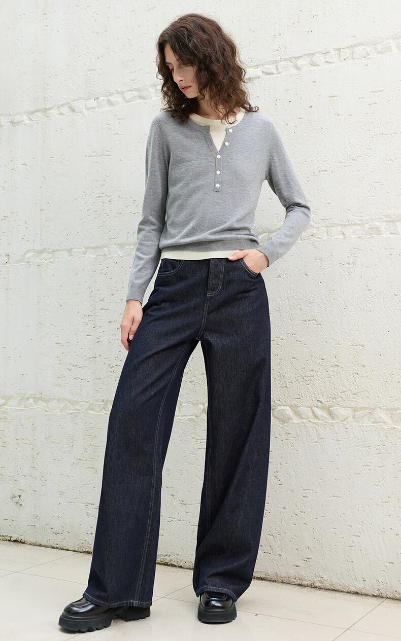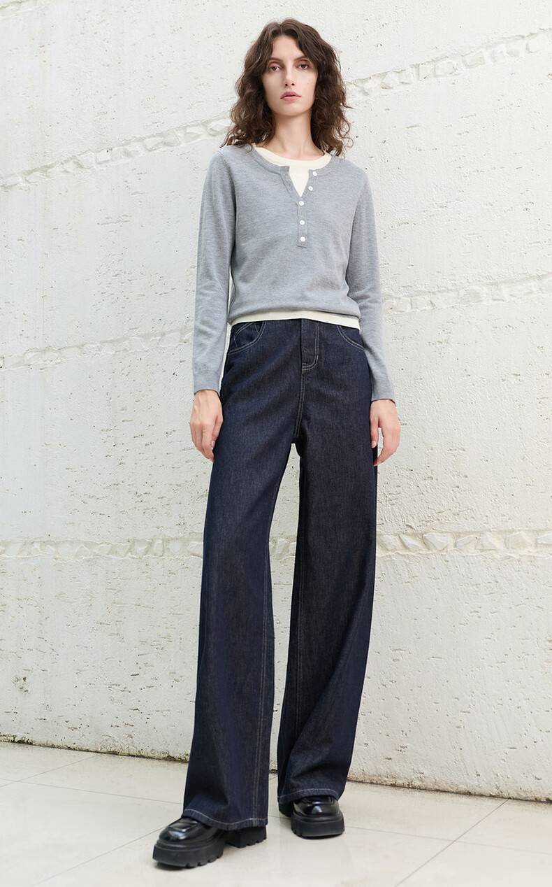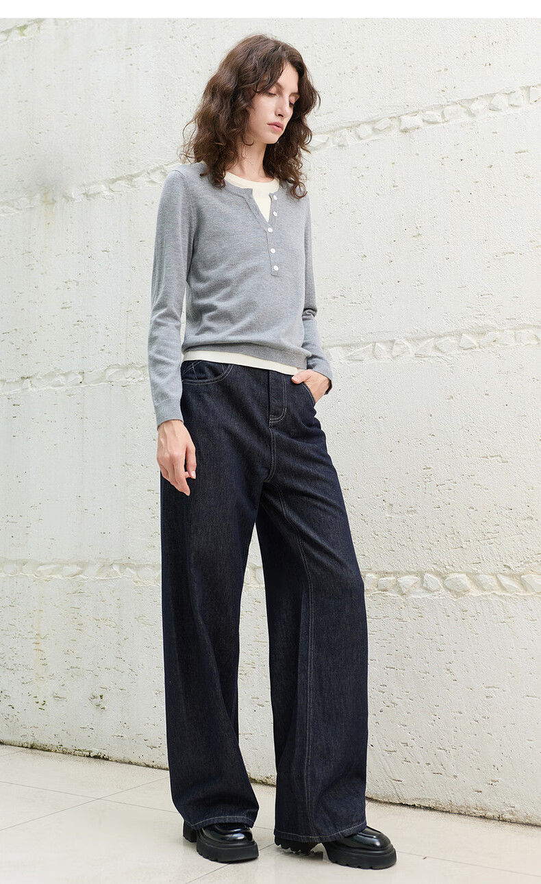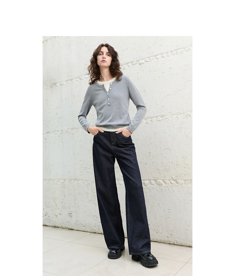 Sancai 2025 winter new style retro washed brushed jeans straight pants trousers for women