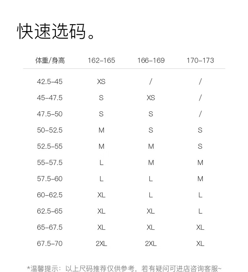 China (cm) 160-165/84-86 165-170 / 88-90 167-172 / 92-96 168-173 / 98-102 170-176 / 106-110