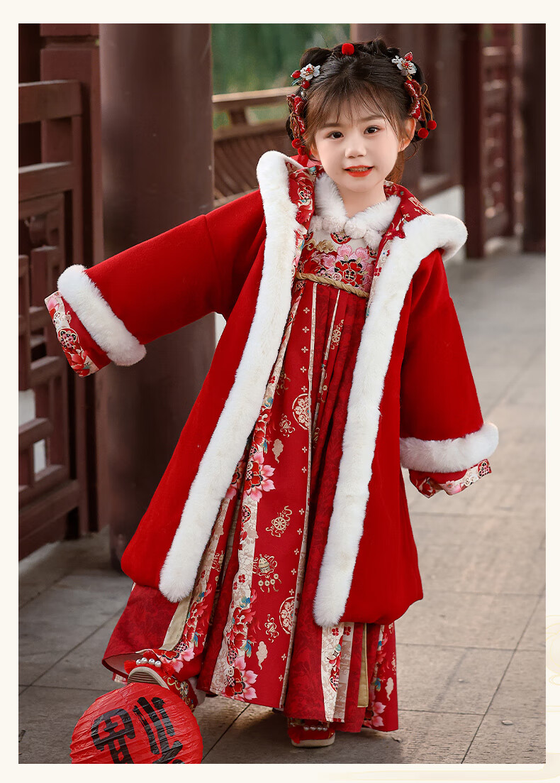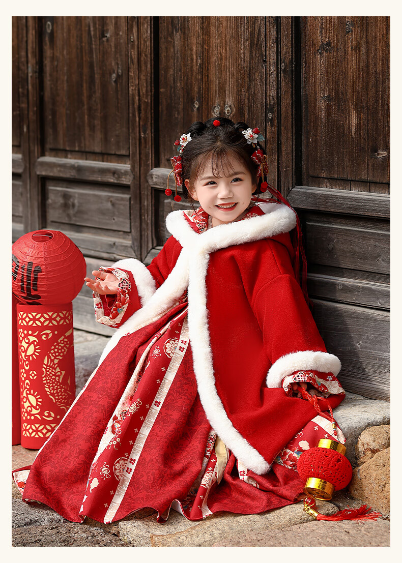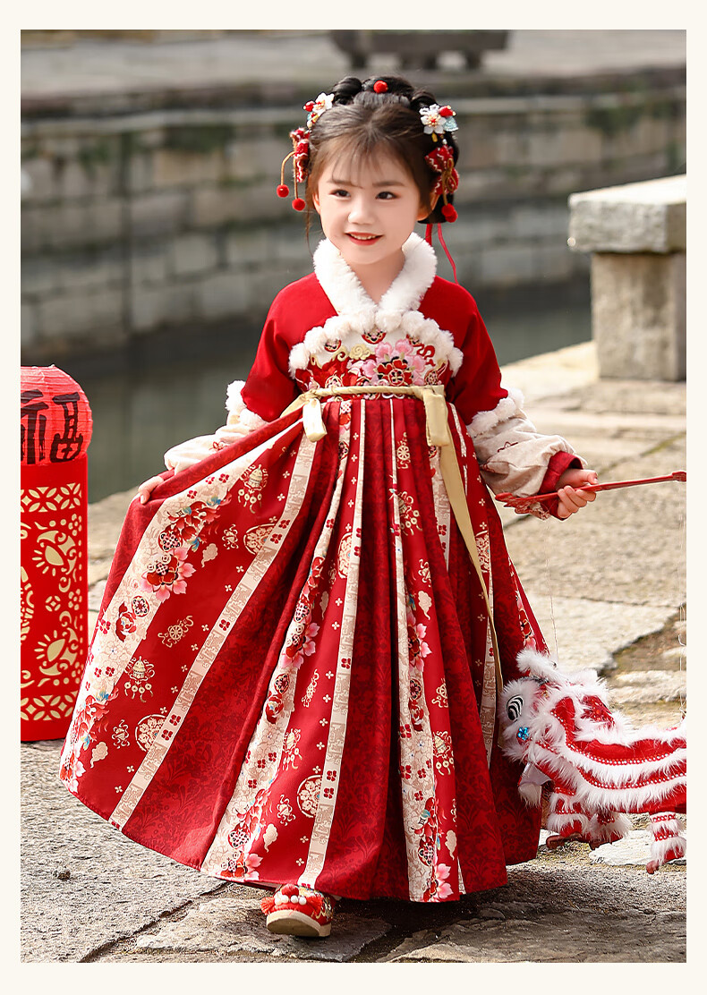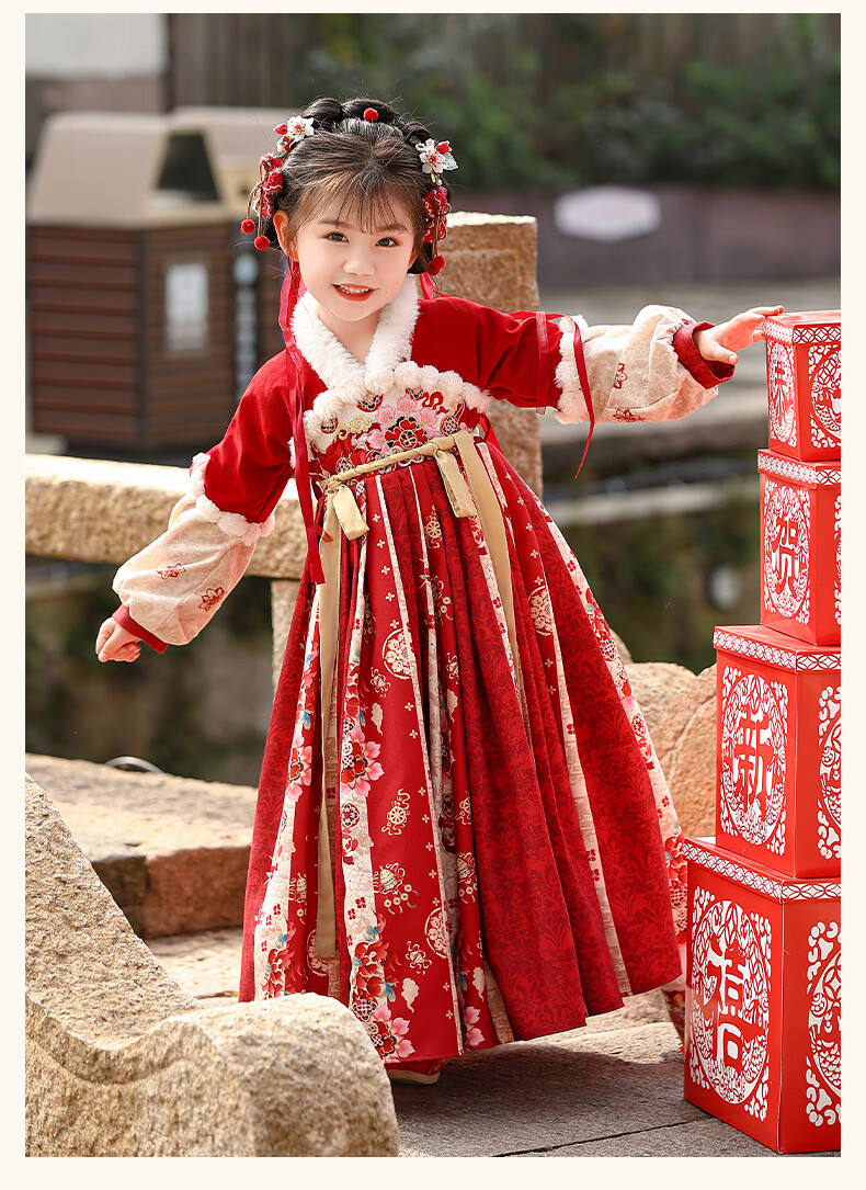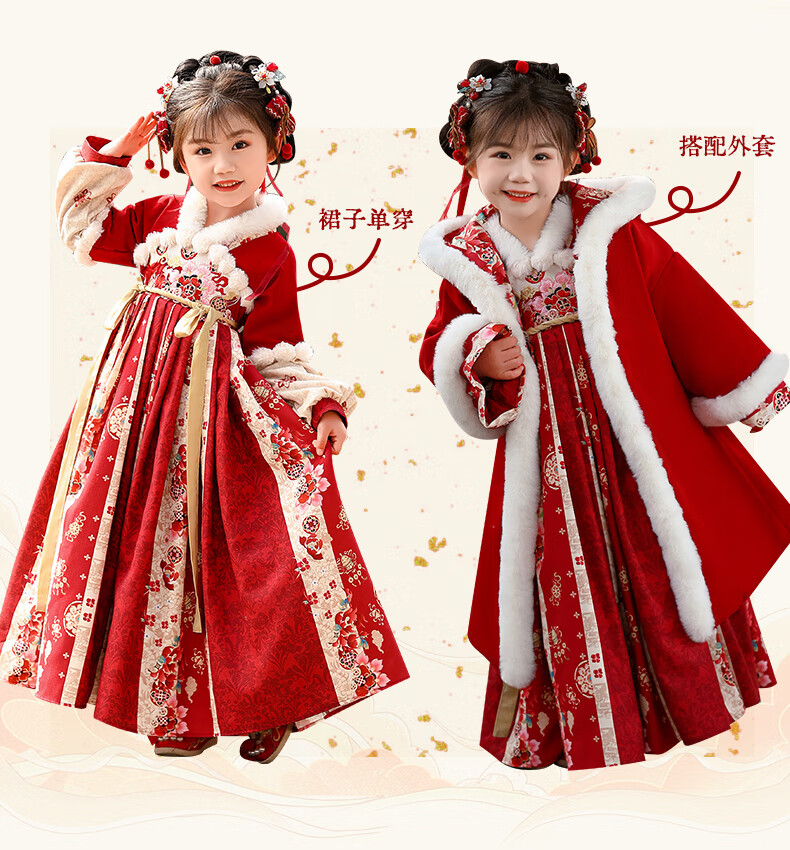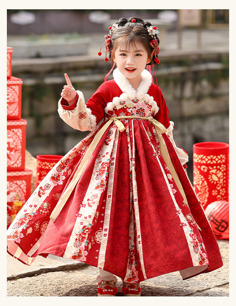 Pamino Hanfu Girls Winter Chinese Style Tang Suit Girls New Year Skirt Winter Clothes Children New Year Clothes Skirt 120